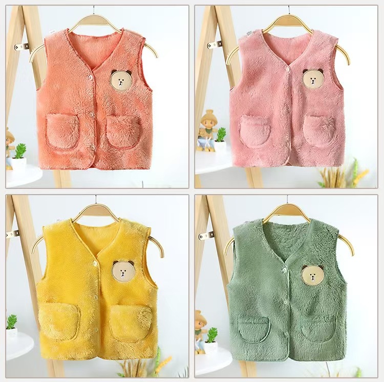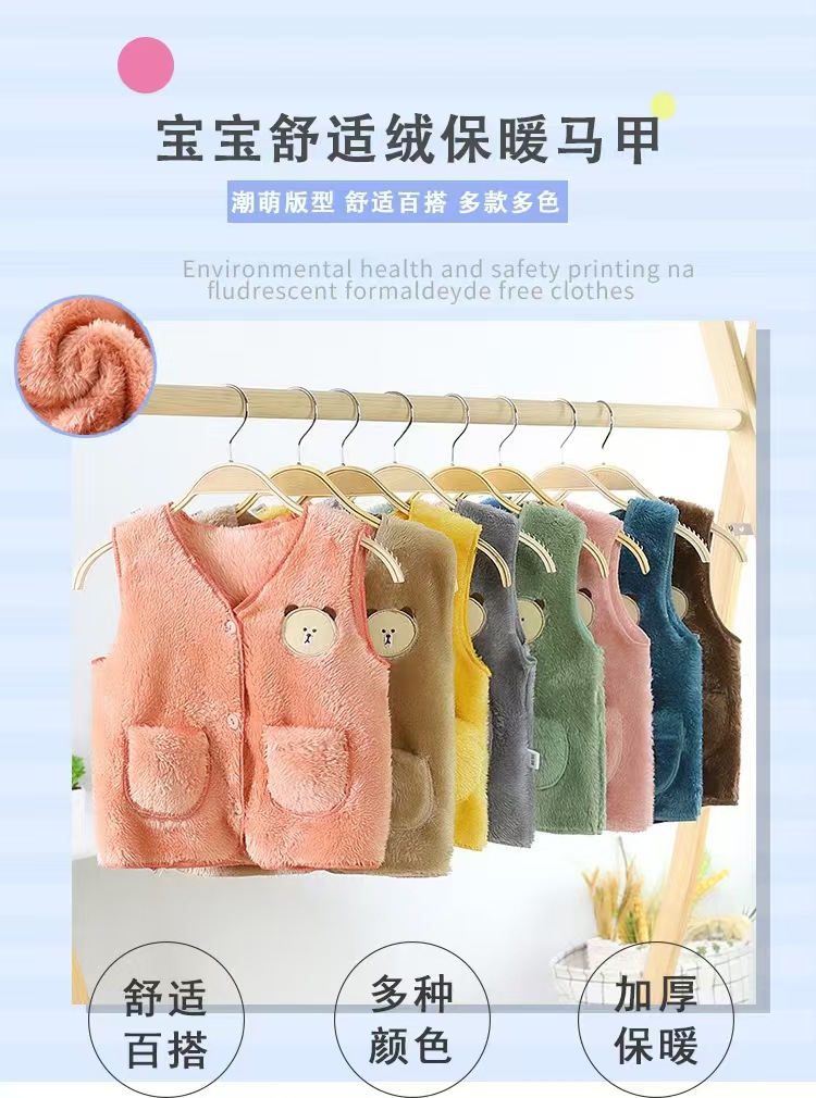 어린이 조끼 봄과 가을 양면 산호 양털 기모 아기 소년과 소녀를위한 조끼 한국 스타일 허리 코트 플란넬 아기 조끼스토어 가기