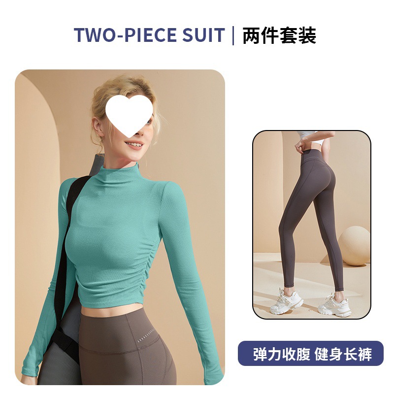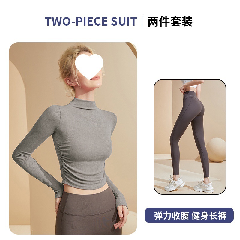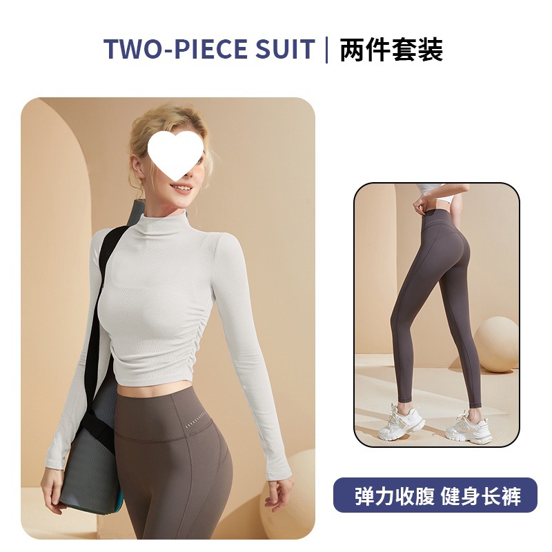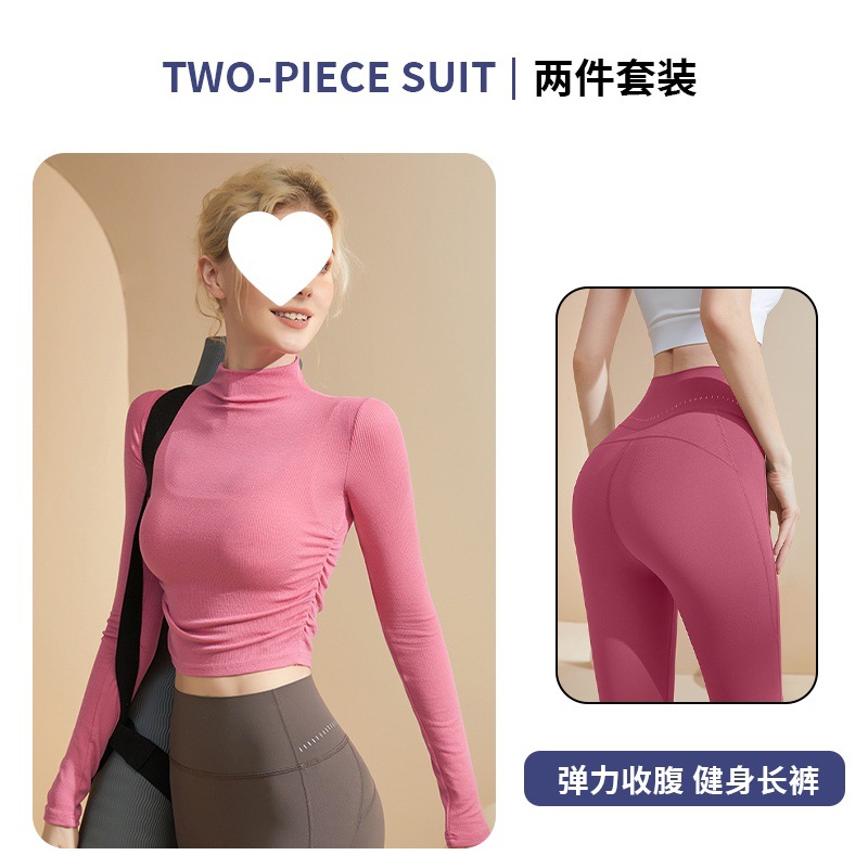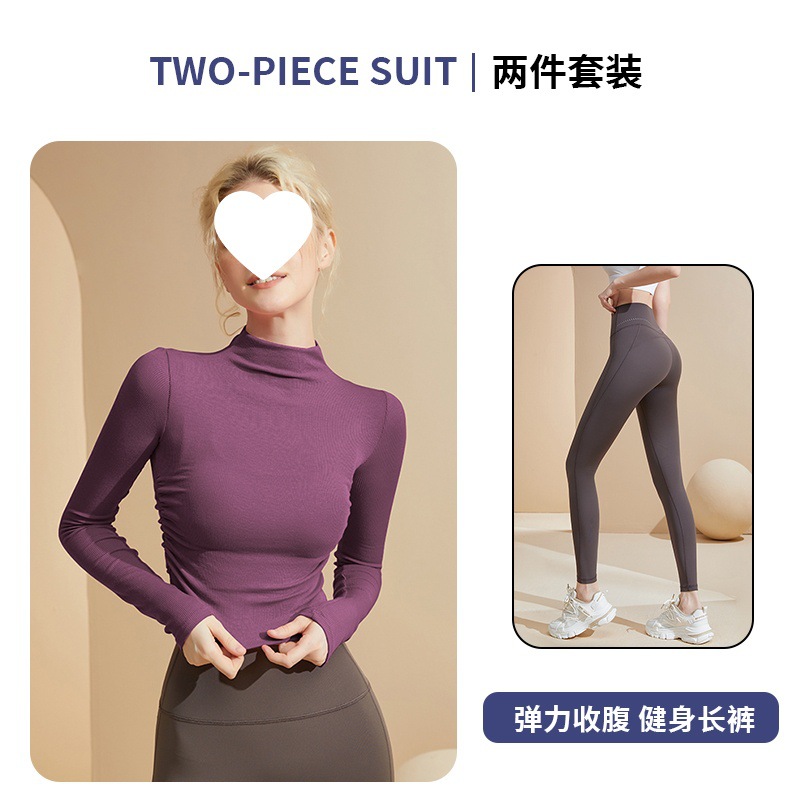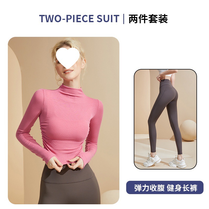 달리기 스포츠 요가 의류 여성 긴팔 최고 탄성 슬림베이스 착용 봄 및 가을 높은 칼라 피트니스 의류