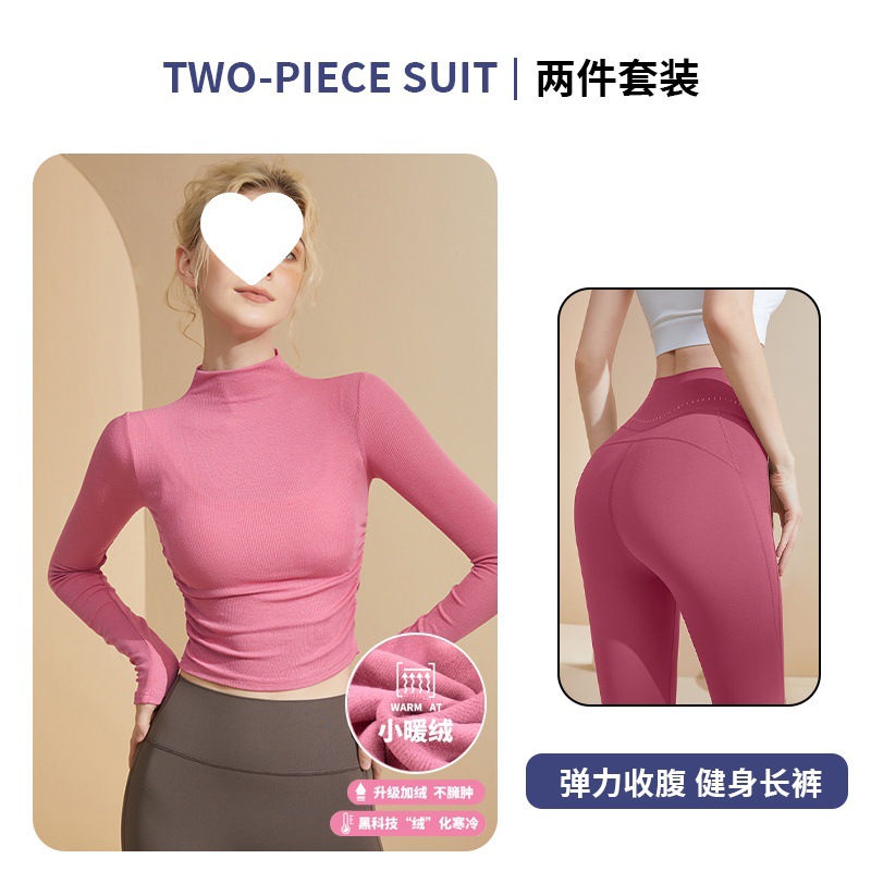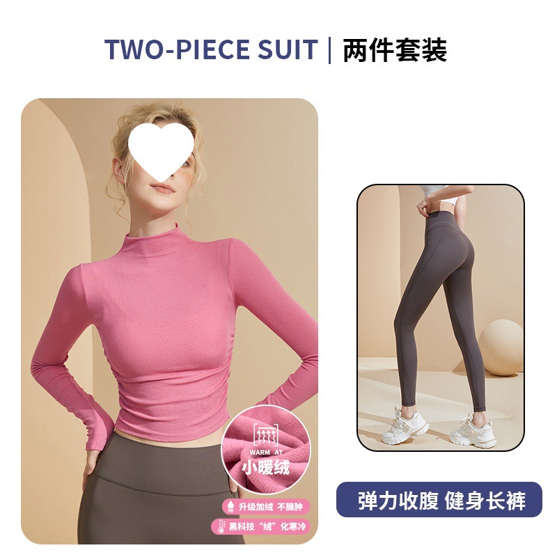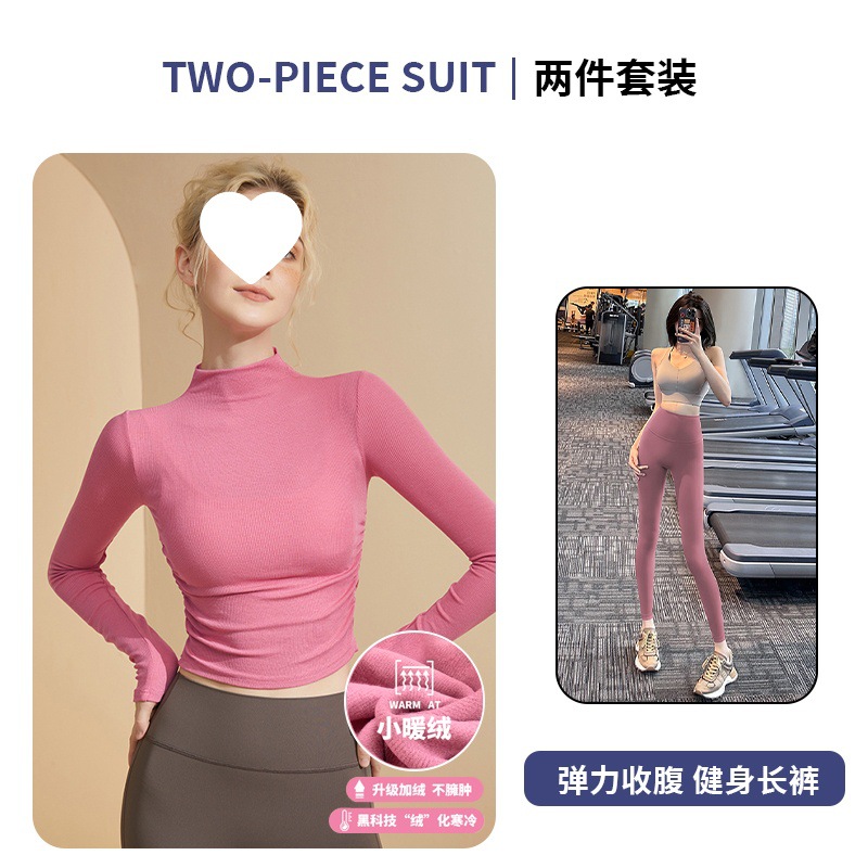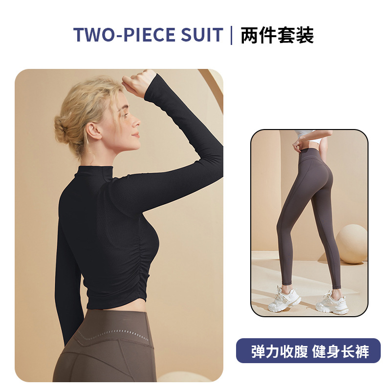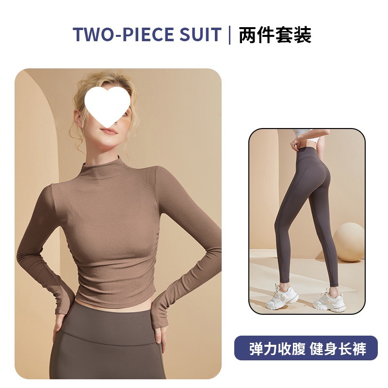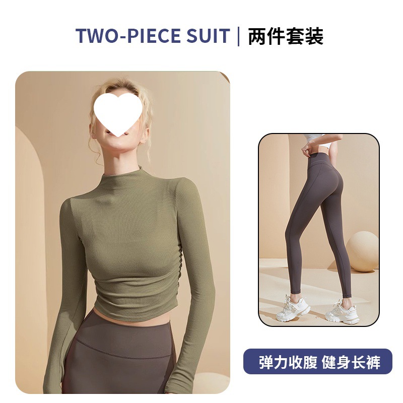 달리기 스포츠 요가 의류 여성 긴팔 최고 탄성 슬림베이스 착용 봄 및 가을 높은 칼라 피트니스 의류