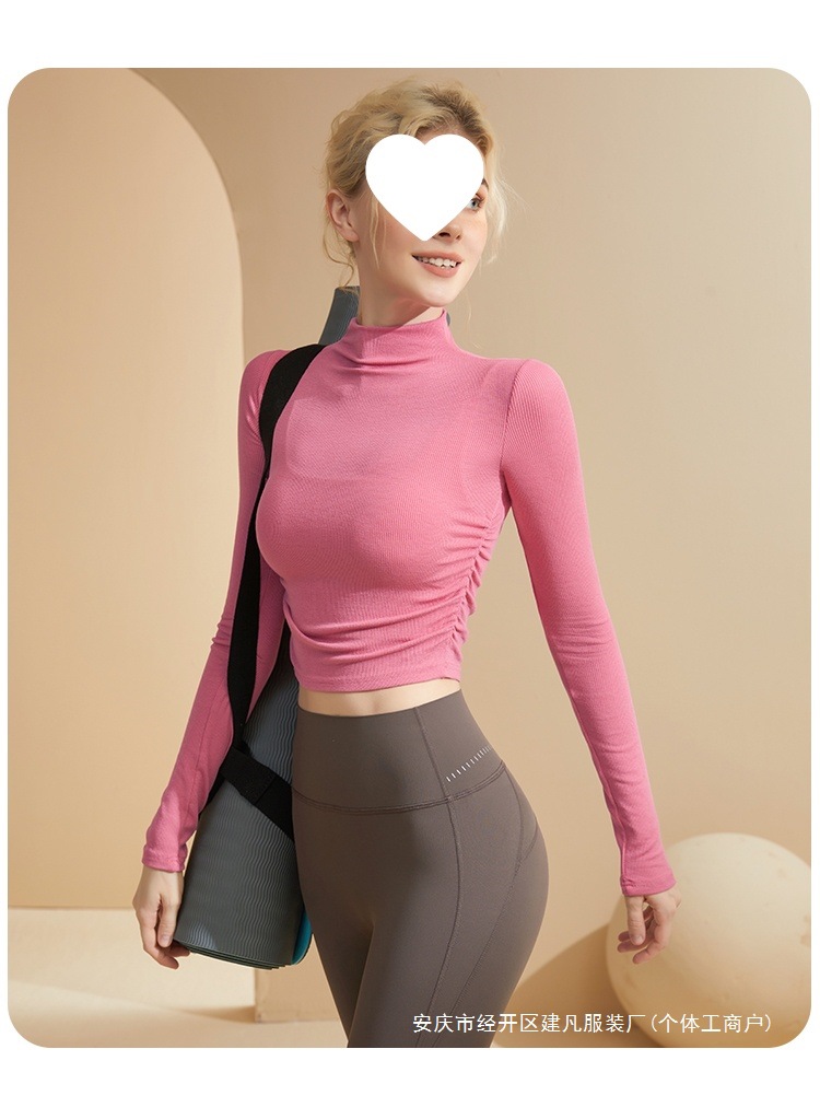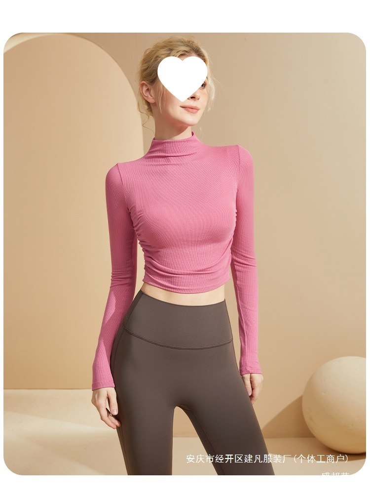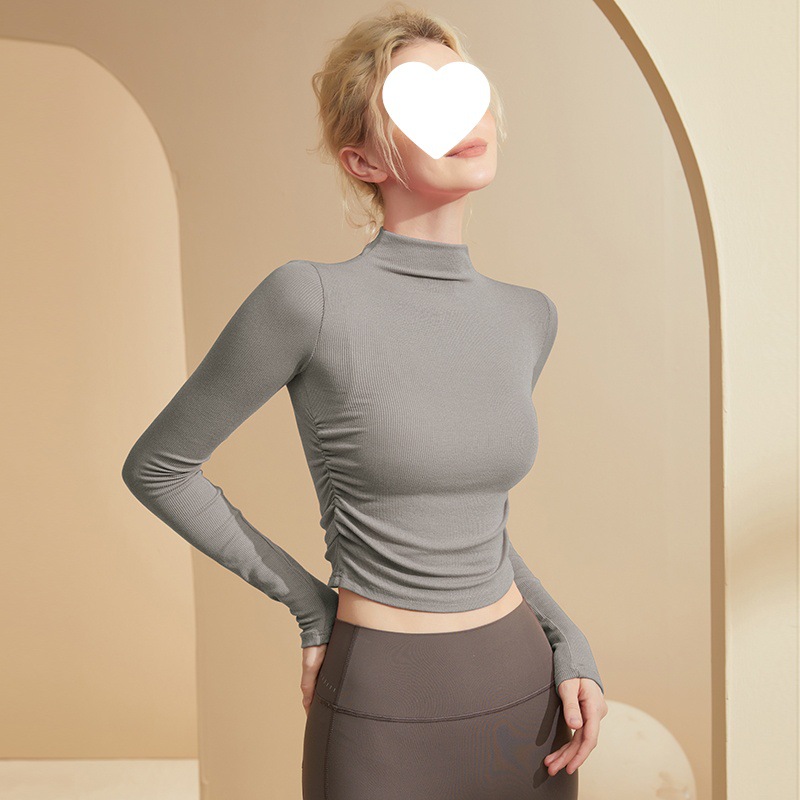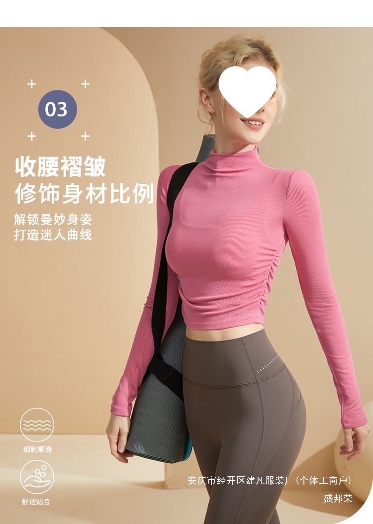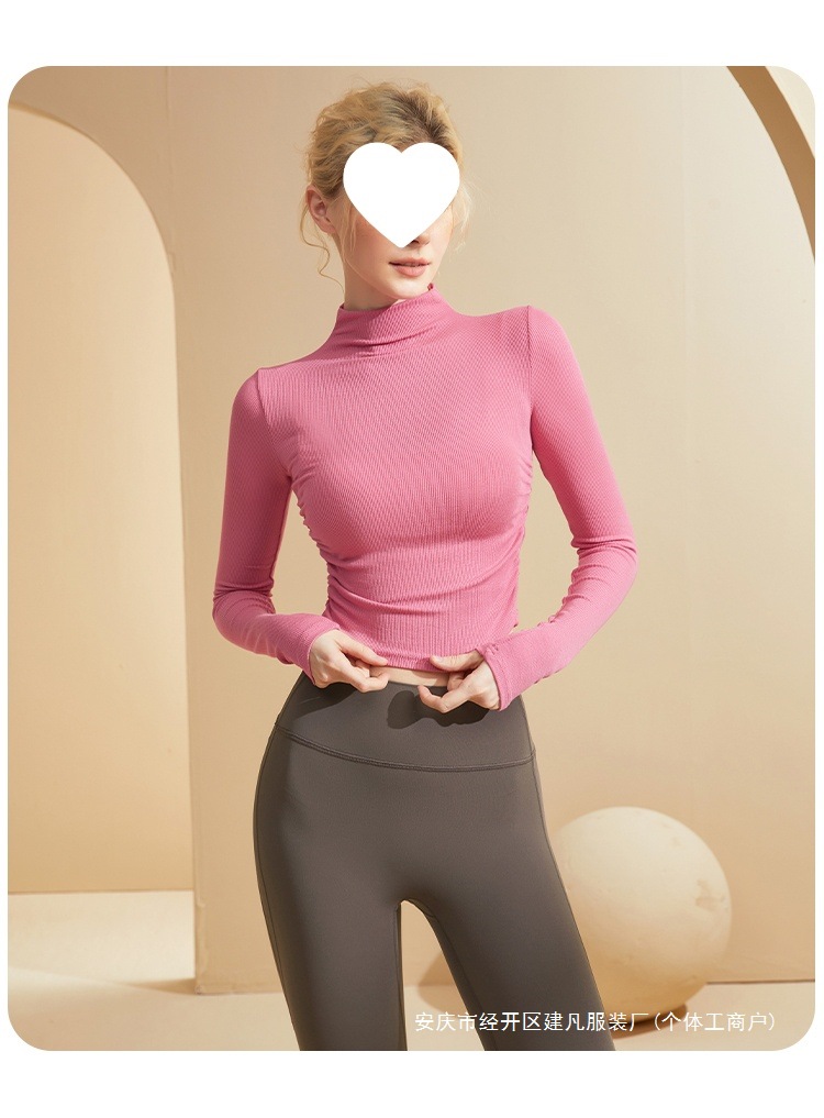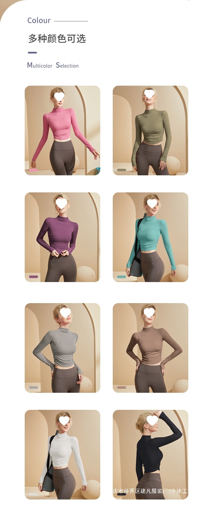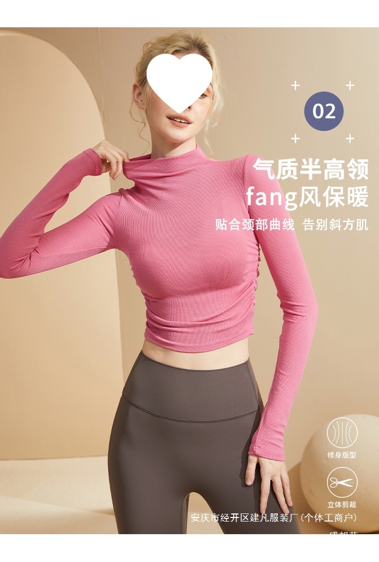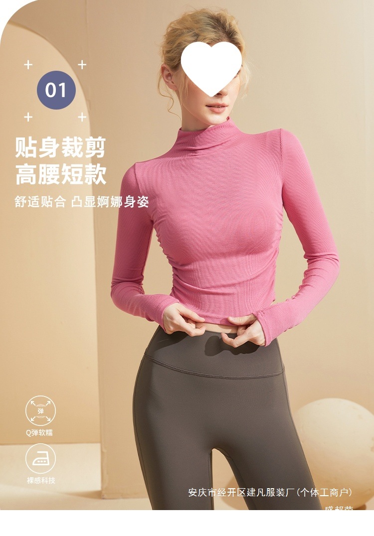 달리기 스포츠 요가 의류 여성 긴팔 최고 탄성 슬림베이스 착용 봄 및 가을 높은 칼라 피트니스 의류스토어 가기
