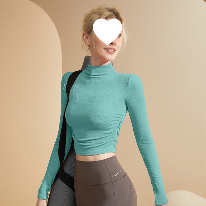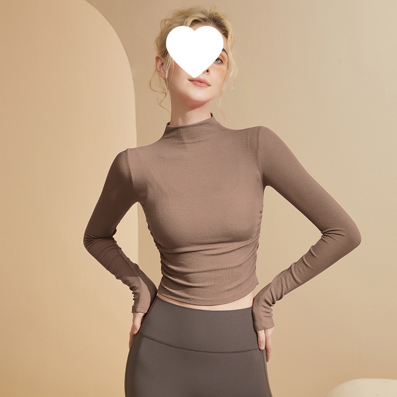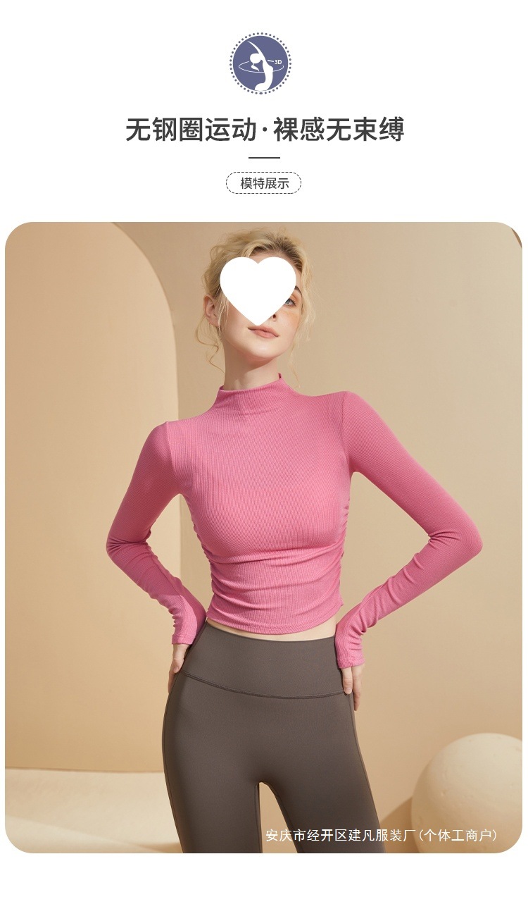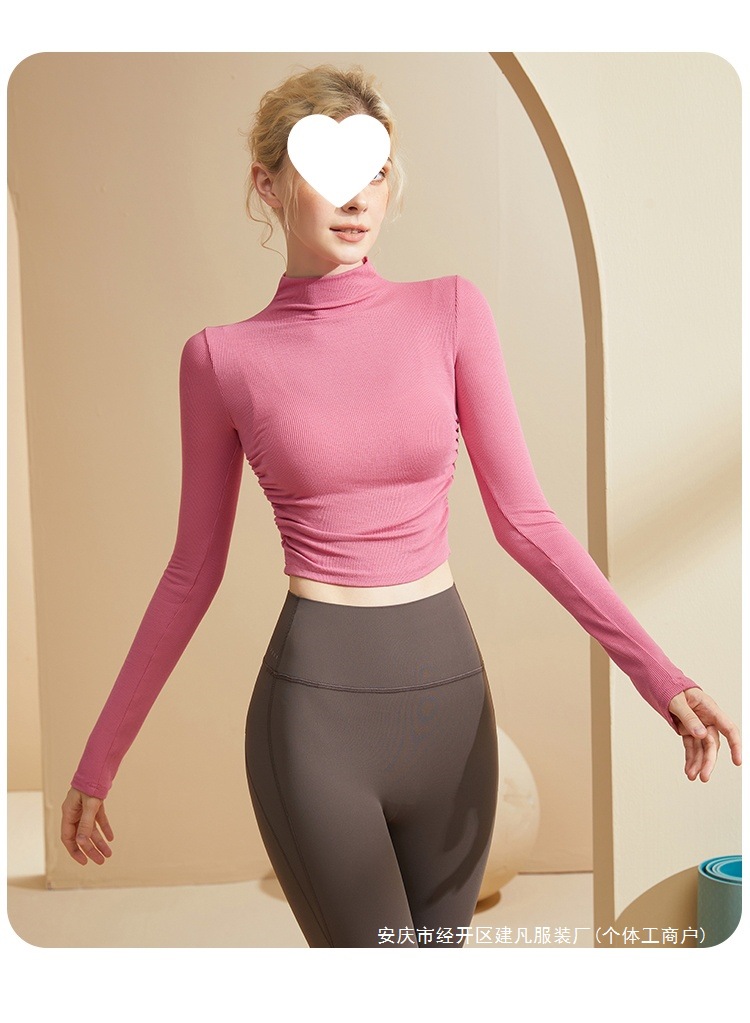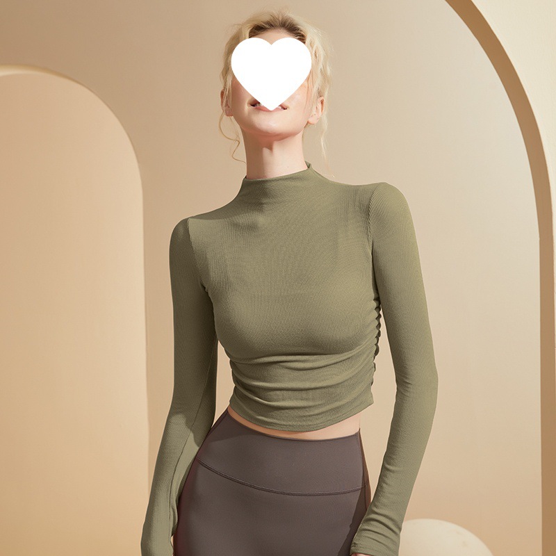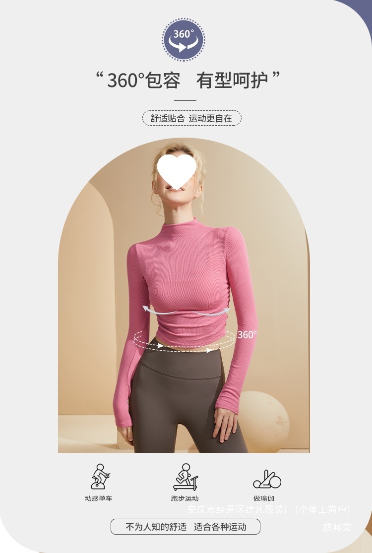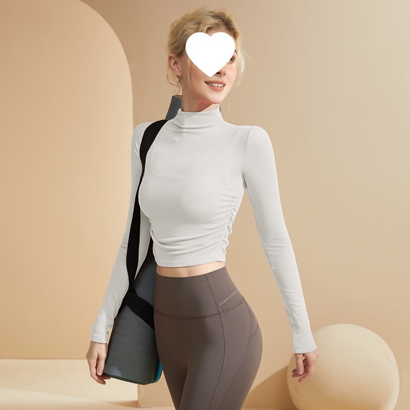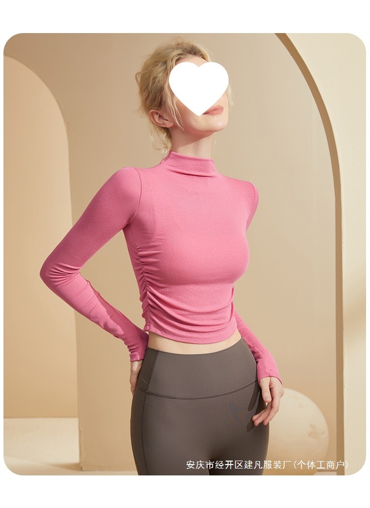 달리기 스포츠 요가 의류 여성 긴팔 최고 탄성 슬림베이스 착용 봄 및 가을 높은 칼라 피트니스 의류스토어 가기