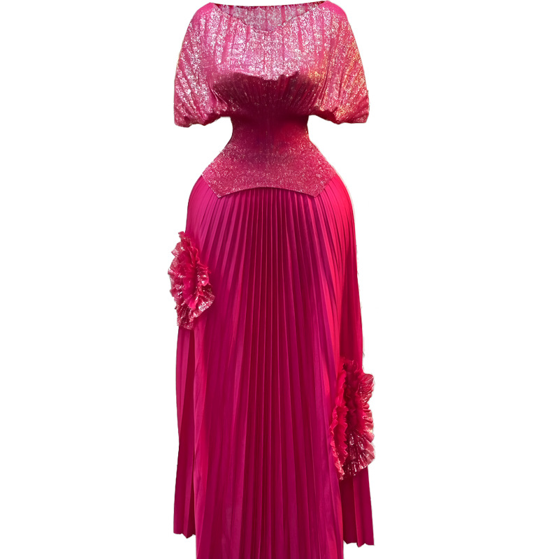 300kg 플러스 사이즈 여성 슬림 세트 도금 재킷 주름 치마 투피스 미야케 플리츠 패션 원피스