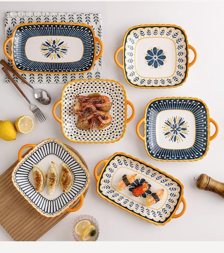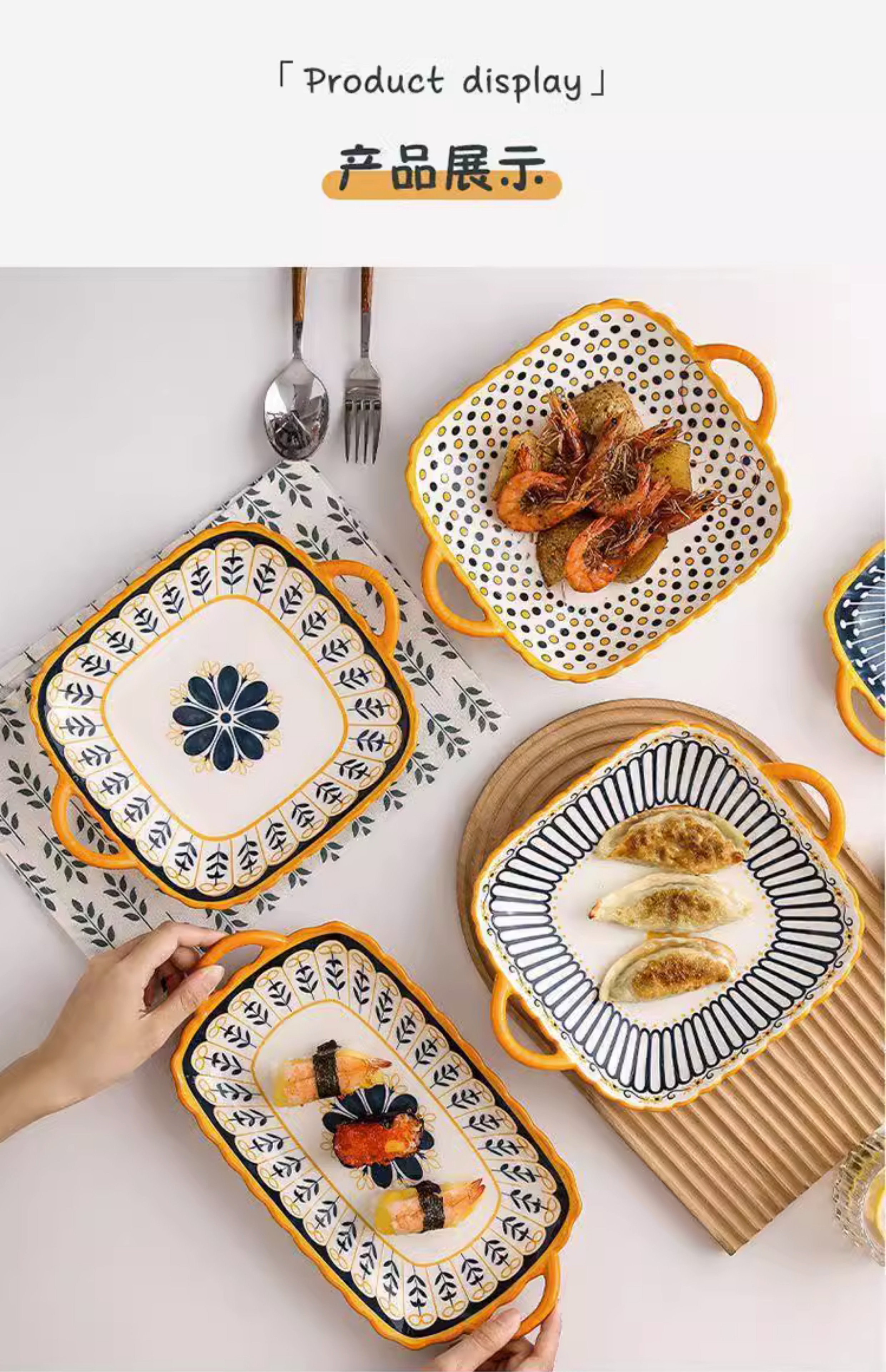 플레이트 인터넷 인기 높은 뷰티 가치 디너 플레이트 창조적 인 바이나럴 스퀘어 플레이트 과일 플레이트 두꺼운 접시 가정용 접시 창완
