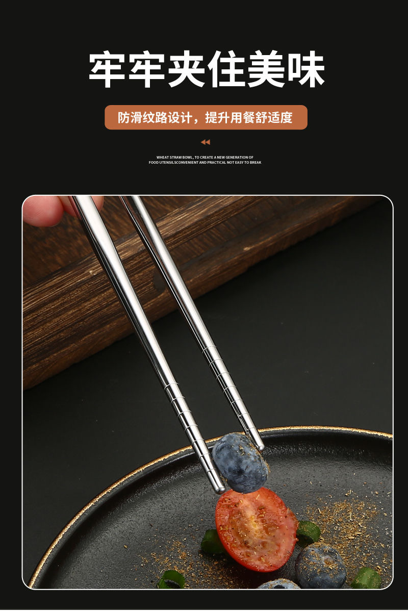 스테인리스 젓가락 세트, 고급스러운 느낌, 식기세척기 사용 가능, 가정용, 고급, 항균, 미끄럼 방지, 곰팡이 방지, 상하 원형스토어 가기