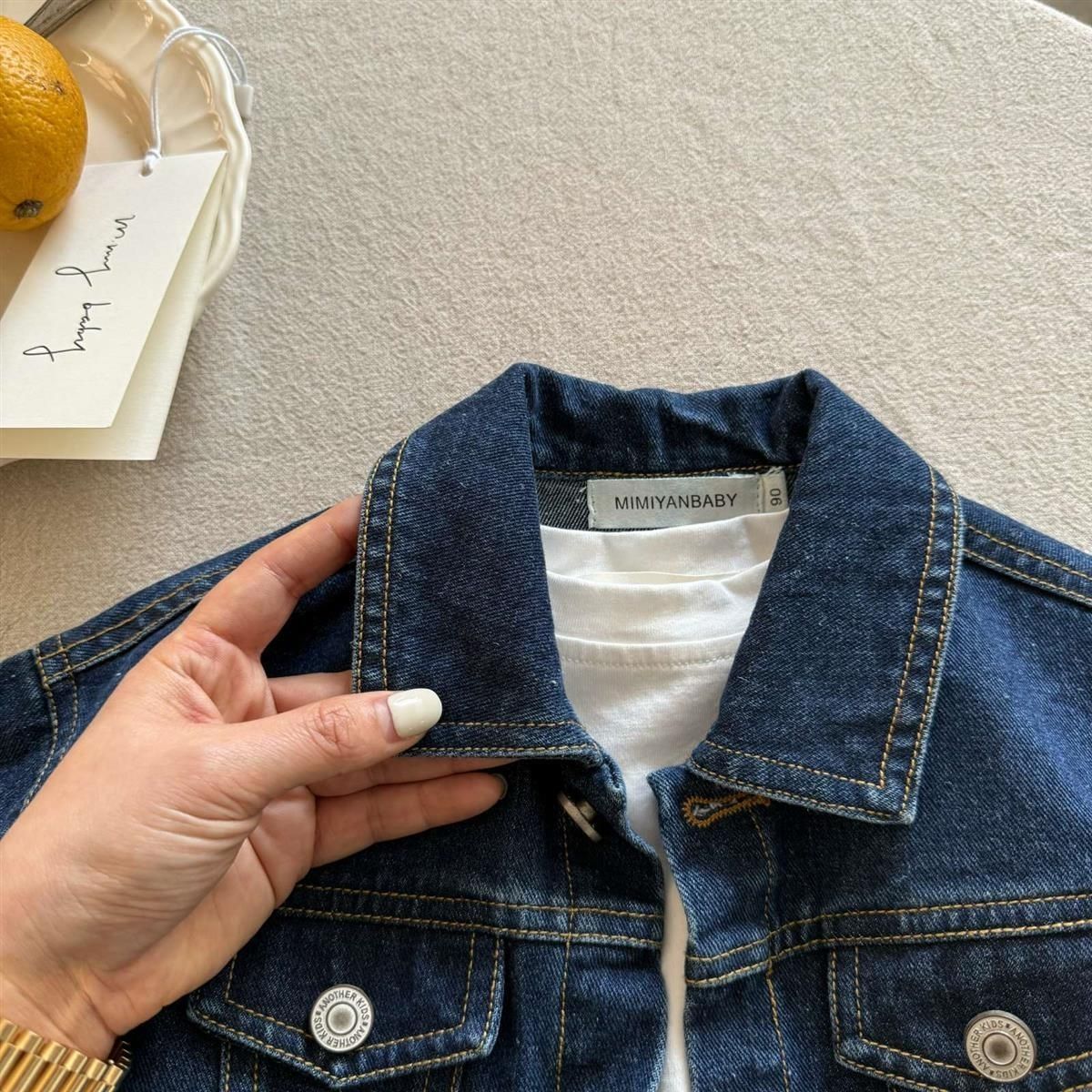 아동 데님 재킷 남성 봄, 가을 새로운 어린이 복고풍 셔츠 한국 스타일 아기 소년 솔리드 컬러 재킷 잘 생긴