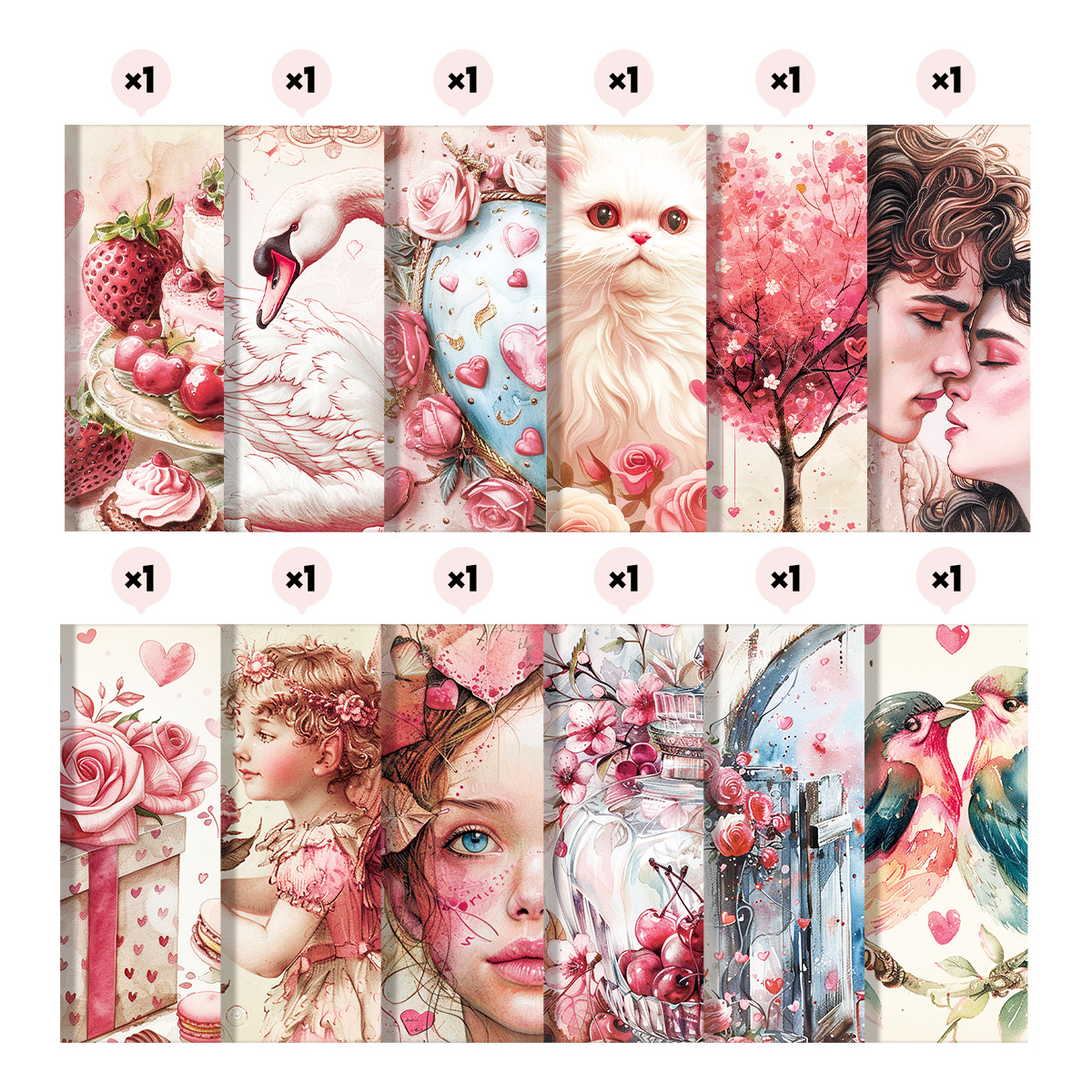 12 국경 복고풍 손 계정 소재 종이 발렌타인 데이 낭만적 인 장식 패턴 손 계정 배경 종이 백킹 종이 콜라주스토어 가기