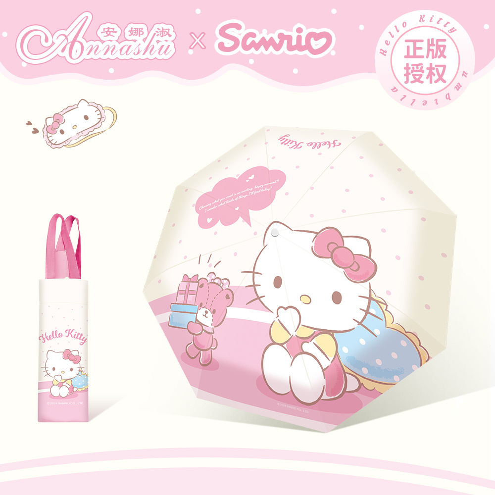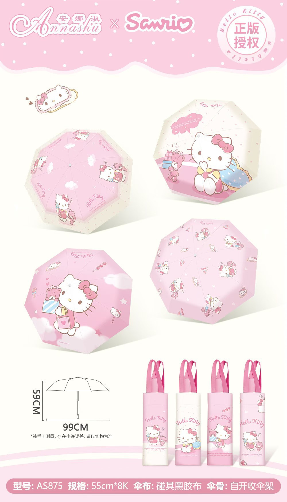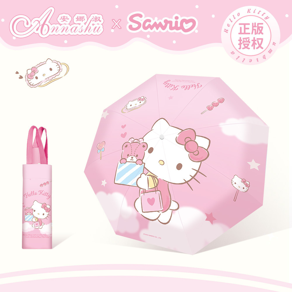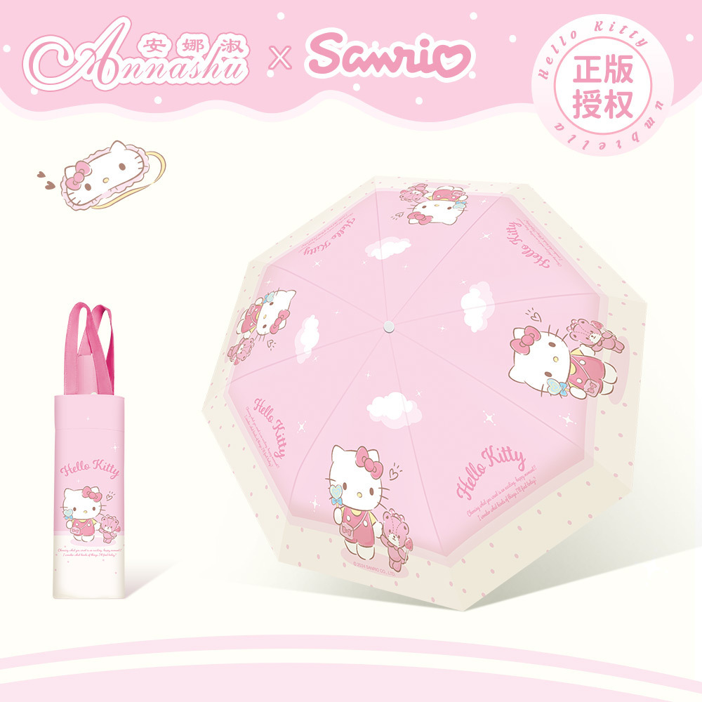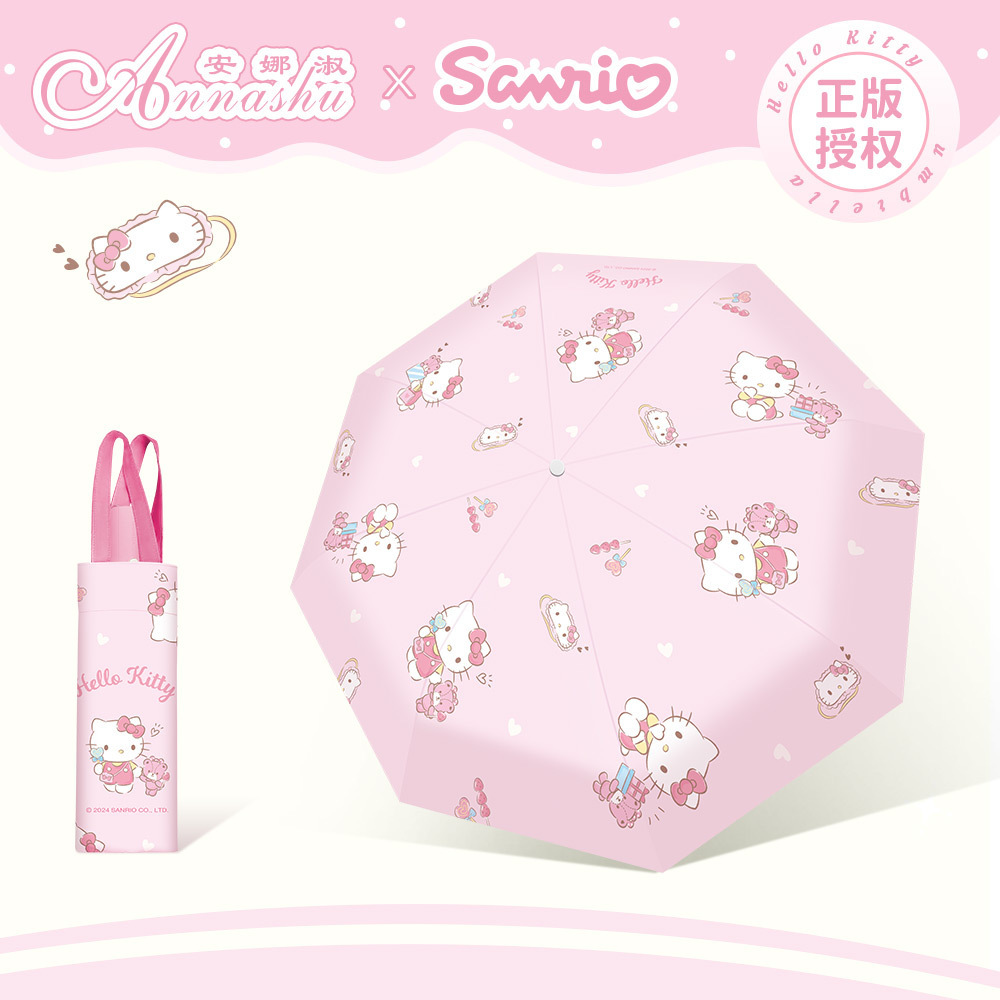 우산 KT 고양이 태양 우산 맑고 비 이중 사용 태양 보호 UV 보호 3 배 자동 우산스토어 가기