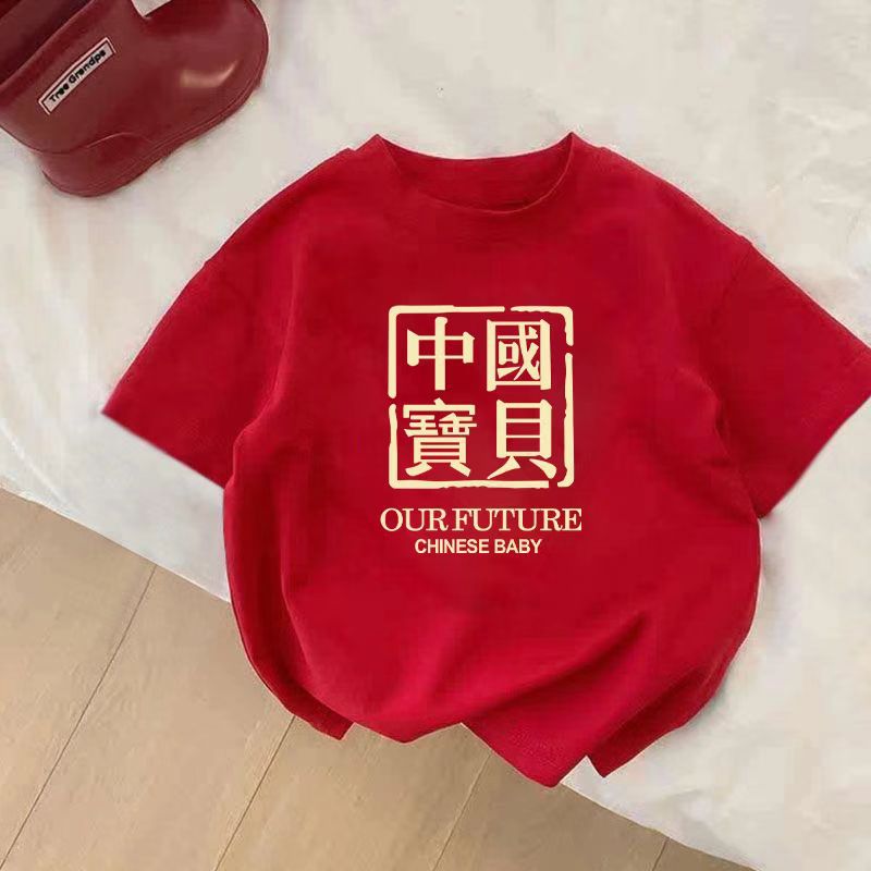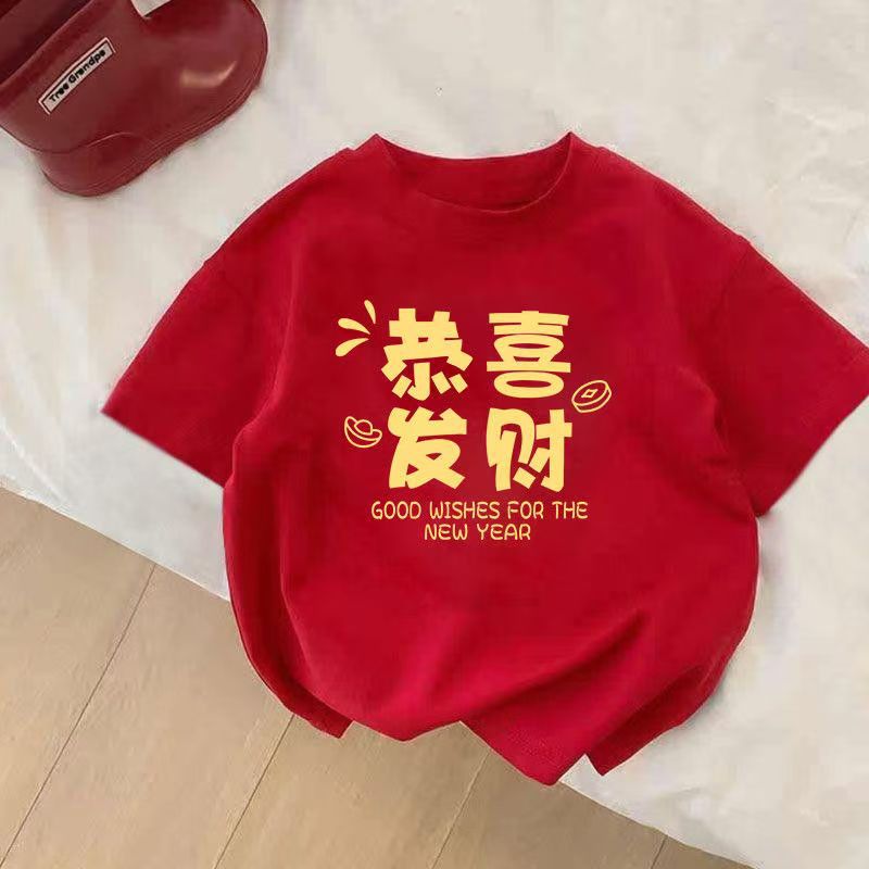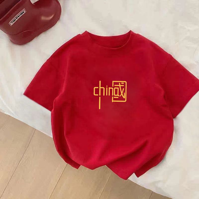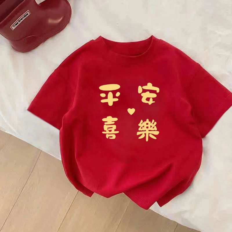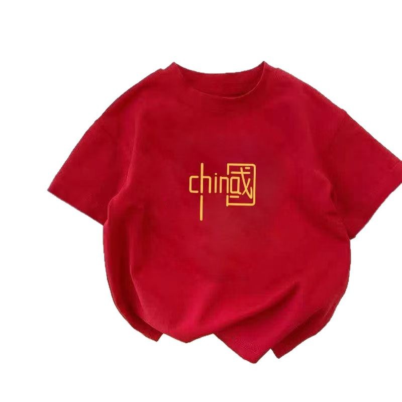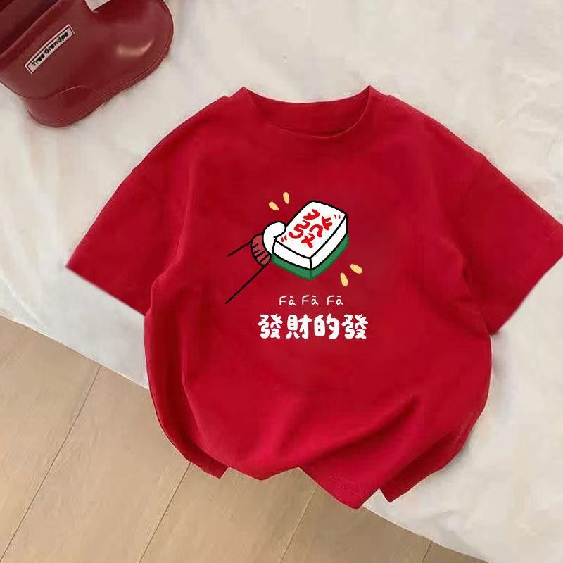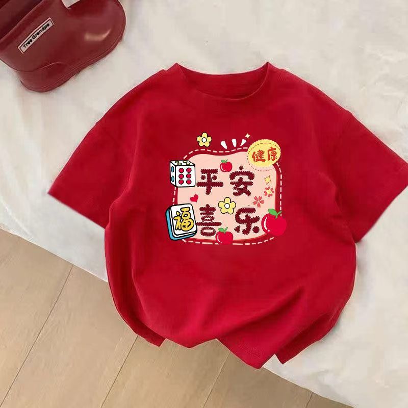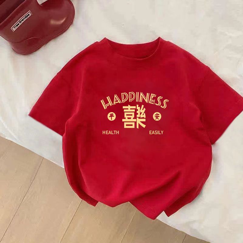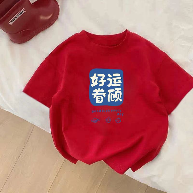 2025 새로운 한국 아동면 반팔 티셔츠 어린이 반소매 빨간 아동복 베이비 캐주얼 프린트 탑 t스토어 가기