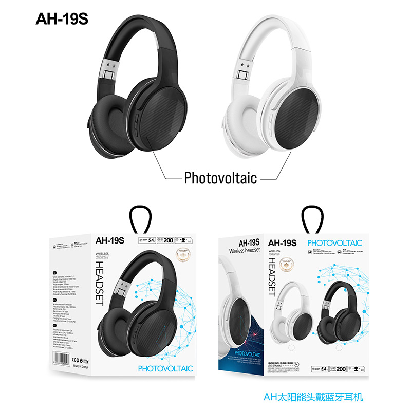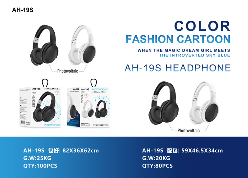 어린이 헤드 장착형 태양광 블루투스 헤드셋 단순하고 고급 AH-19S 개인 모델 새로운 인기 무선 헤드셋 국경 간스토어 가기