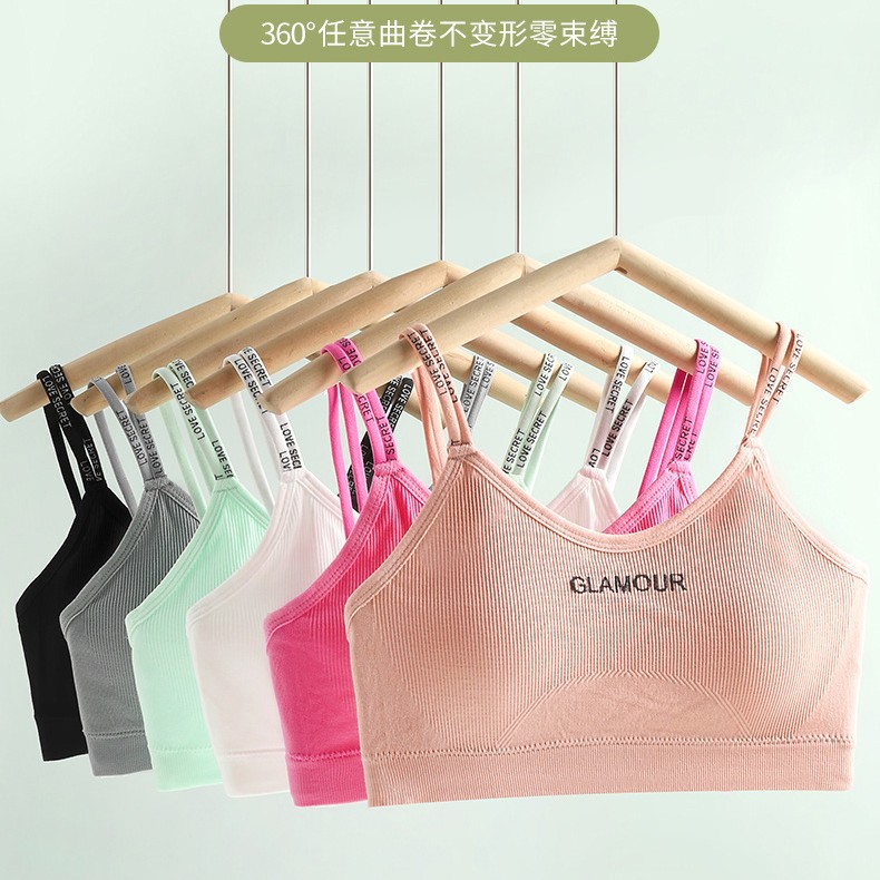 여아용 스트랩리스 학생 속옷 개발 사춘기 포장 가슴 패드로 스틸 링 없음 안티 러닝 이너 스포츠 브라스토어 가기