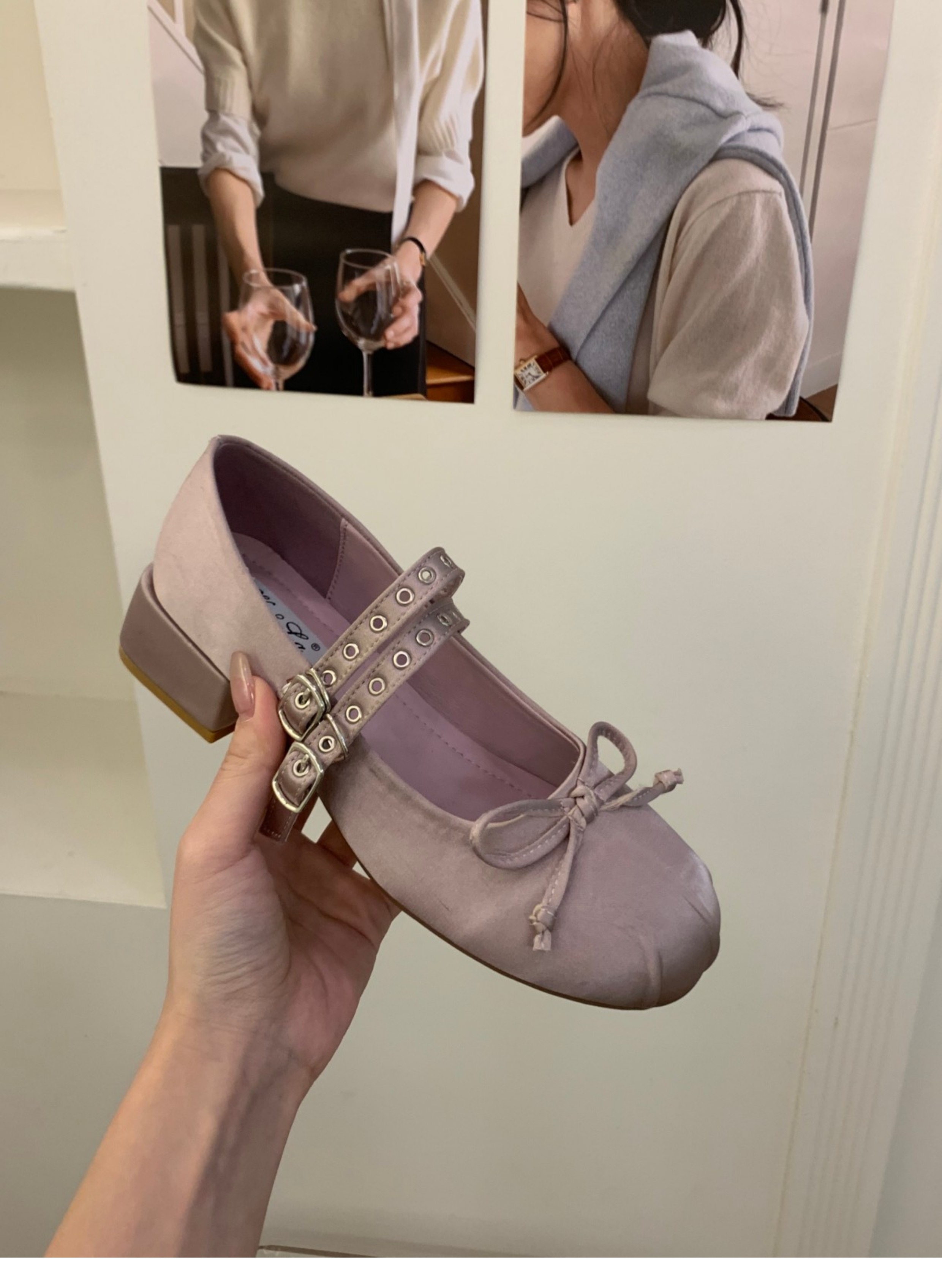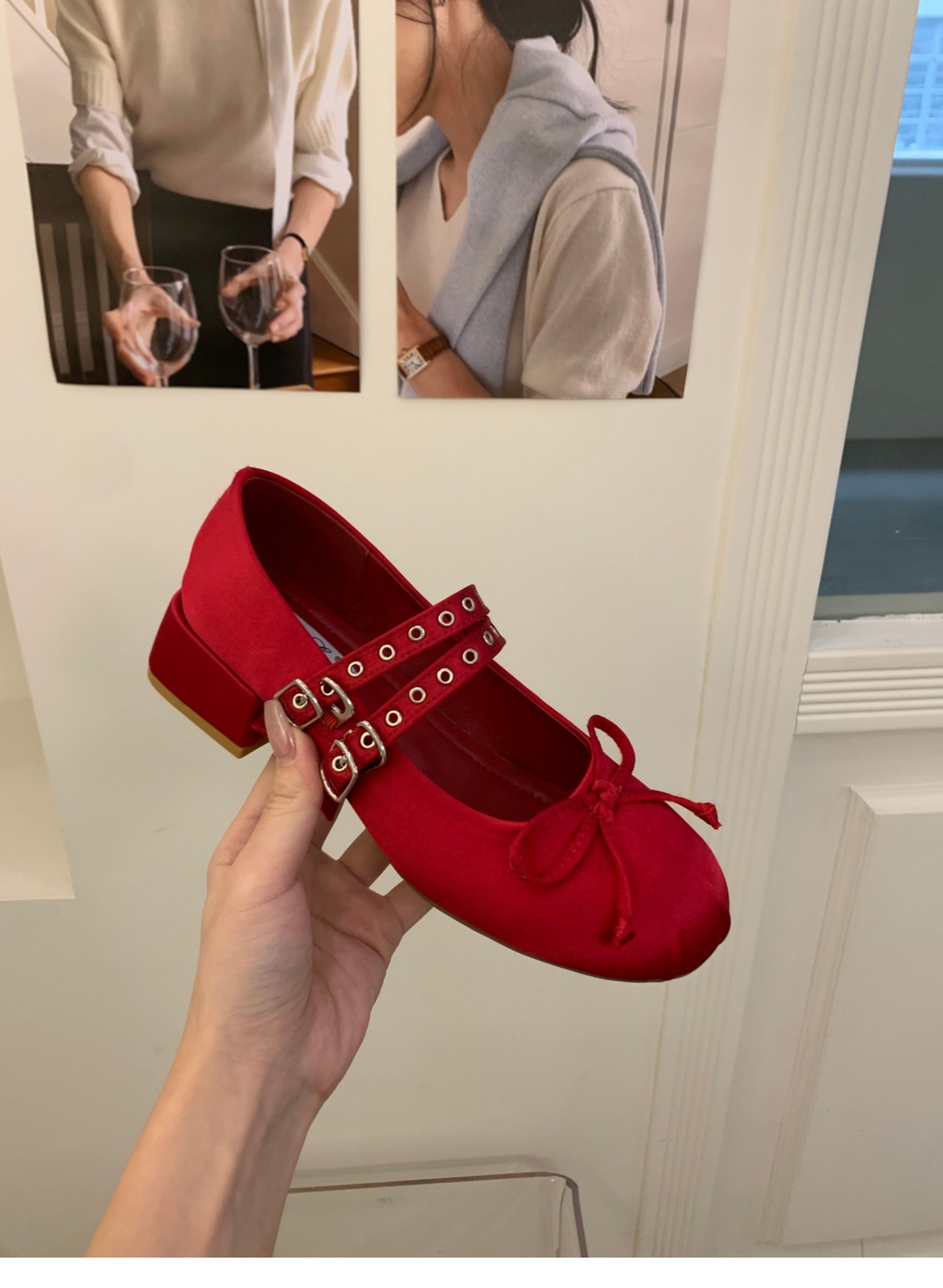 프랑스 미드 힐 레드 새틴 메리 제인 신발 요정 신발 2025 봄 발레 이브닝 슈즈스토어 가기