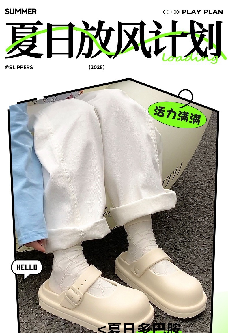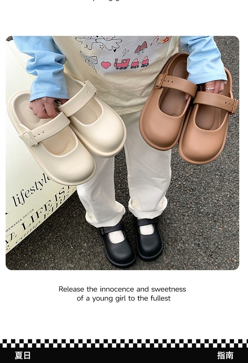 2025 Mary Jane Women's Shoes 유행 올 매치 아우터 웨어 샌들과 슬리퍼가 두꺼운 단독 슬립 온 Eva Baotou 샌들과 슬리퍼