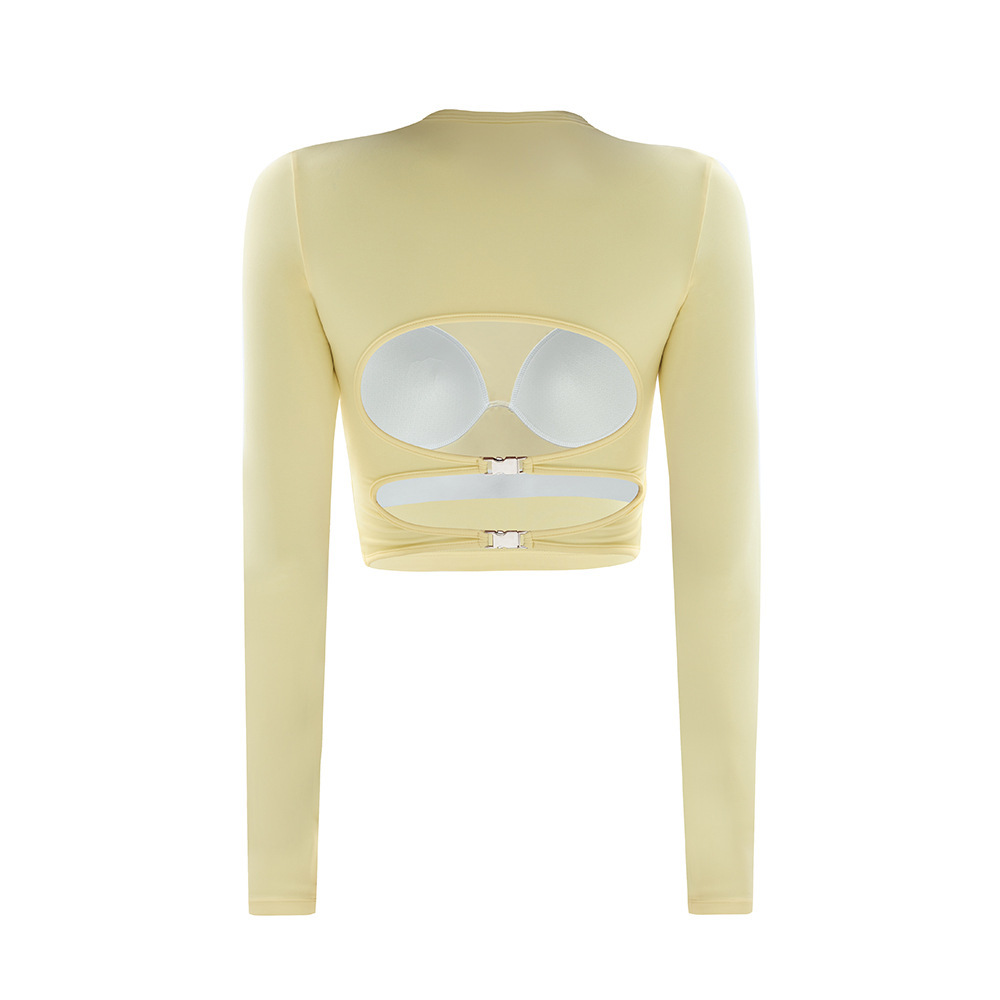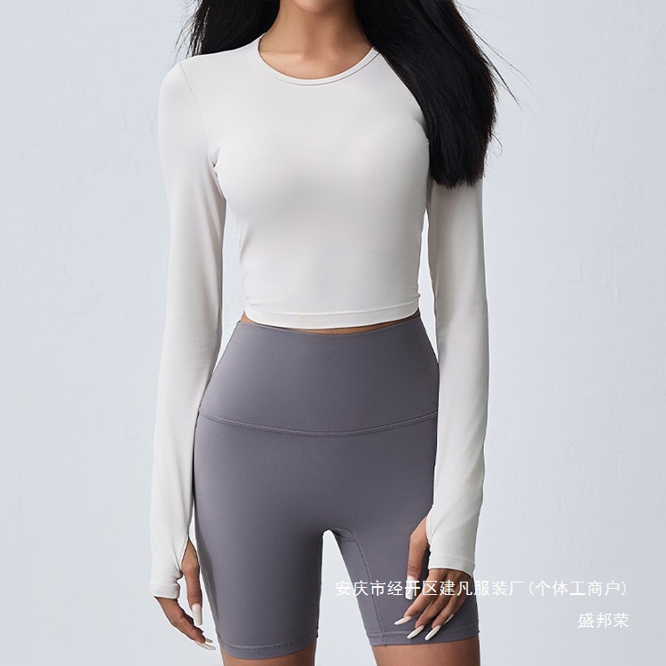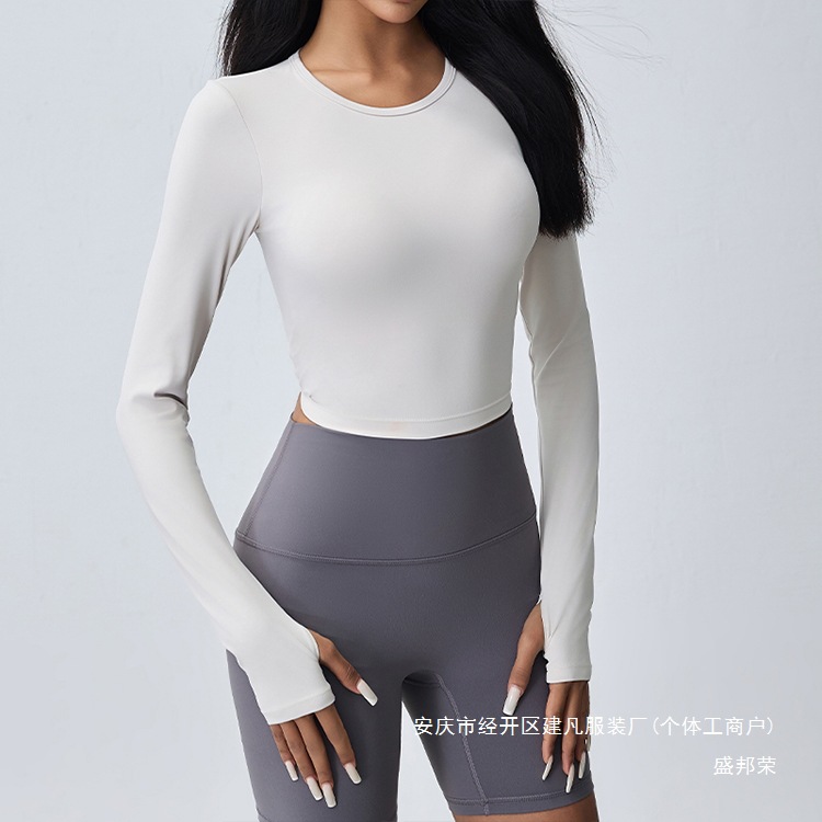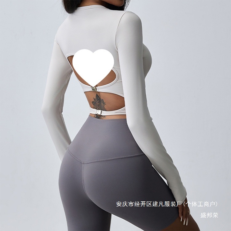 긴팔 타이트 요가 세트 훈련 중공 고탄성 피트니스 세트 여성용 슬림 핏 스포츠 탑