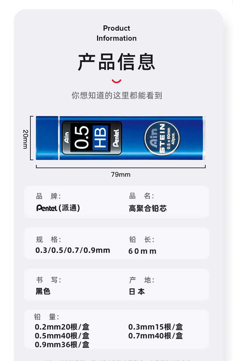 일본 파이 토 펜텔 자동 연필 코어 안티 브레이킹 리드 0.2/0.3/0.5/0.7/0.9스토어 가기