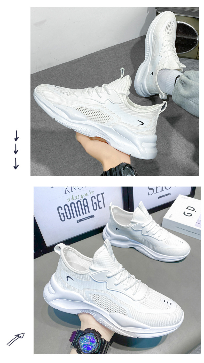 2023 국경 통기성 중공 메쉬 슈즈 메시 운동화 한국식 올매치 화이트 슈즈 두꺼운 밑창 런닝 아빠 트렌디 슈즈스토어 가기