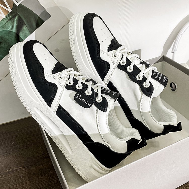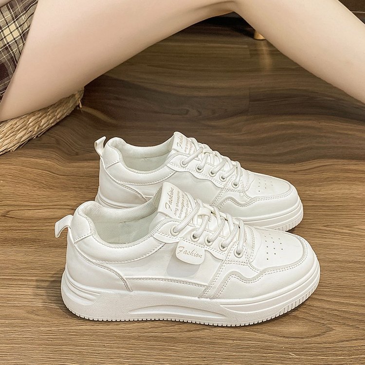 2025 봄과 가을 작은 흰색 신발 새로운 한국 스타일 여자 학생 플랫폼 높이 증가 스포츠 보드 신발 캐주얼 신발 싱글 레이어 신발스토어 가기