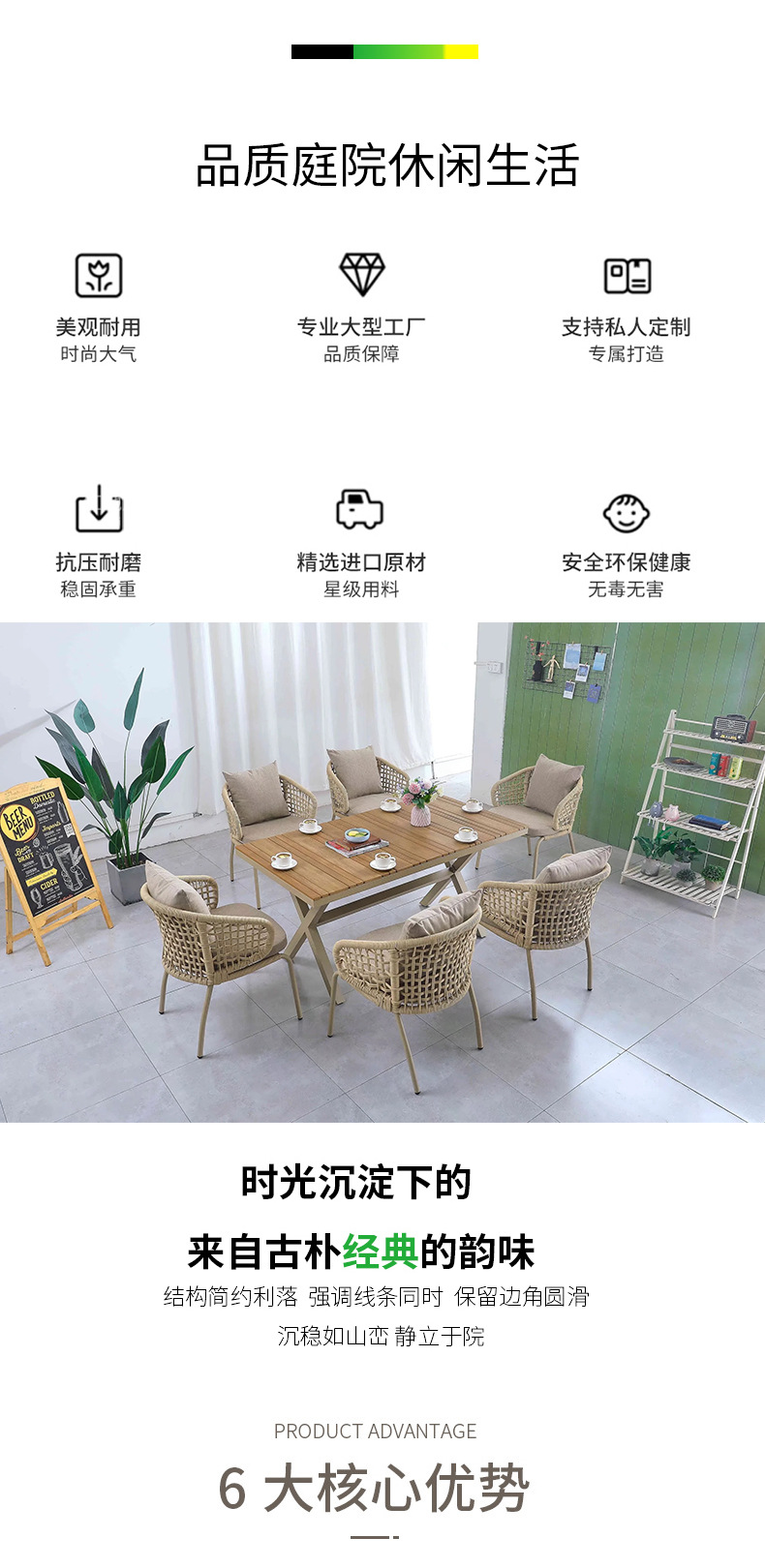 • 플랫 안락의자 6개 + 150cm 테이블