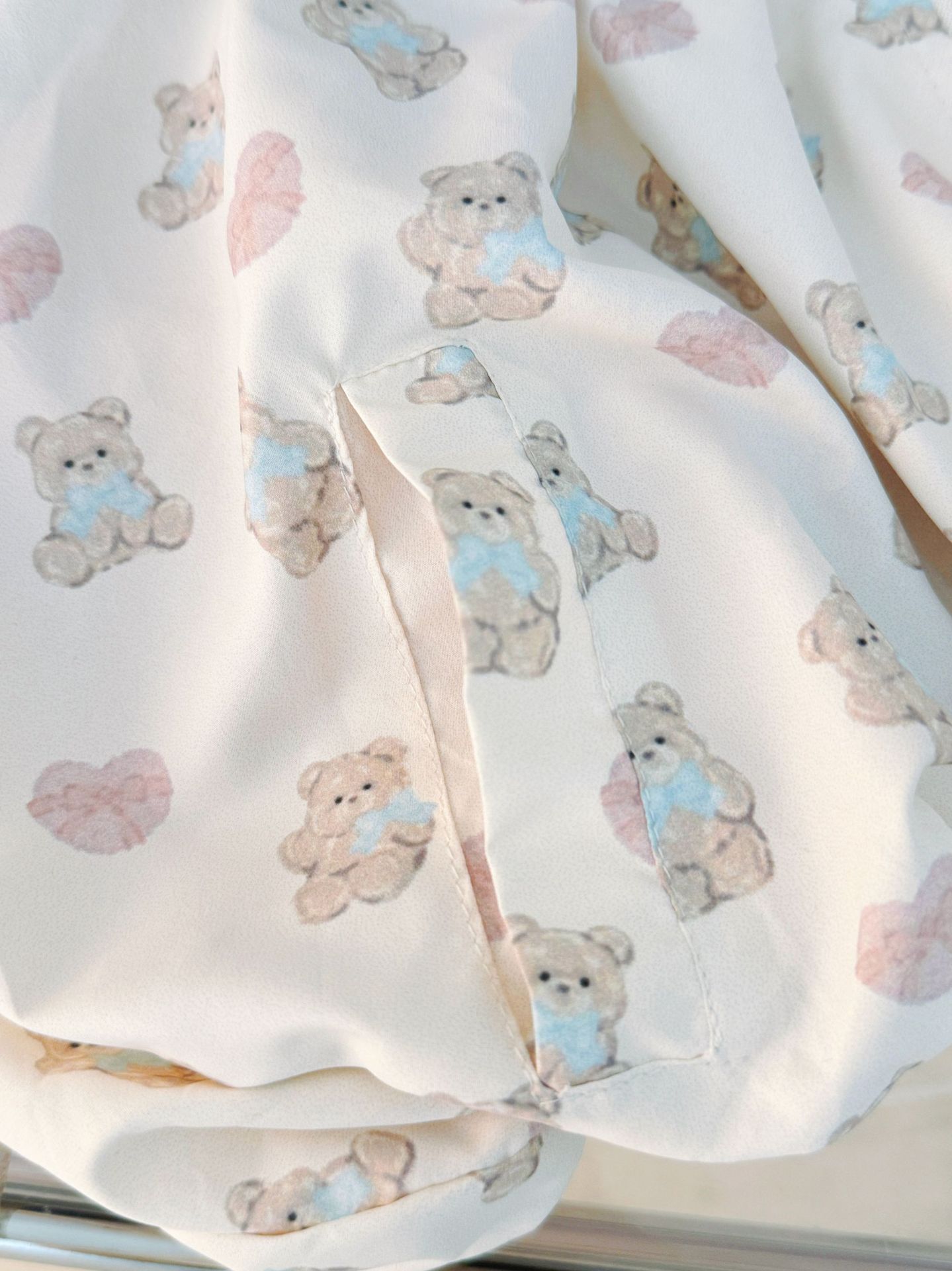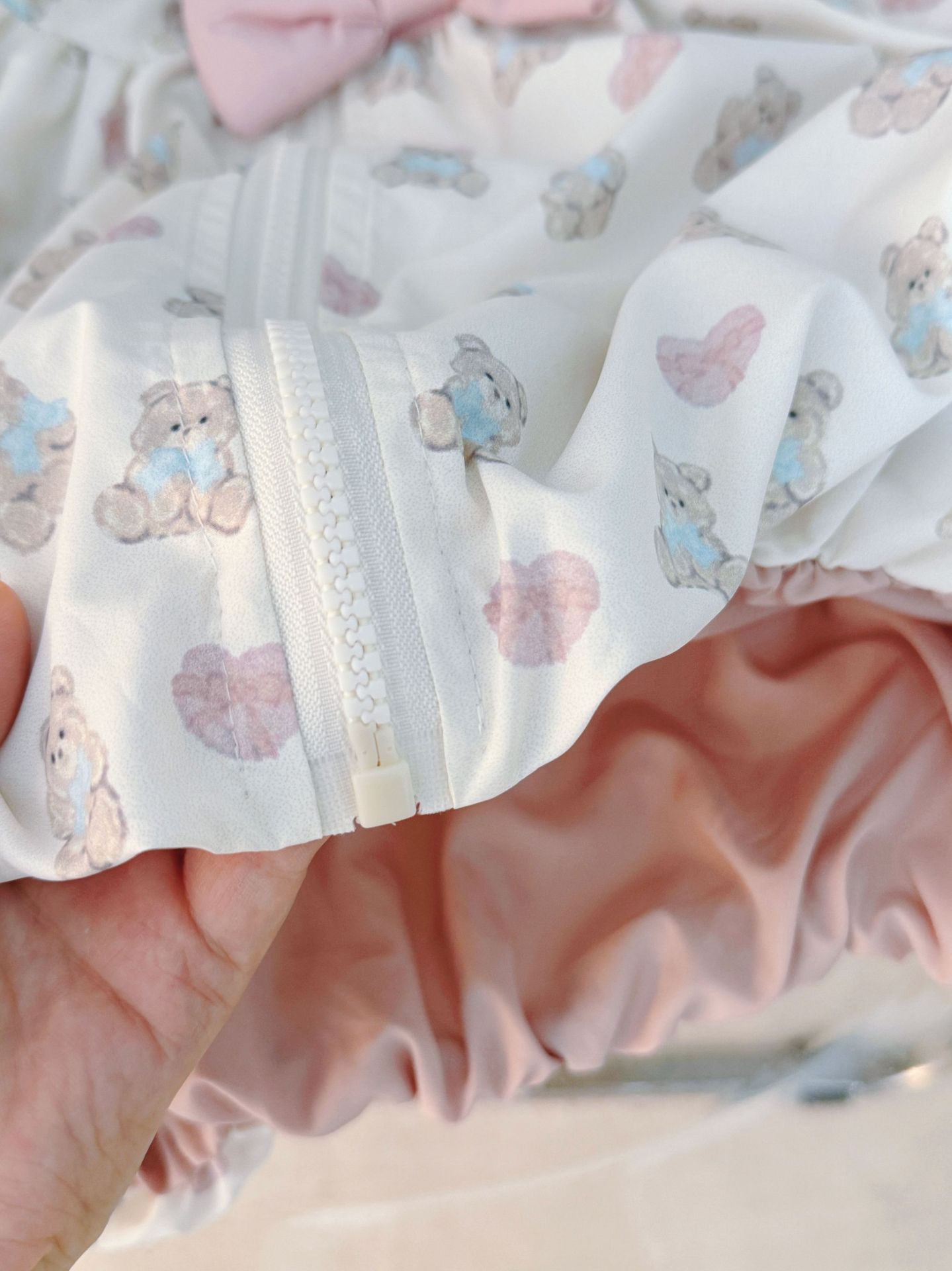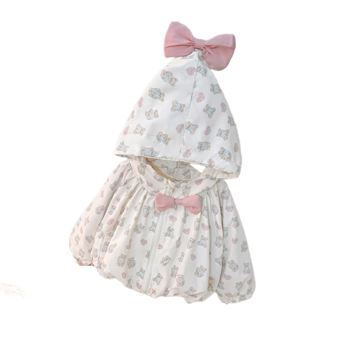 • 핑크 리본 올오버 프린트 윈드 브레이커 화이트