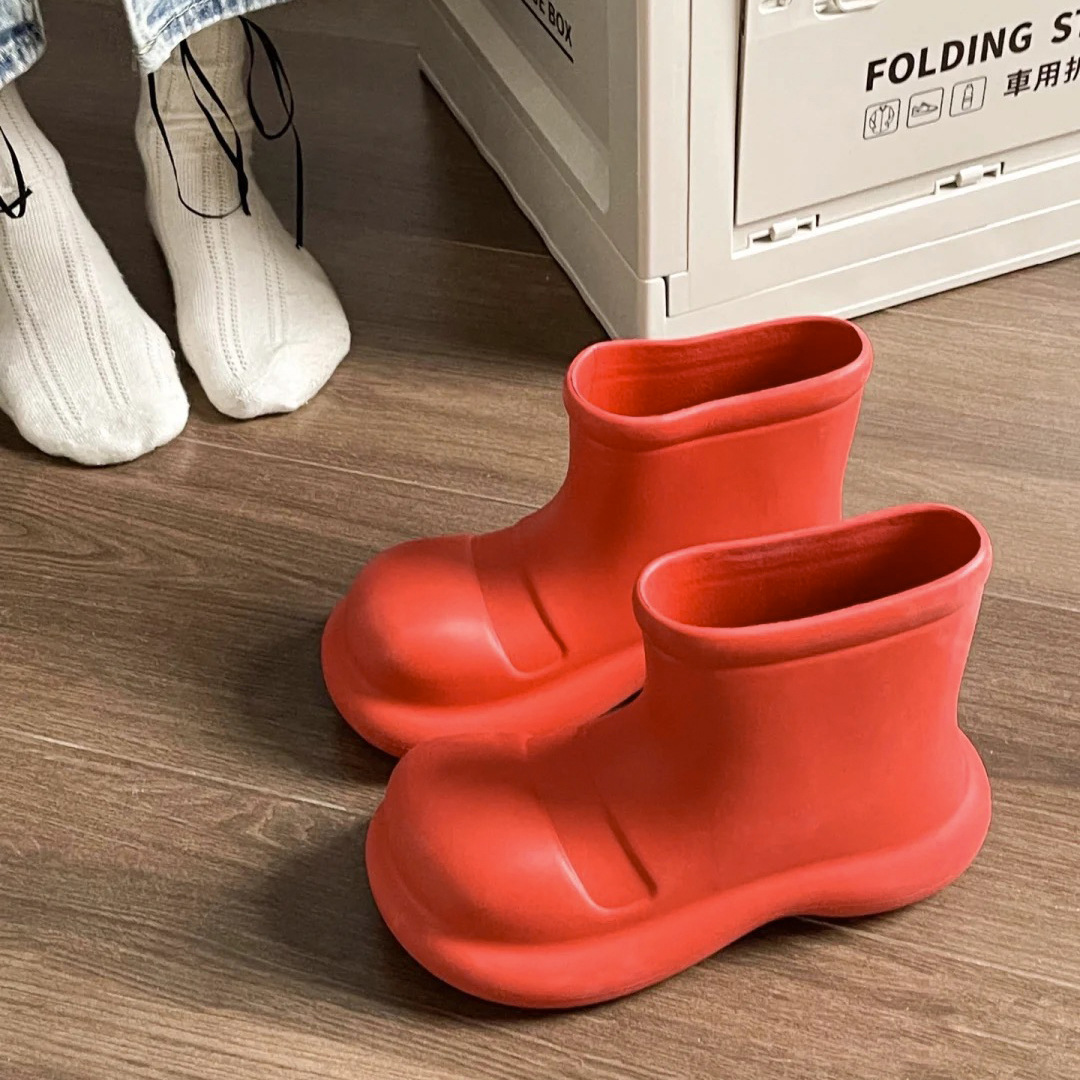 2025 새로운 인터넷 유명 핫 스타일 아우터 큰 머리 장화 여성용 미끄럼 방지 방수 두꺼운 바닥 학생 버섯 짧은 배럴 마틴 부츠