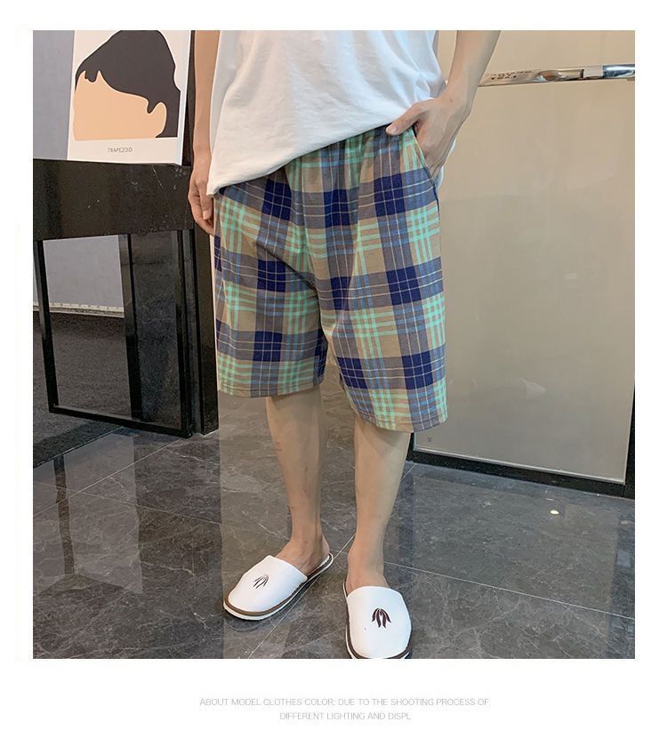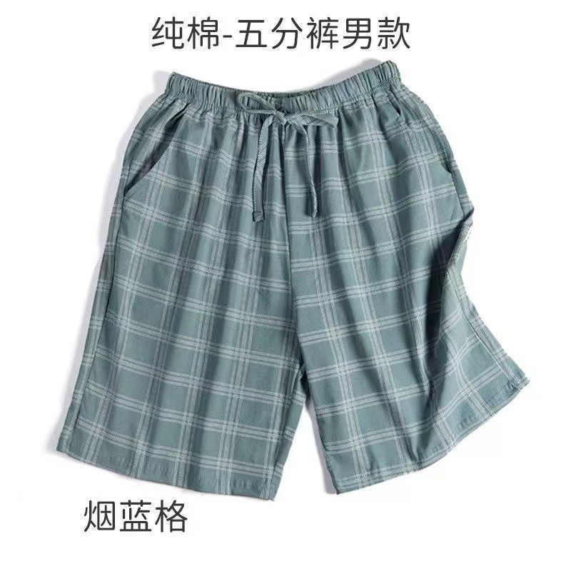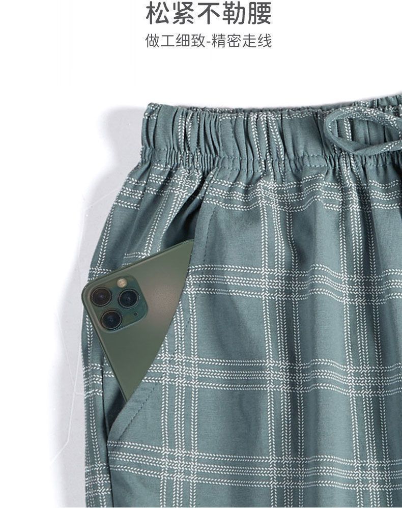 여름 순수한면 남자 파자마 바지 노인 해변 바지 홈 격자 무늬 파자마 바지스토어 가기
