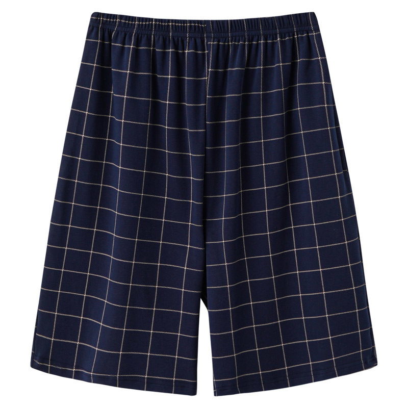 여름 순수한면 남자 파자마 바지 노인 해변 바지 홈 격자 무늬 파자마 바지