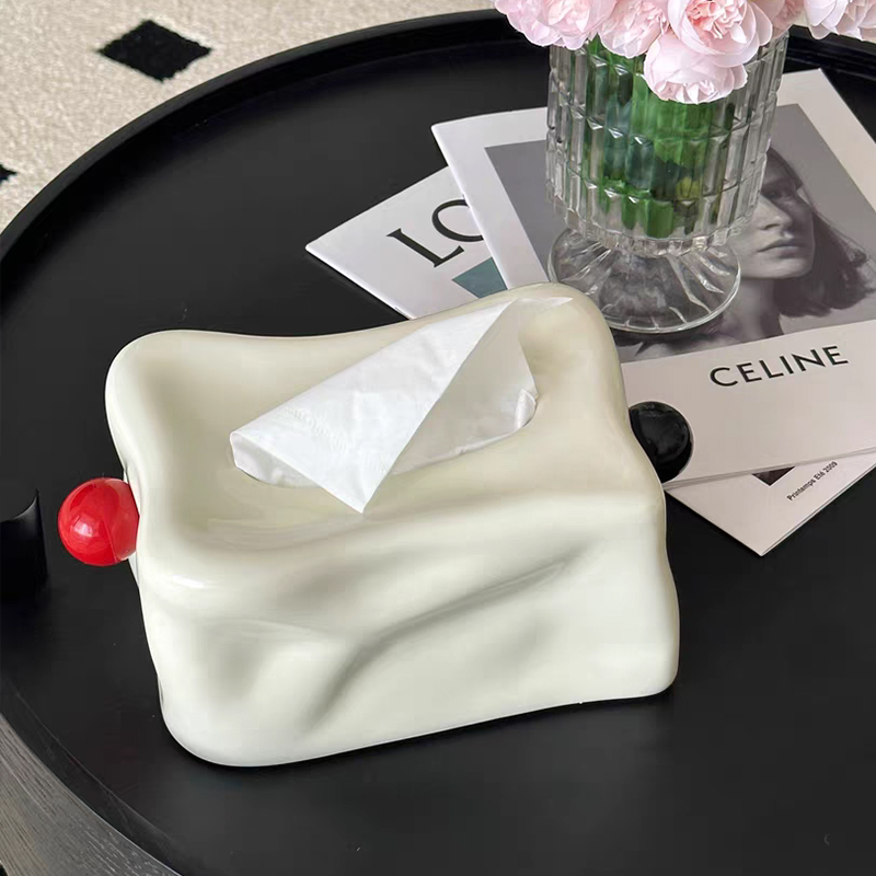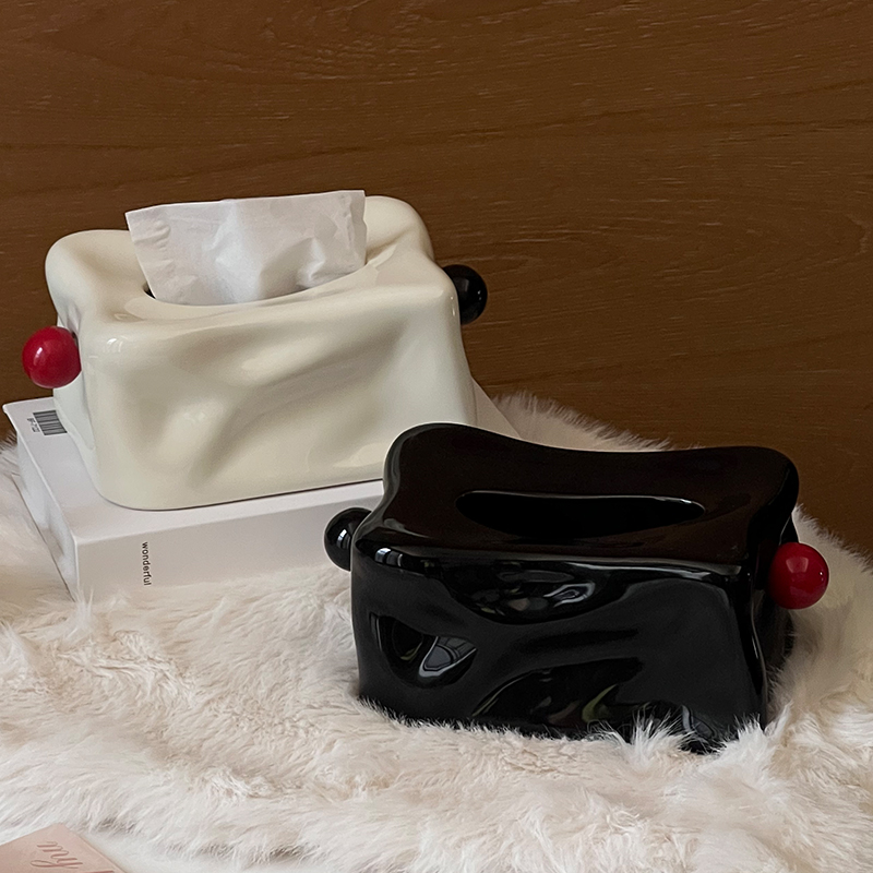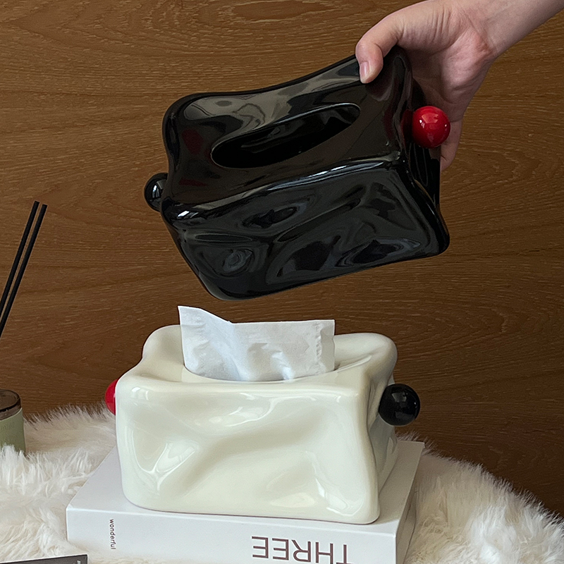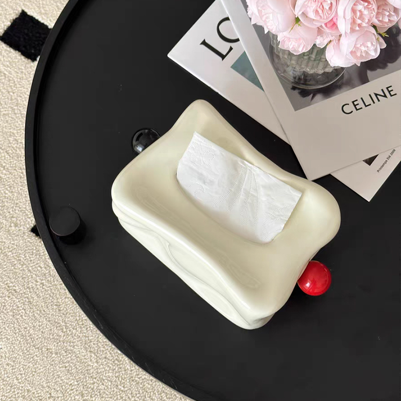 • 세라믹 주름 티슈 박스 - 크림 - 블랙 + 레드 비즈