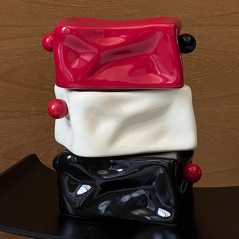 • 세라믹 주름 티슈 박스 - 블랙 - 블랙 + 레드 비즈
