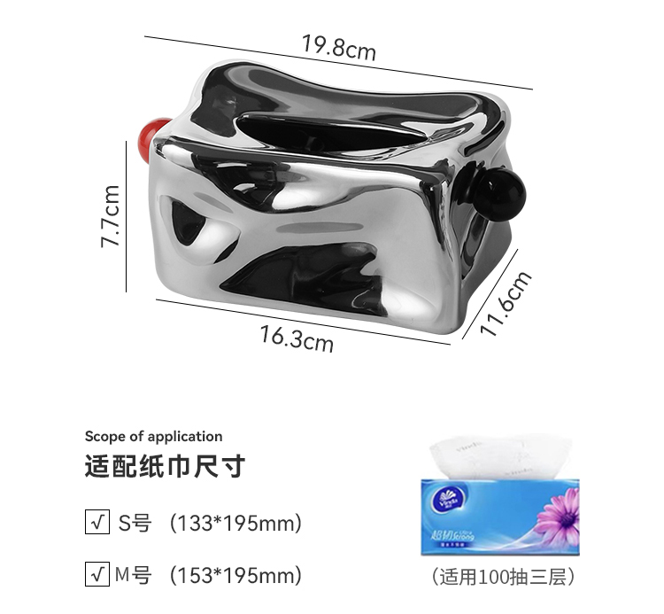• 세라믹 주름 티슈 박스 - 실버 - 블랙 + 레드 비즈