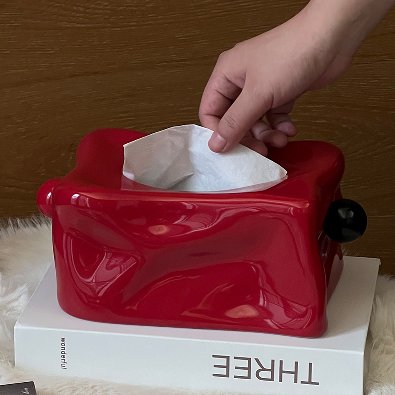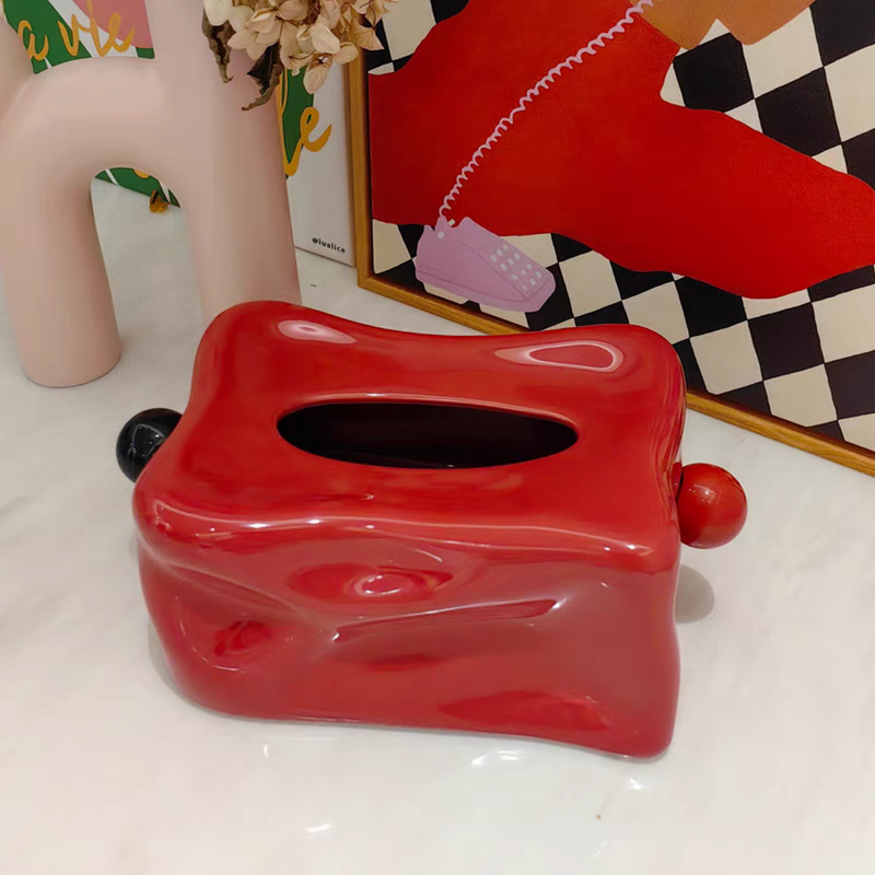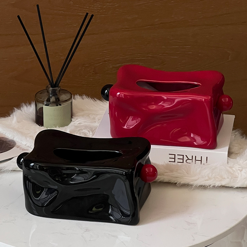 • 세라믹 주름 티슈 박스-레드-블랙+레드 비즈