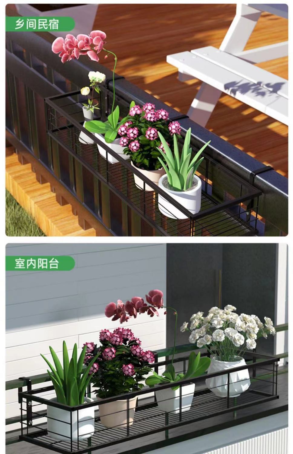 발코니 꽃 랙 교수형 단철 난간 꽃 냄비 매달려 랙 다육 난간 꽃 랙 실내 창문 세트 Ruizhiyin스토어 가기