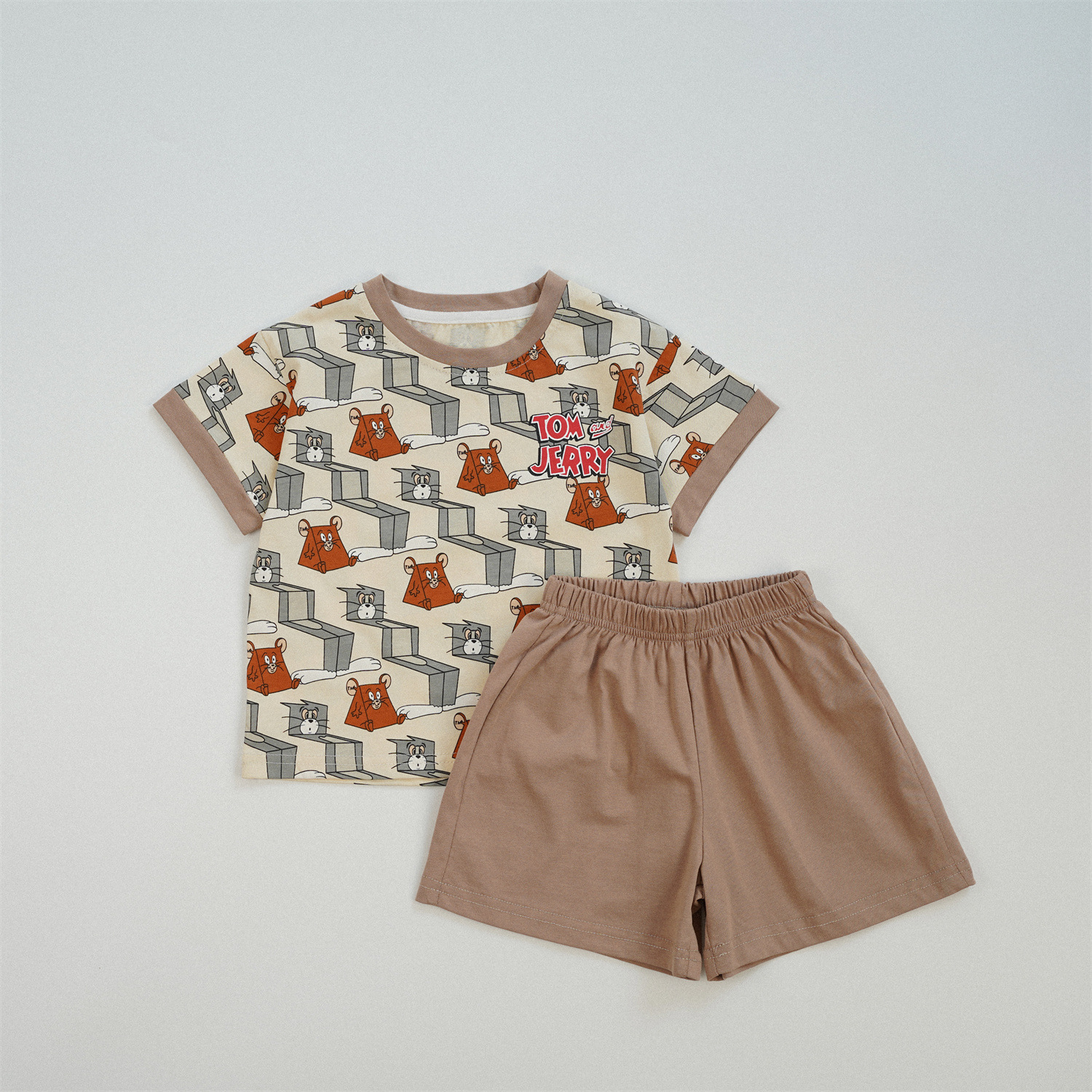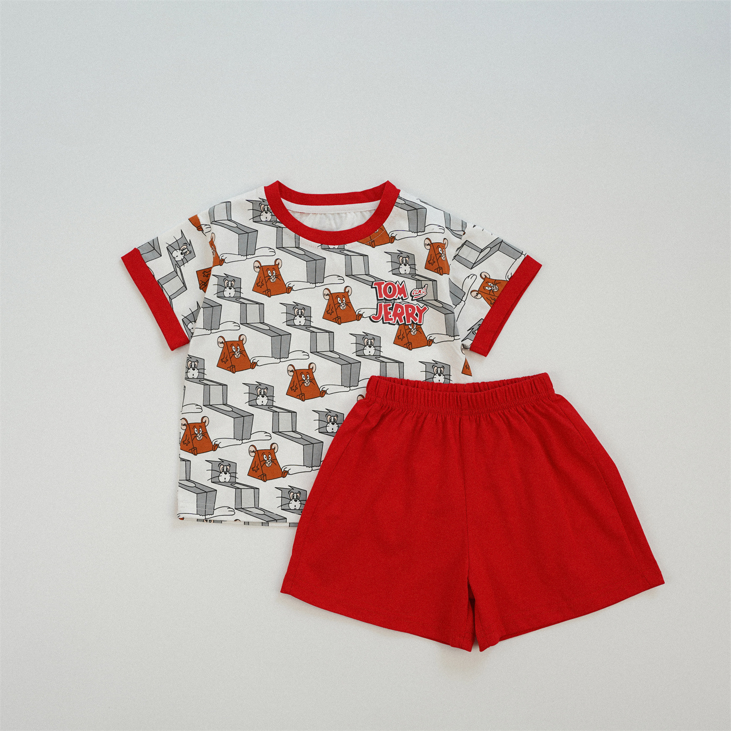 어린이 반팔 세트 여름 면화 소년 옷 고양이와 마우스 새 여자 티셔츠 여름 옷 아기 어린이 옷스토어 가기