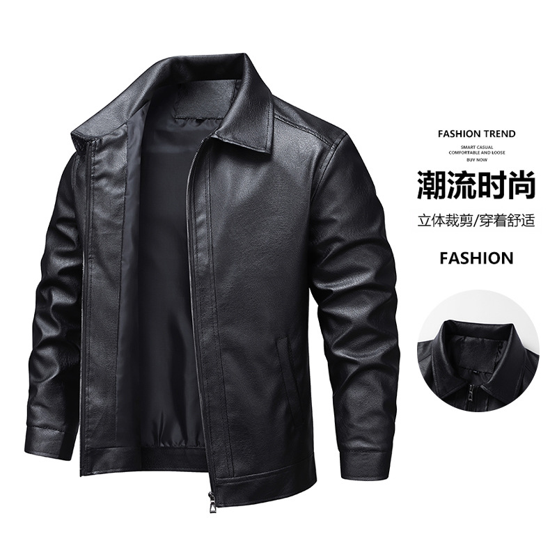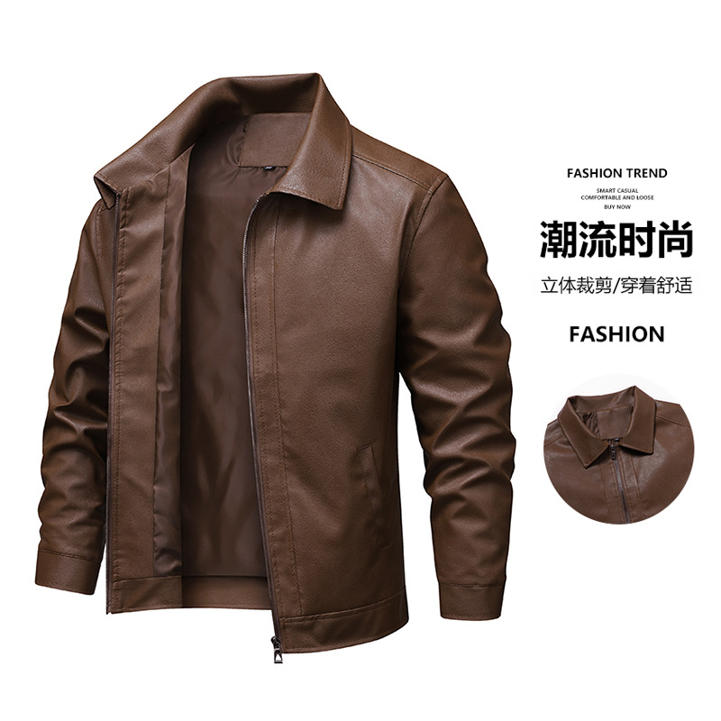 2025 새로운 옷깃 가죽 방풍 따뜻한 재킷 패션 옷깃 중년 남성 가죽 자켓 탑스토어 가기