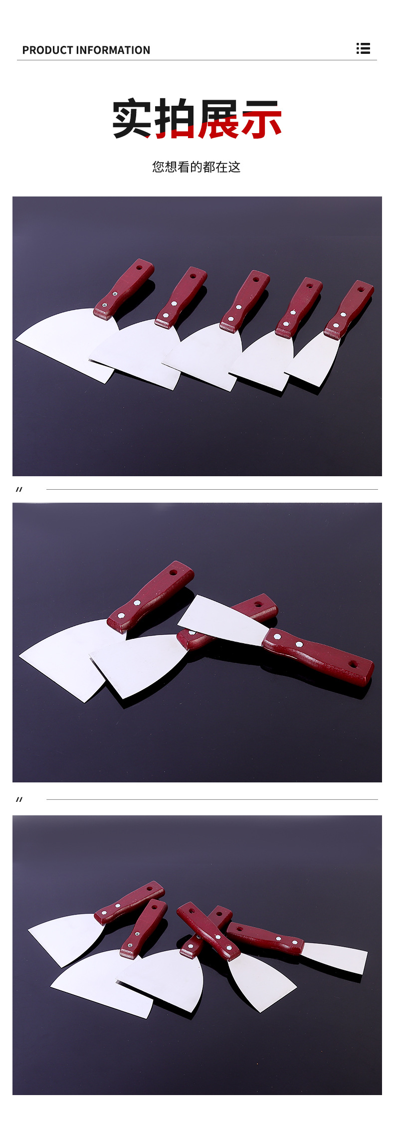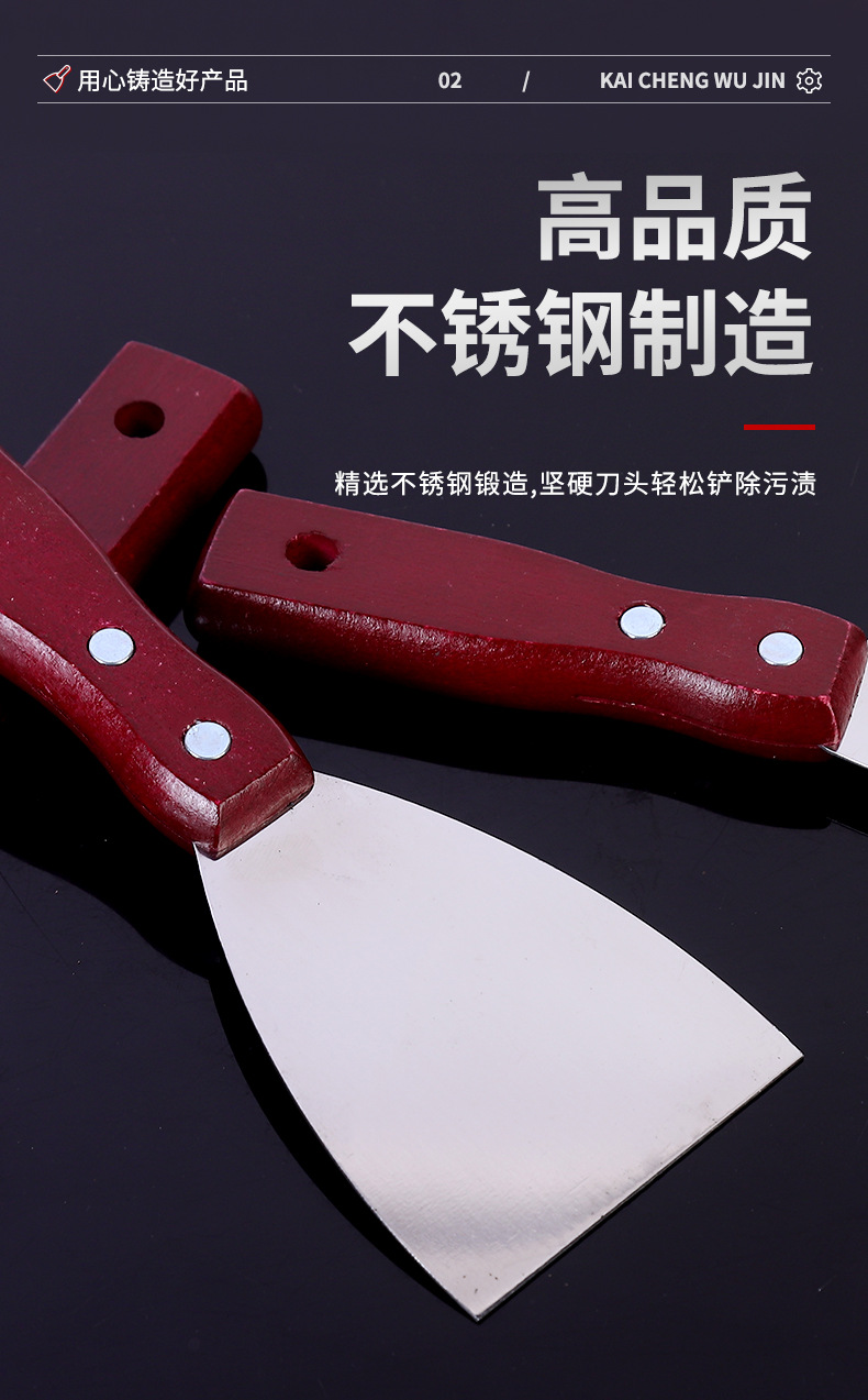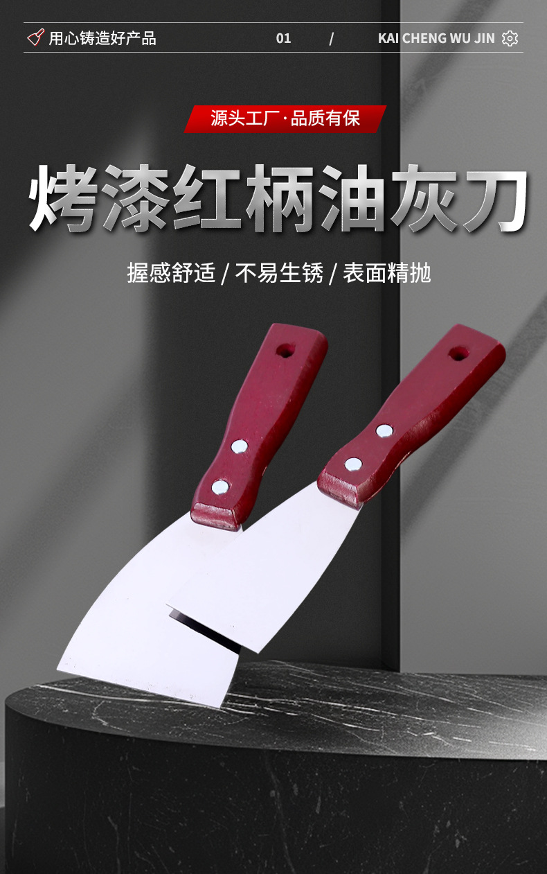 스테인레스 스틸 퍼티 나이프 도매 빨간 페인트 나무 손잡이 퍼티 나이프 두꺼운 삼각형 스크레이퍼 벽 청소 삽 나이프 솔기 청소 칼스토어 가기