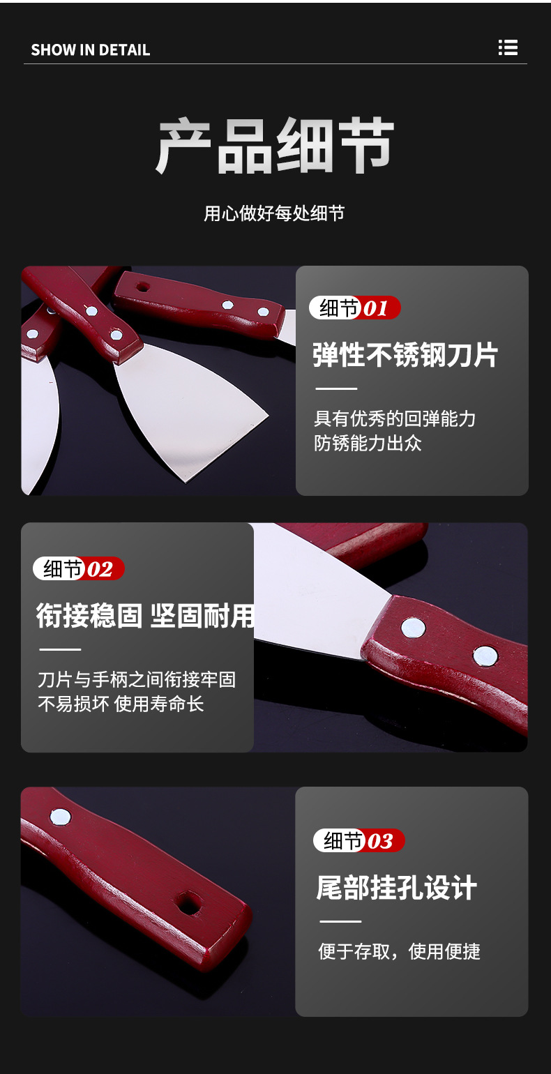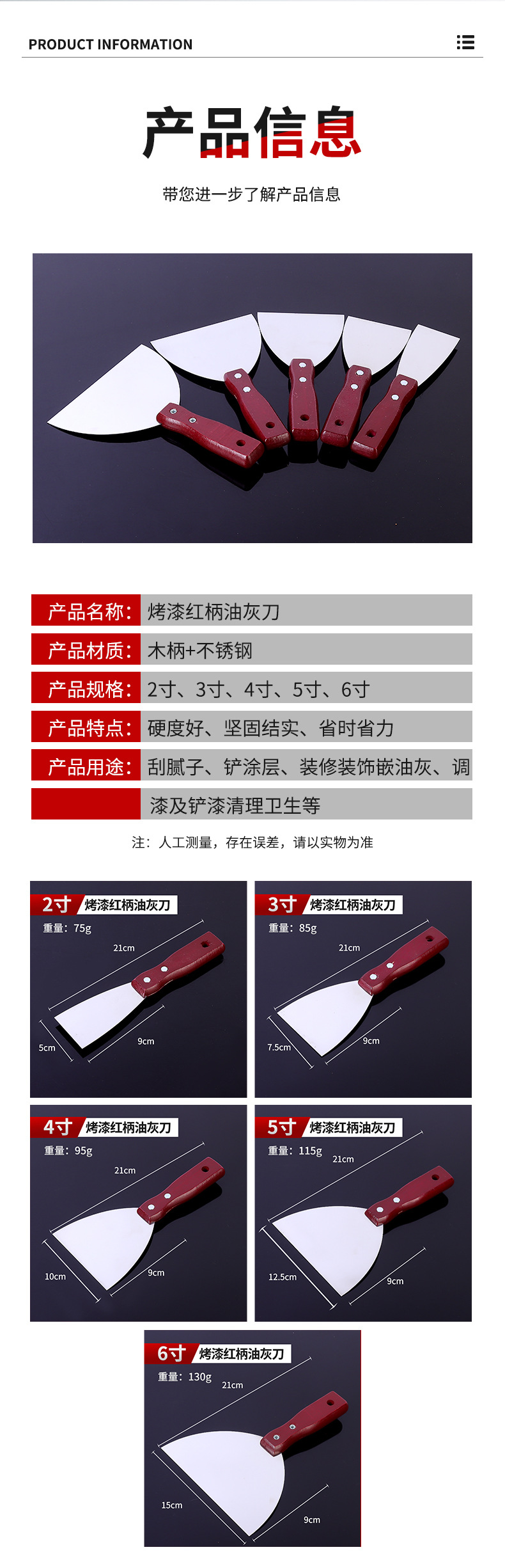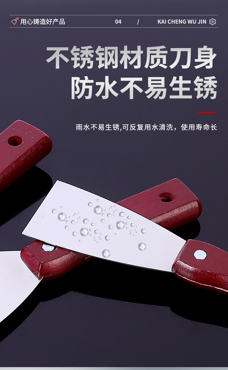 스테인레스 스틸 퍼티 나이프 도매 빨간 페인트 나무 손잡이 퍼티 나이프 두꺼운 삼각형 스크레이퍼 벽 청소 삽 나이프 솔기 청소 칼스토어 가기