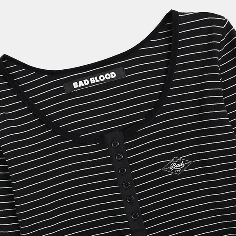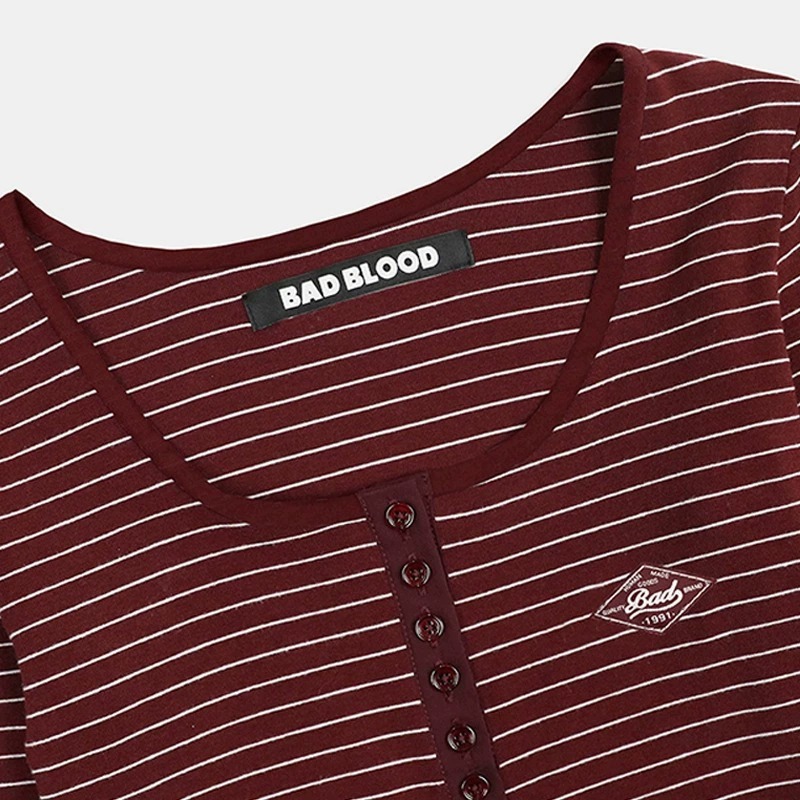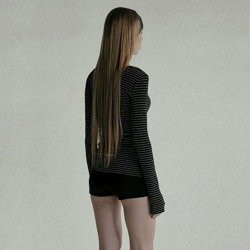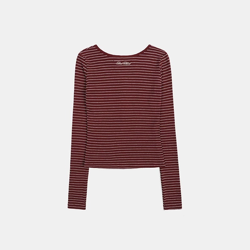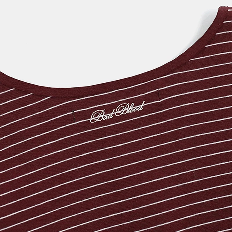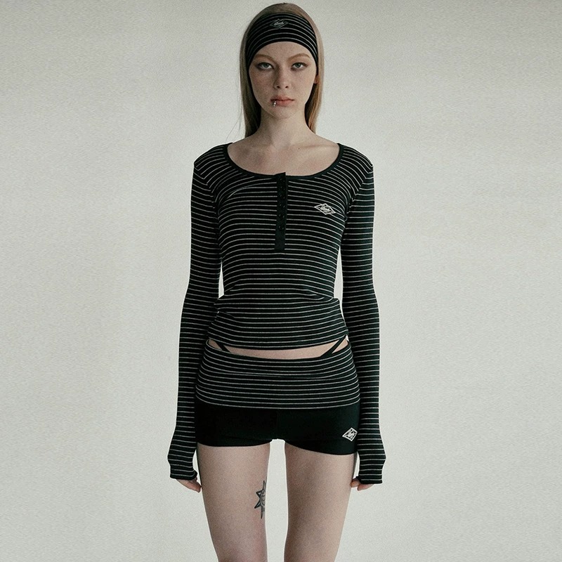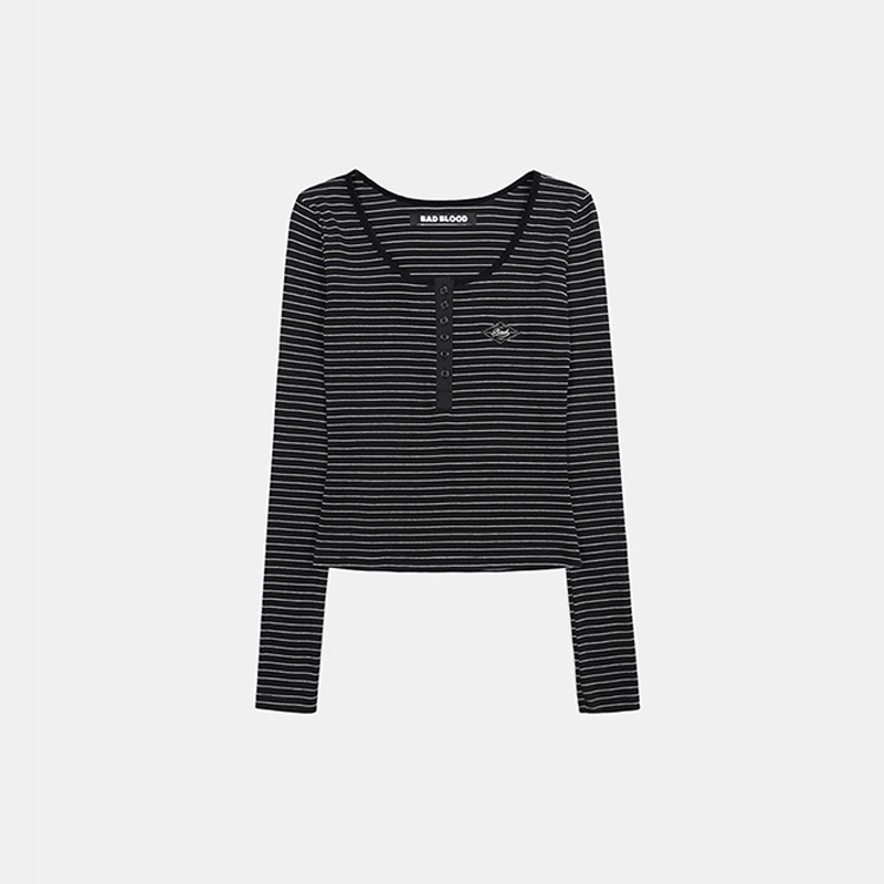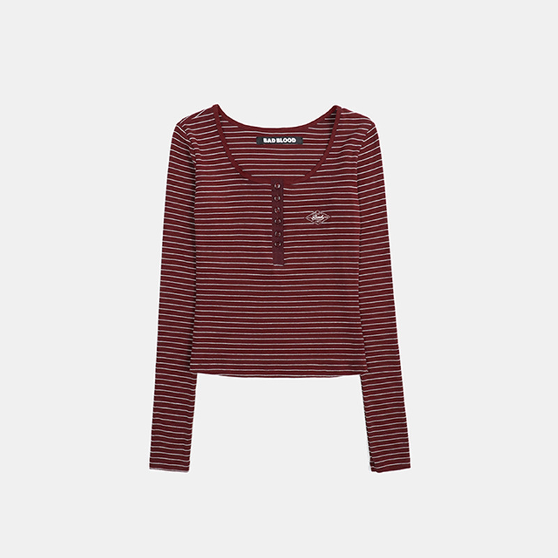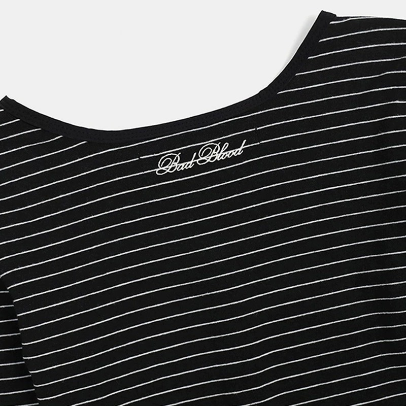 한국 배드블러드 BCAC 시리즈 아메리칸 스타일 스트라이프 티셔츠 여성용 틈새 시장 섹시 긴팔 슬림핏 상의 트렌디스토어 가기