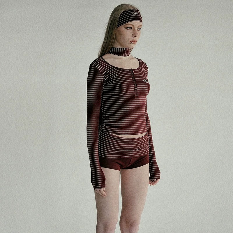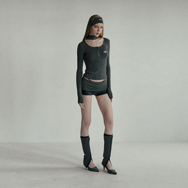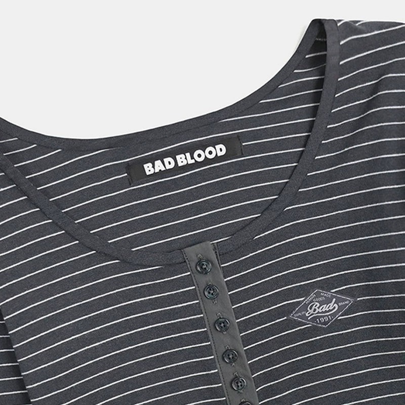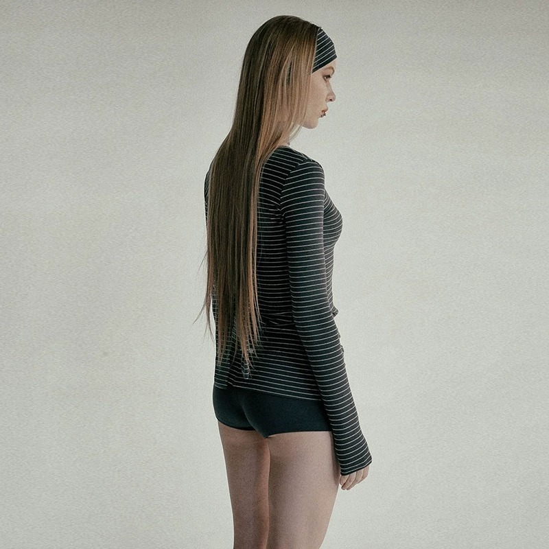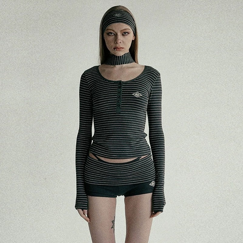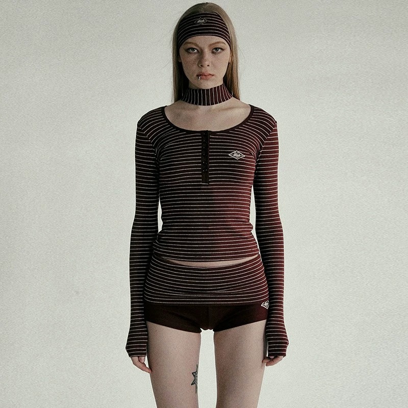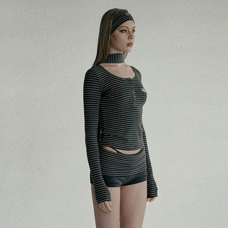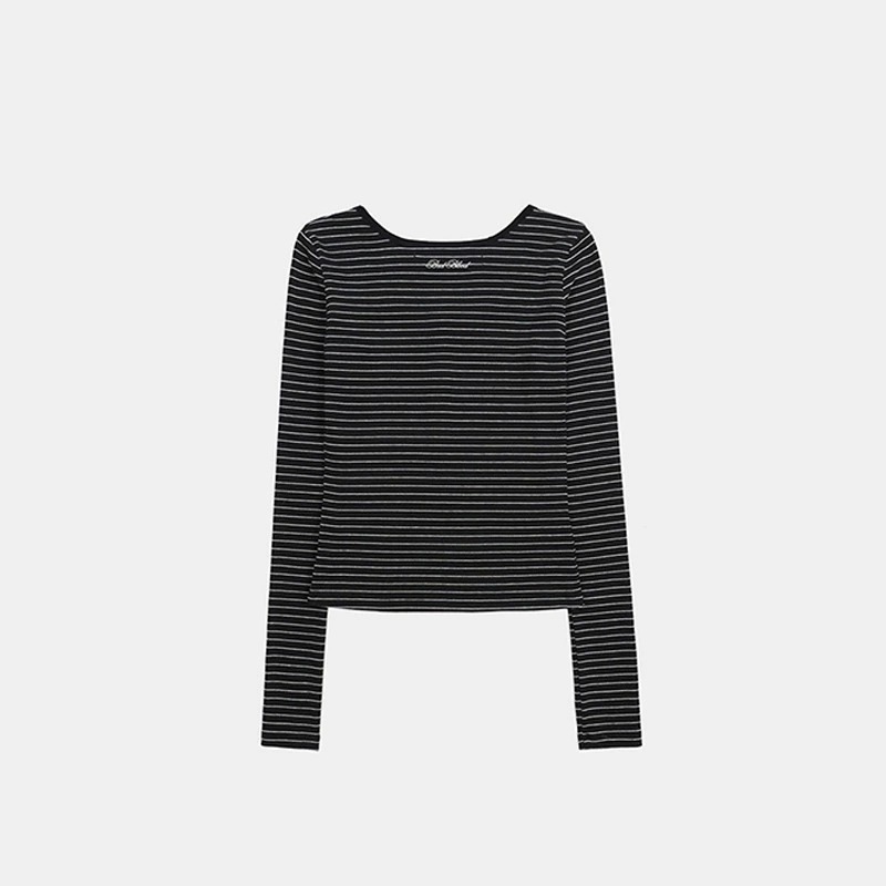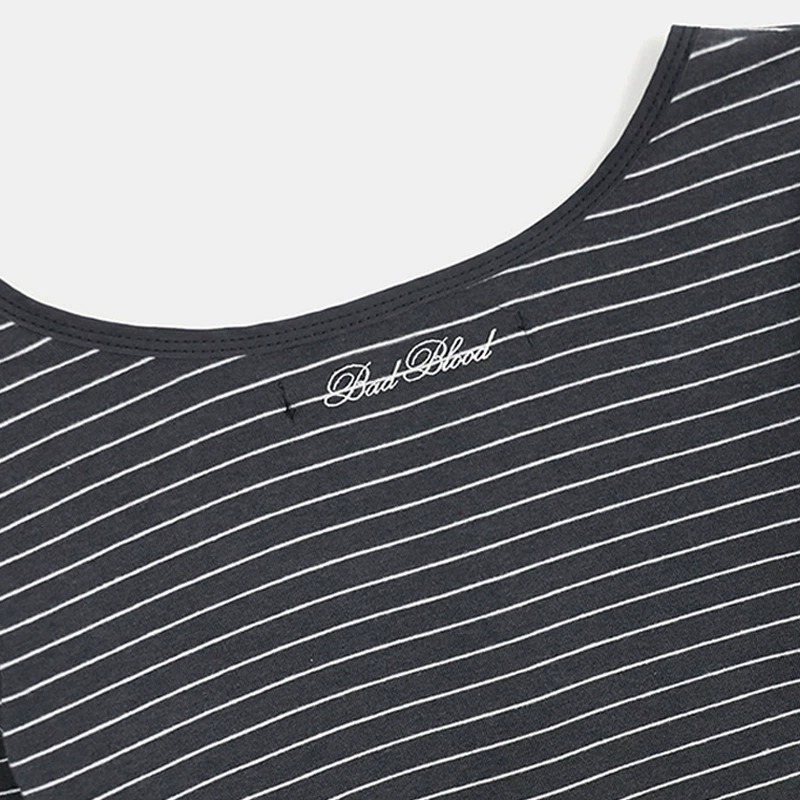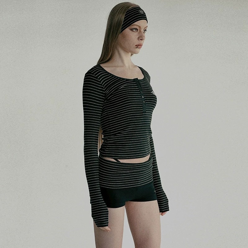 한국 배드블러드 BCAC 시리즈 아메리칸 스타일 스트라이프 티셔츠 여성용 틈새 시장 섹시 긴팔 슬림핏 상의 트렌디스토어 가기