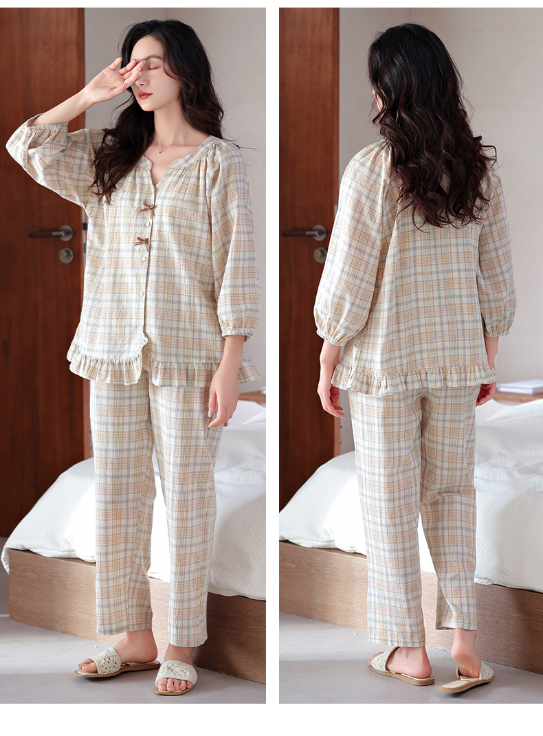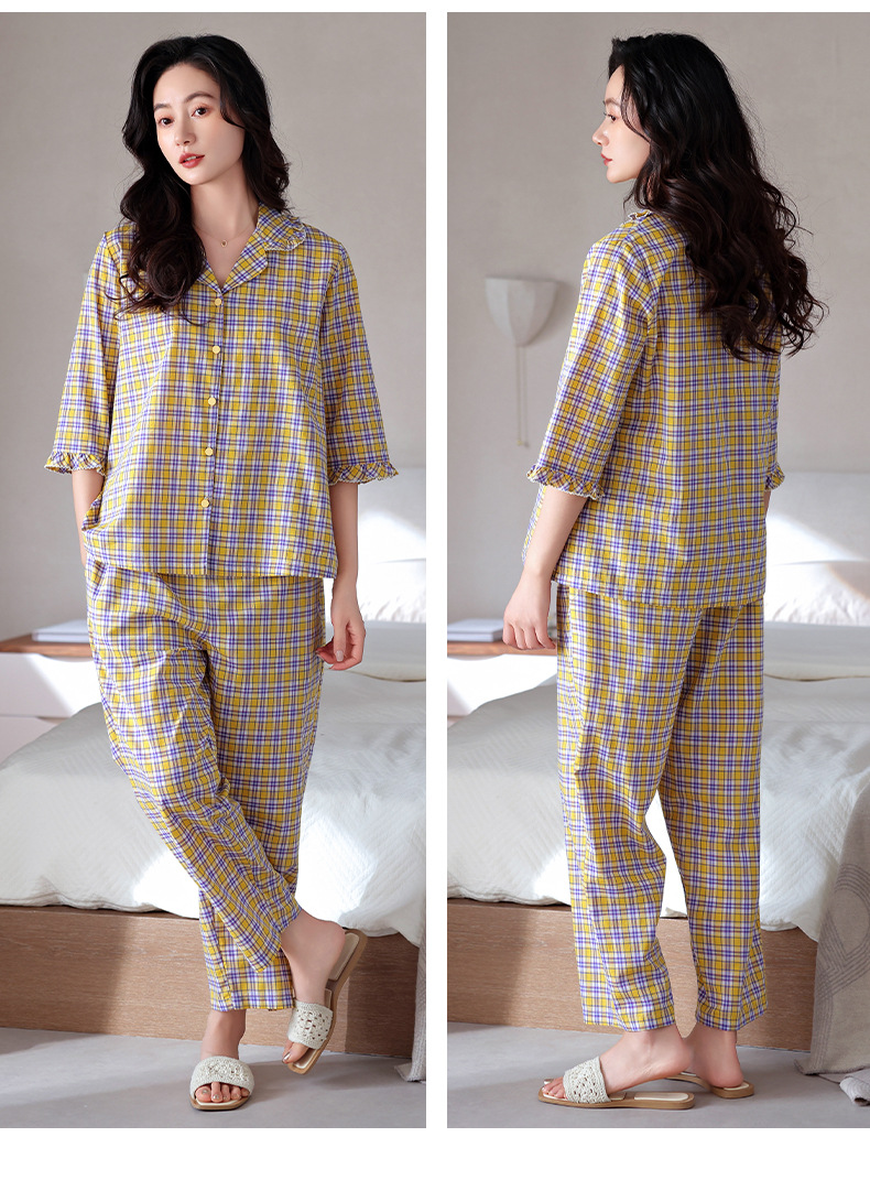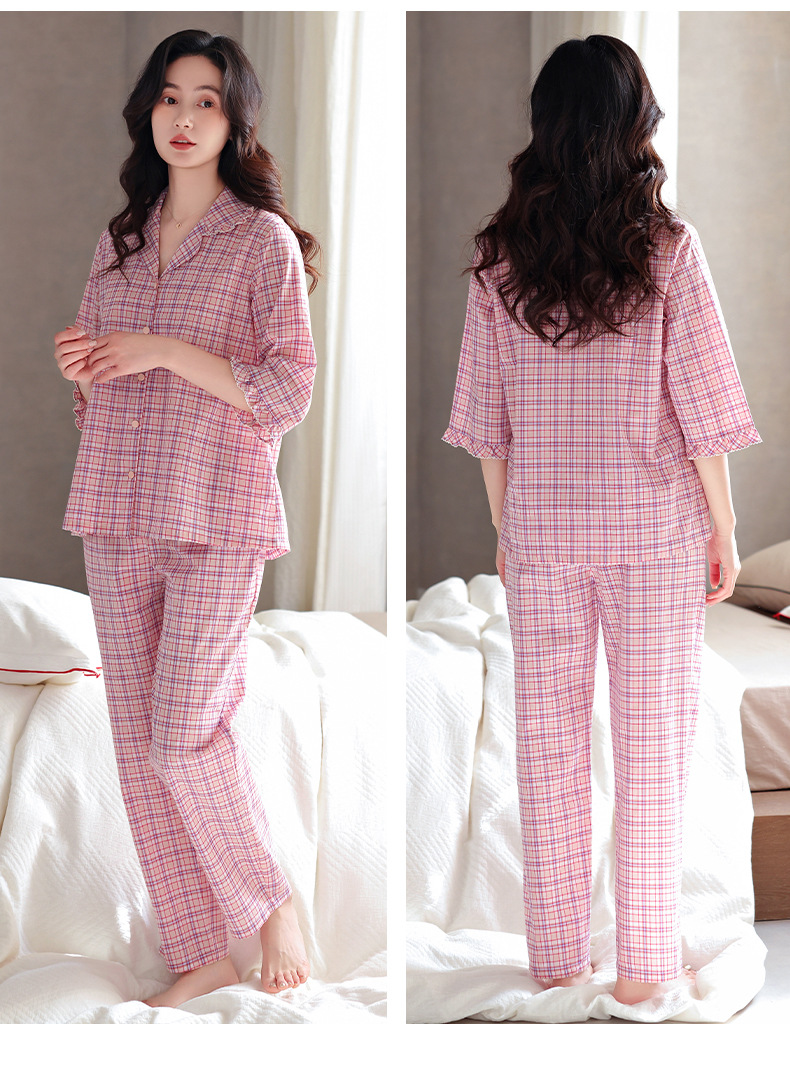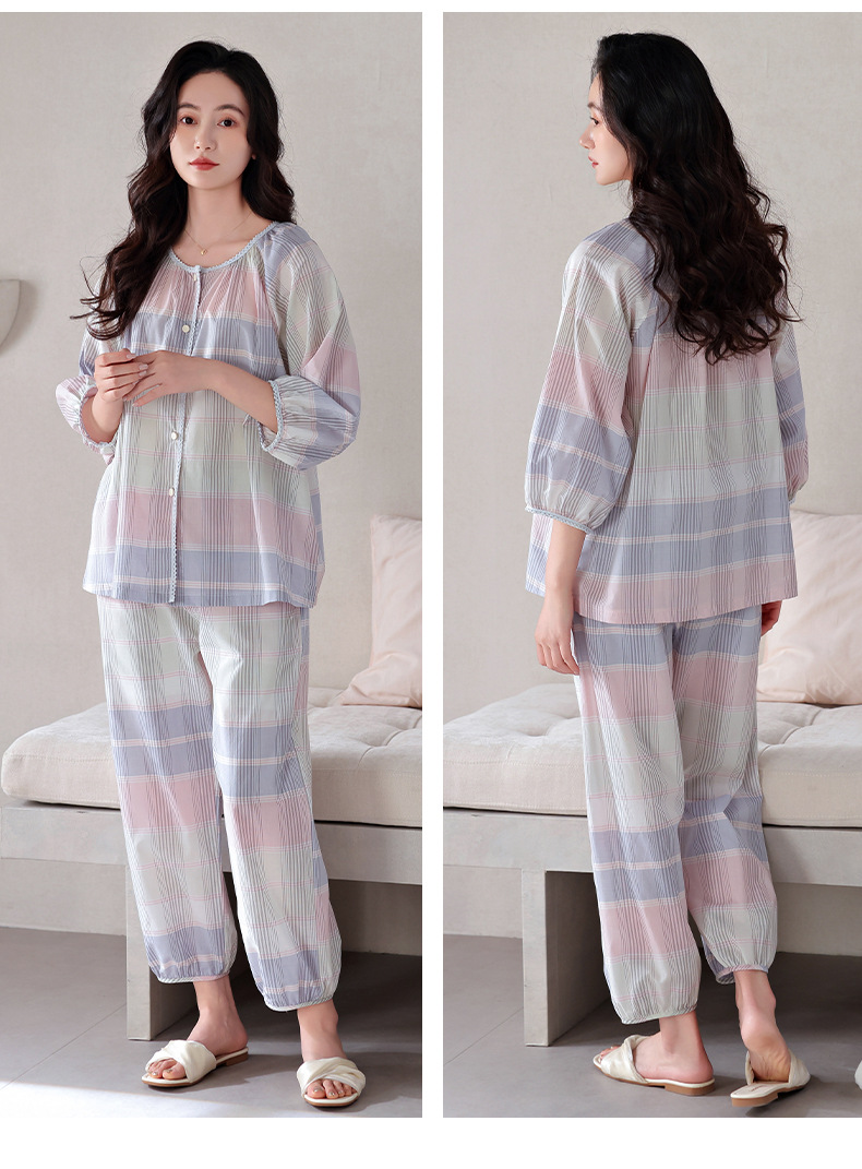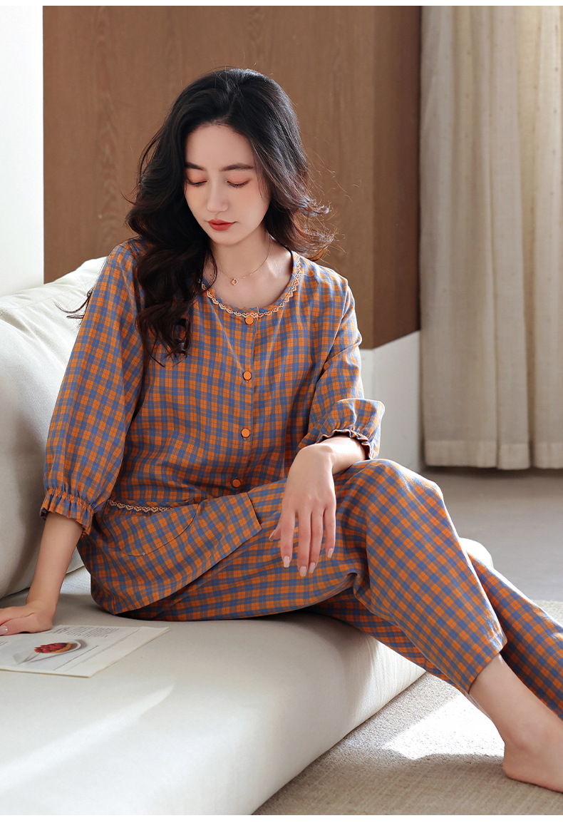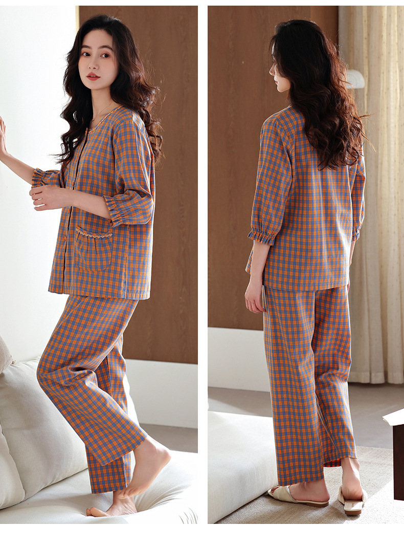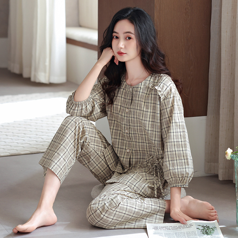 잠옷 여성의 봄과 가을 짠 순면 7 점 소매 가을 면 얇은 중년 어머니 여름 플러스 사이즈 홈 옷스토어 가기