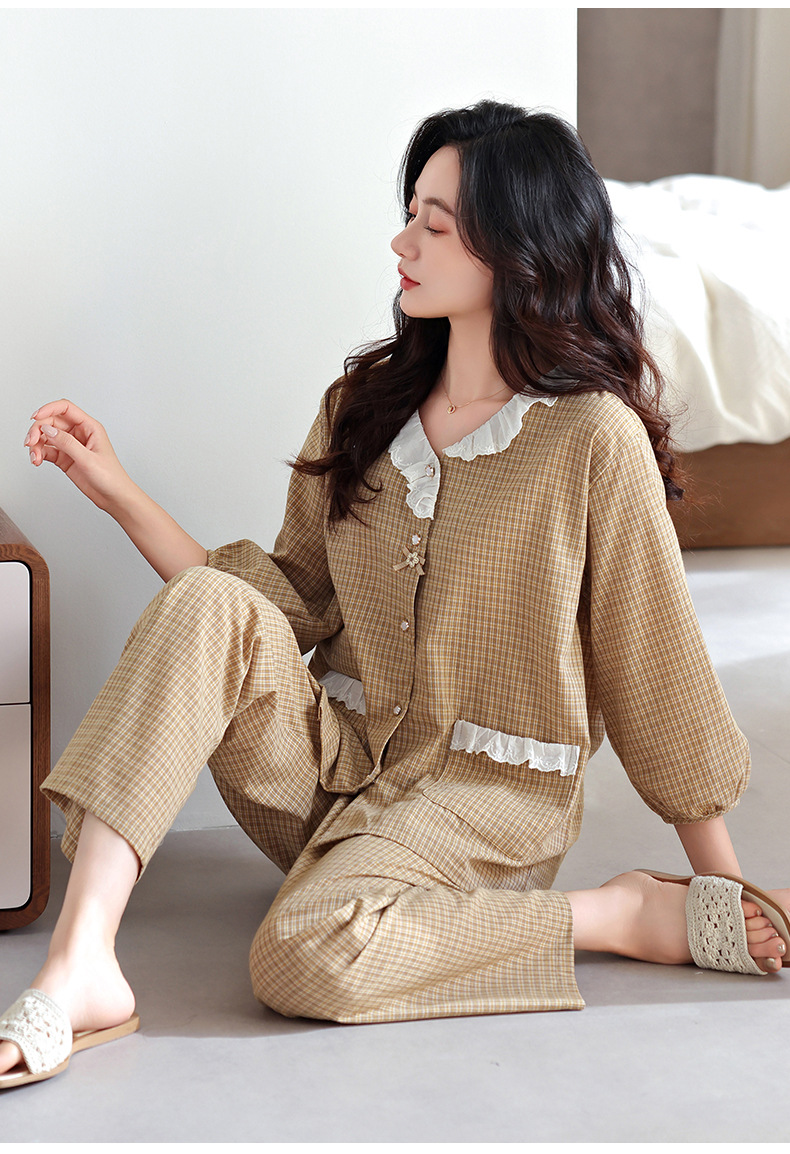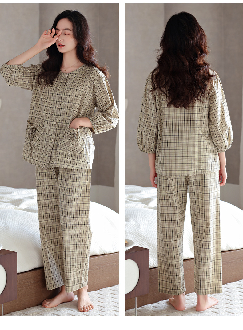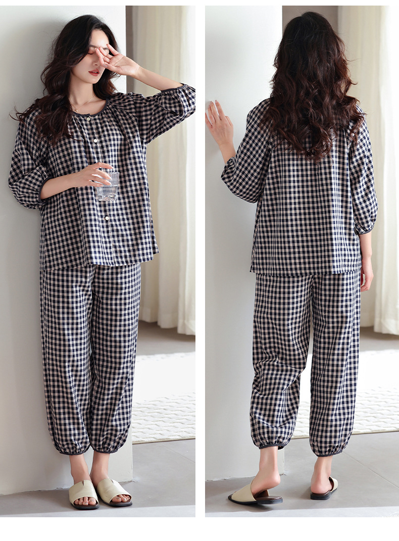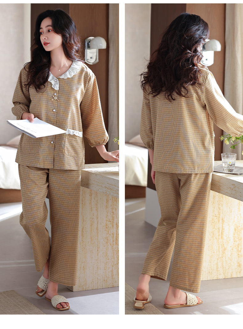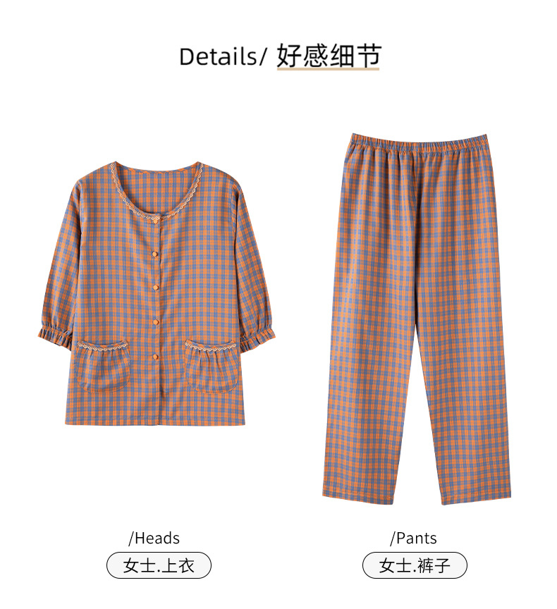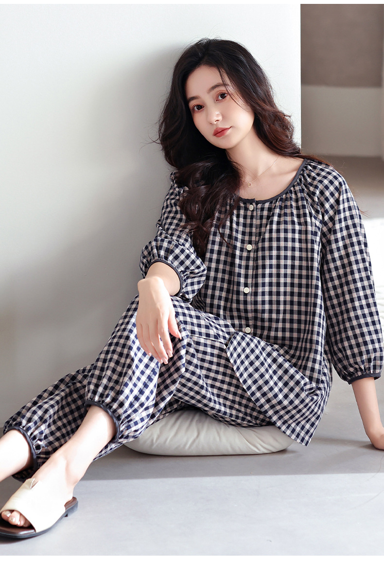 잠옷 여성의 봄과 가을 짠 순면 7 점 소매 가을 면 얇은 중년 어머니 여름 플러스 사이즈 홈 옷스토어 가기