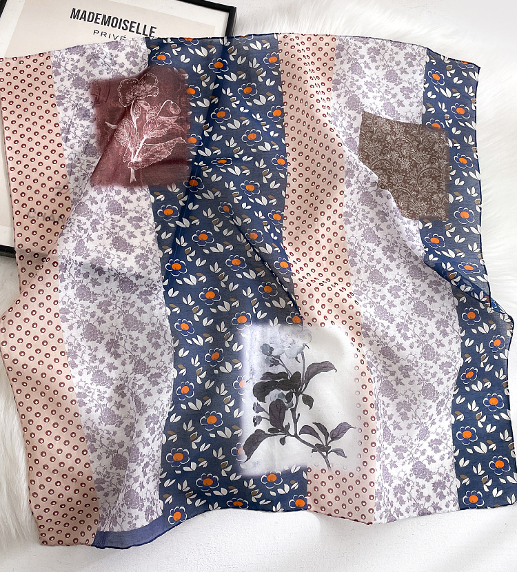 봄 뽕나무 실크 코튼 혼합 스퀘어 스카프 여성의 예술적 작은 꽃 실크 코튼 스카프 올 매치 패션 스카프