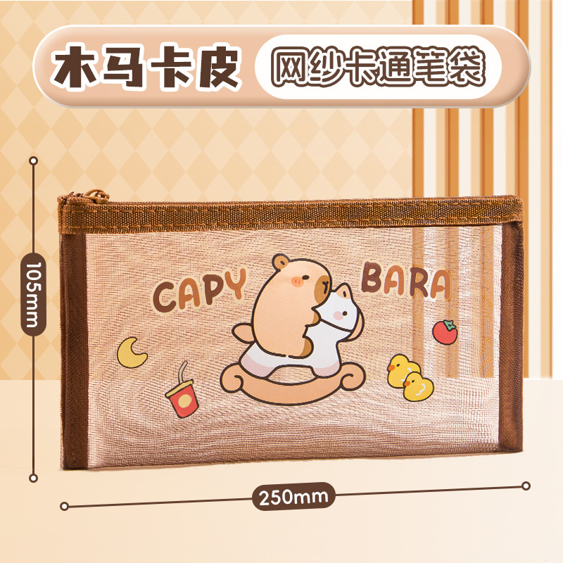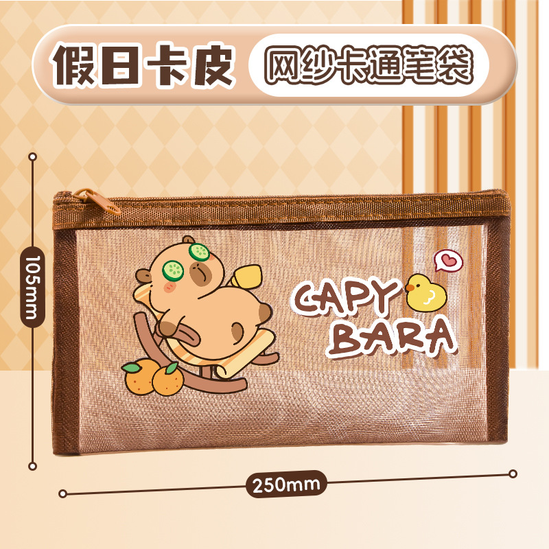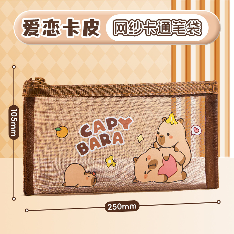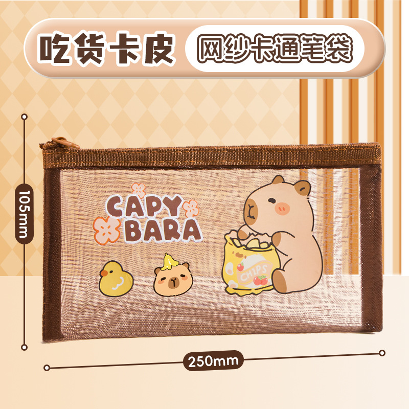 귀여운 스타일 카피바라 투명 필통 학생용 ins 문구 연필 가방 대용량 수납 가방 지퍼 메쉬