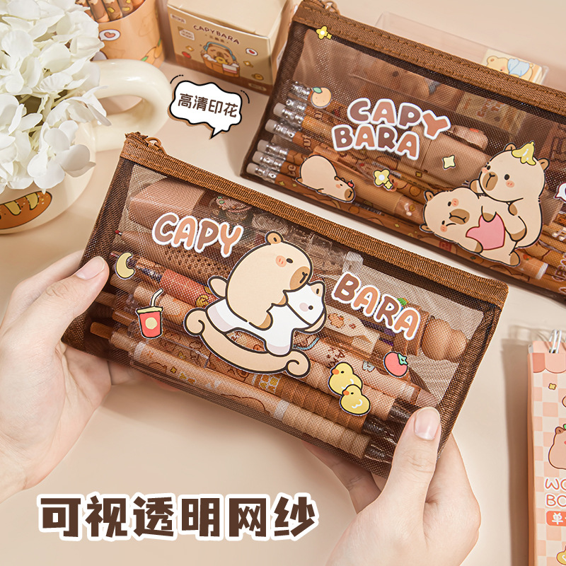 새로운 스타일의 연필 가방 대용량 문구 상자 소녀 동전 지갑 연필 가방 캔버스 5 층 저장 귀여운 만화 연필 상자스토어 가기