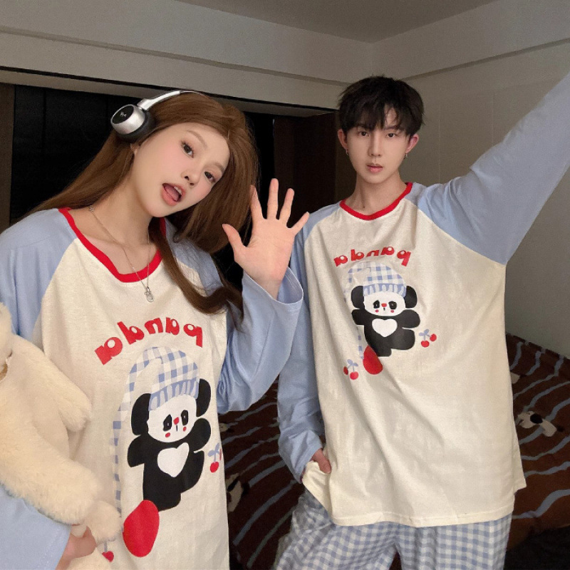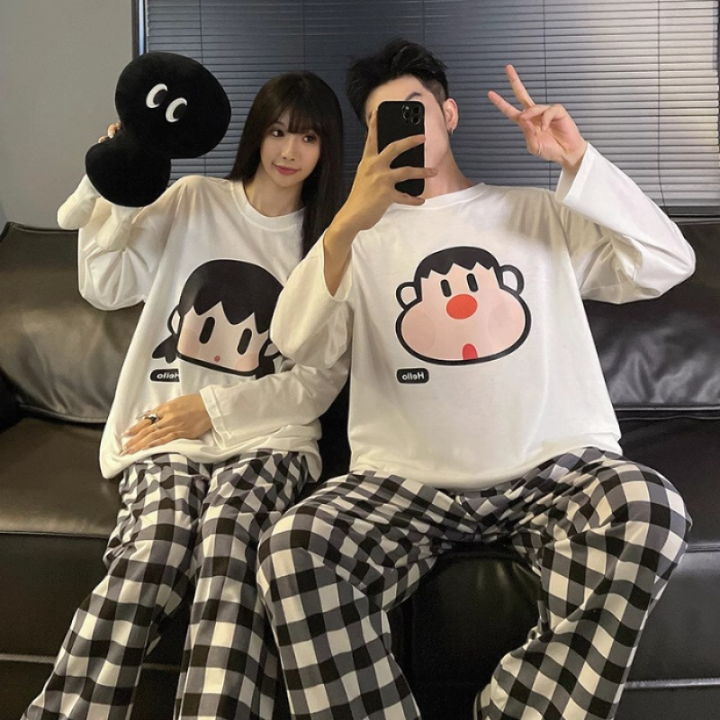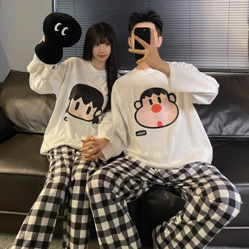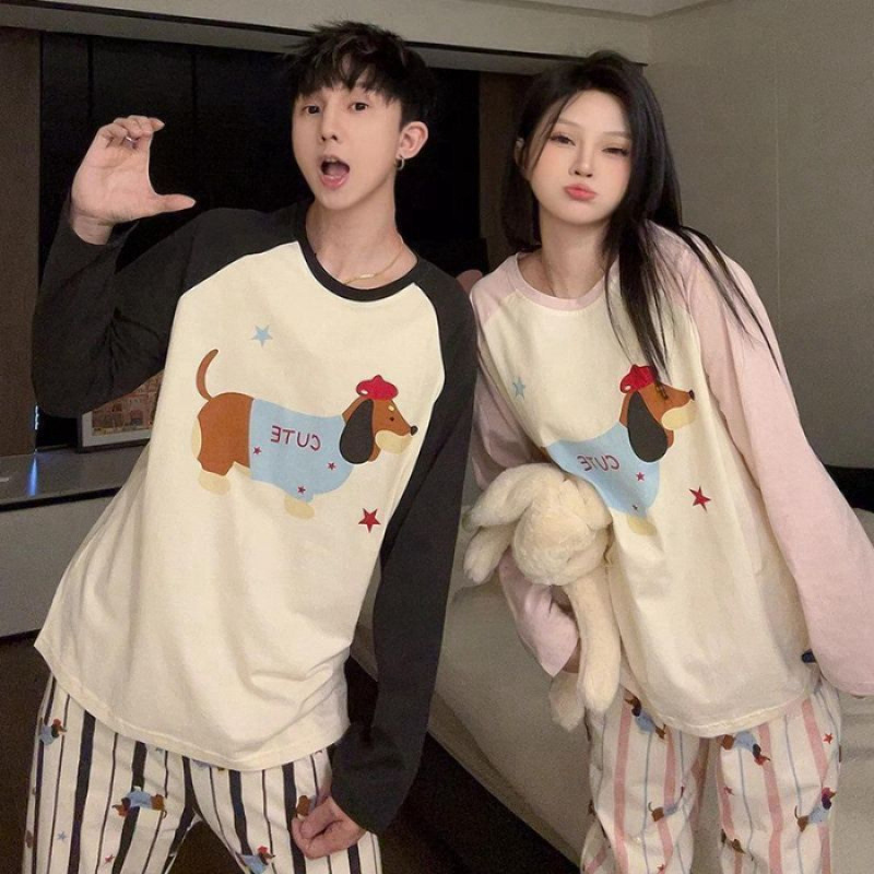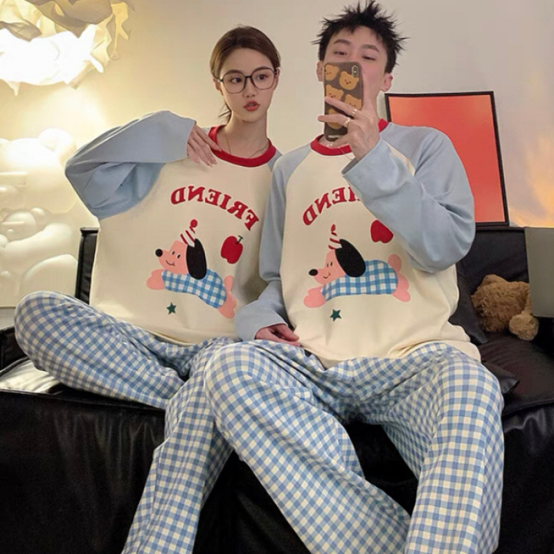 커플의 세트 인스 타 그램 스타일 잠옷 여성의 봄과 가을 긴팔 바지 가을과 겨울 홈 의류 세트 모조 면화스토어 가기