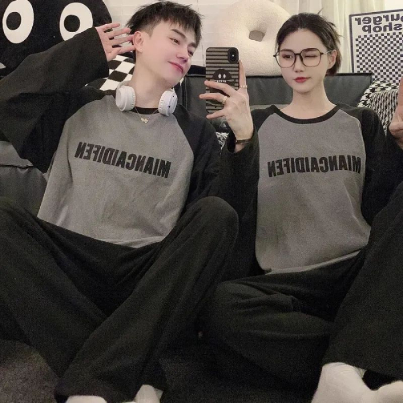 커플의 세트 인스 타 그램 스타일 잠옷 여성의 봄과 가을 긴팔 바지 가을과 겨울 홈 의류 세트 모조 면화