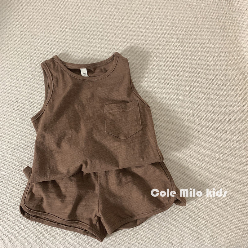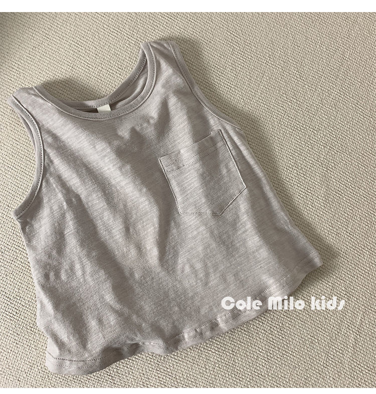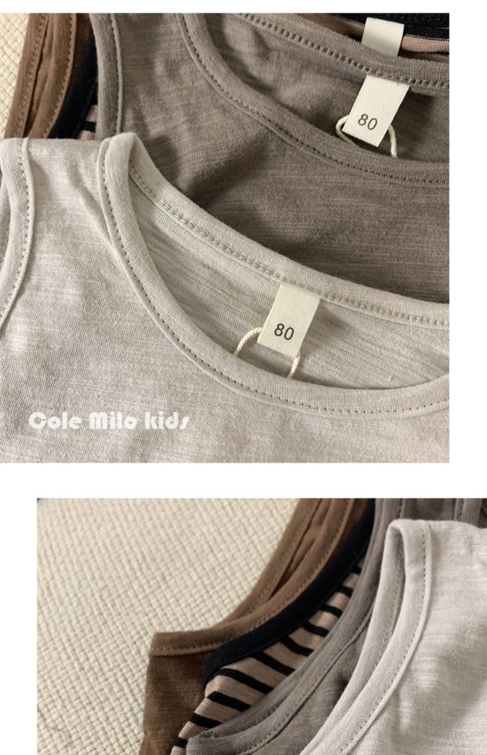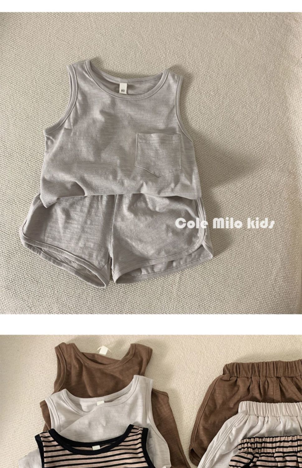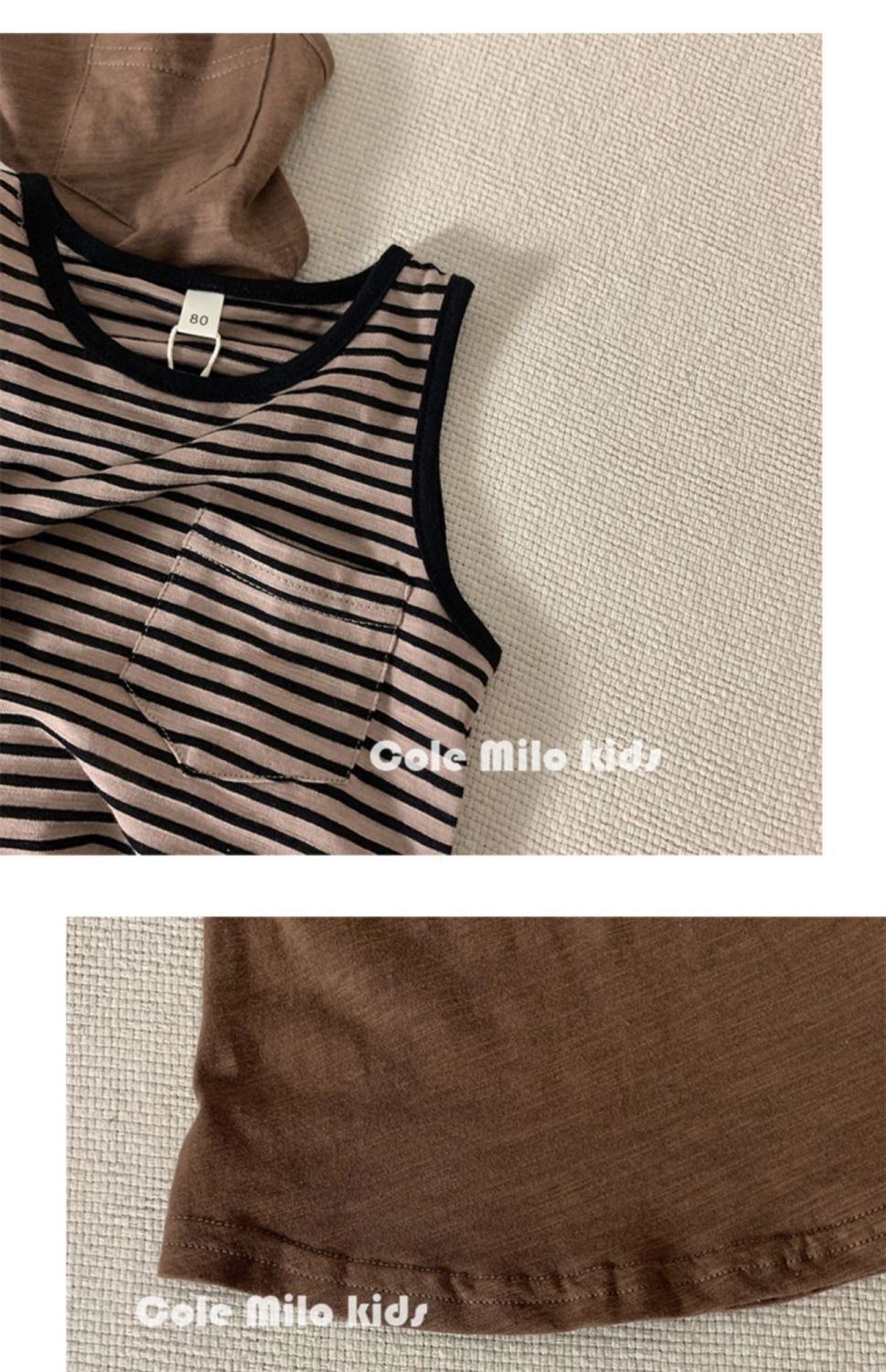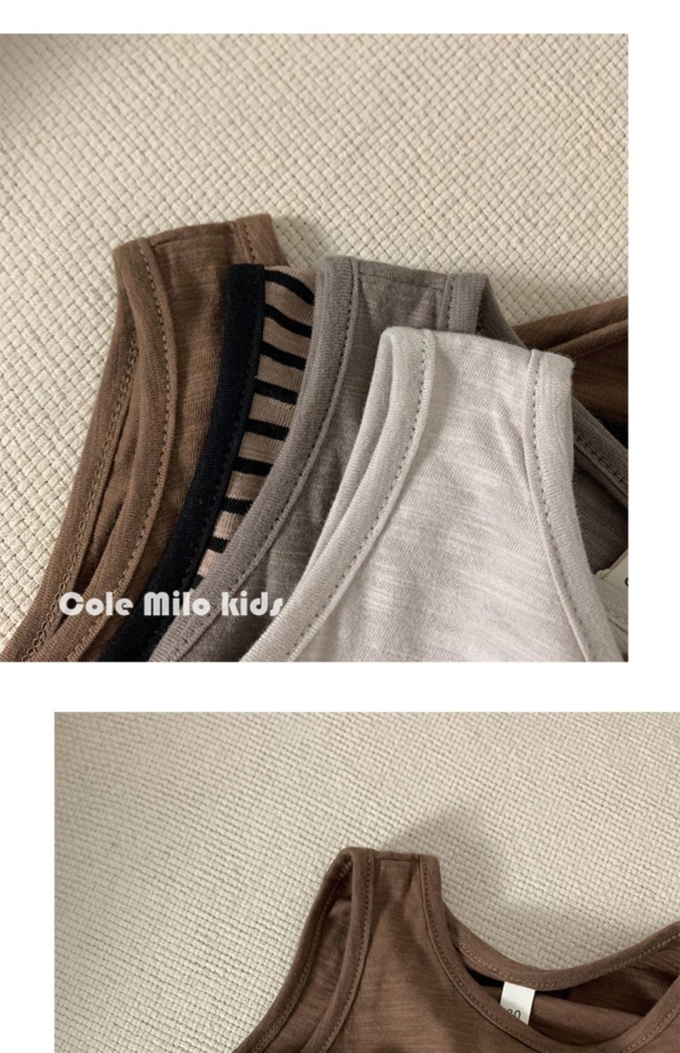 여름 어린이 조끼 민소매 소년 소녀 반팔 티셔츠 얇은 통기성 스트라이프 탑 바지 세트 투피스 세트스토어 가기