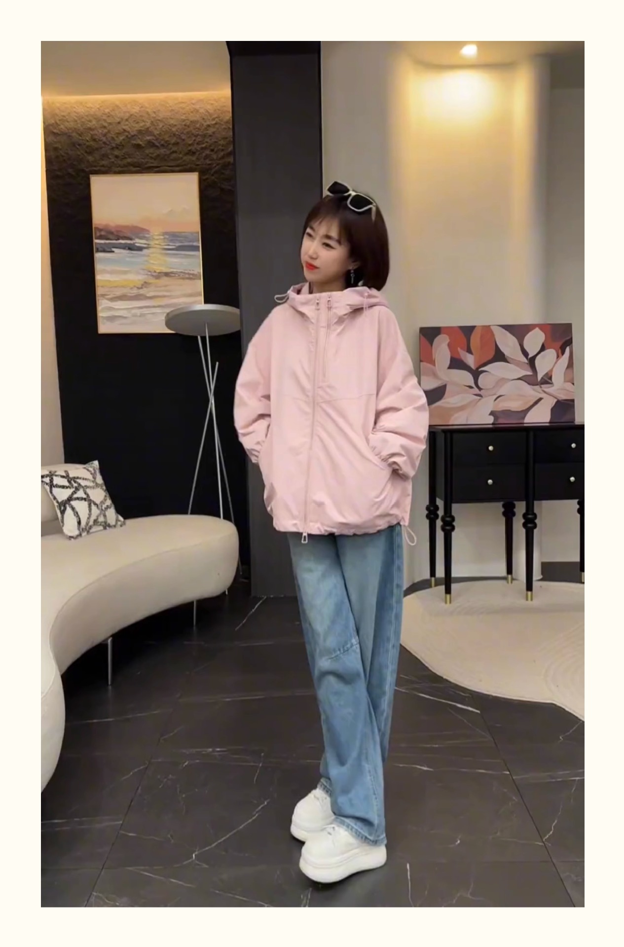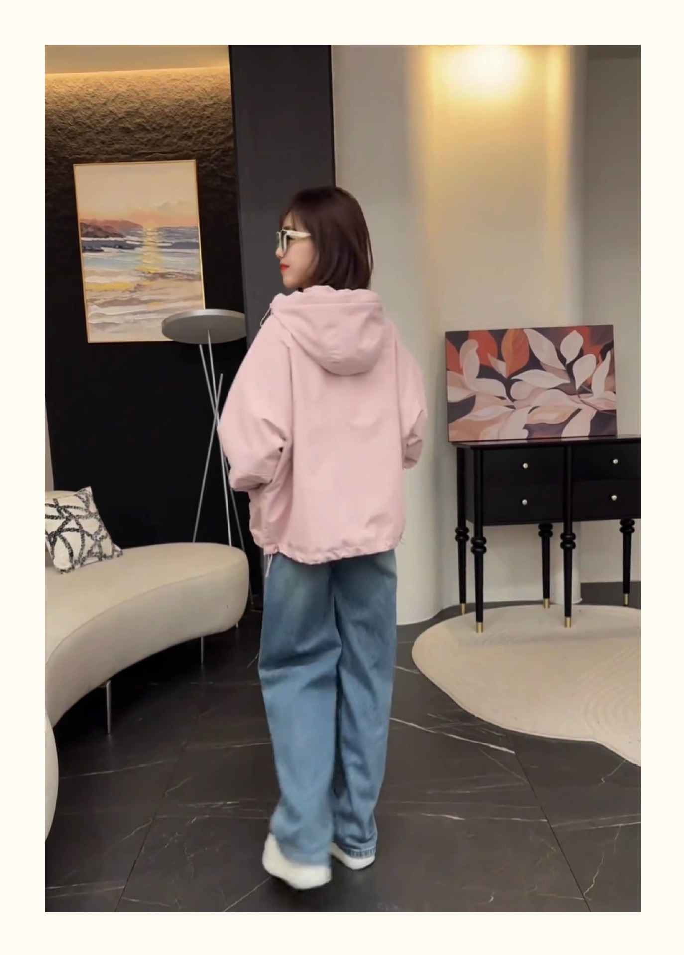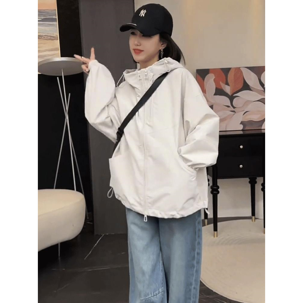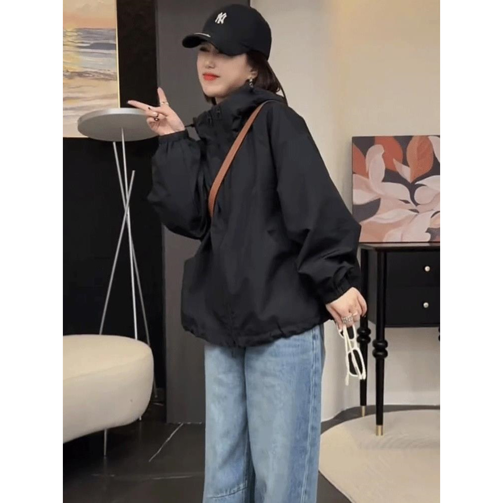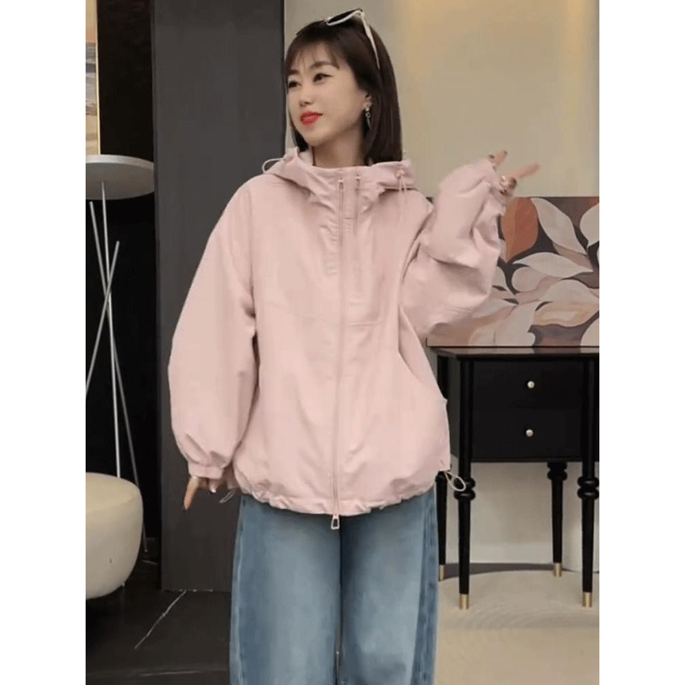 더블 지퍼 후드 쇼트 코트 여자 봄 새로운 도착 작은 루즈 올 매치 슬림 룩 재킷 트렌디 재킷스토어 가기