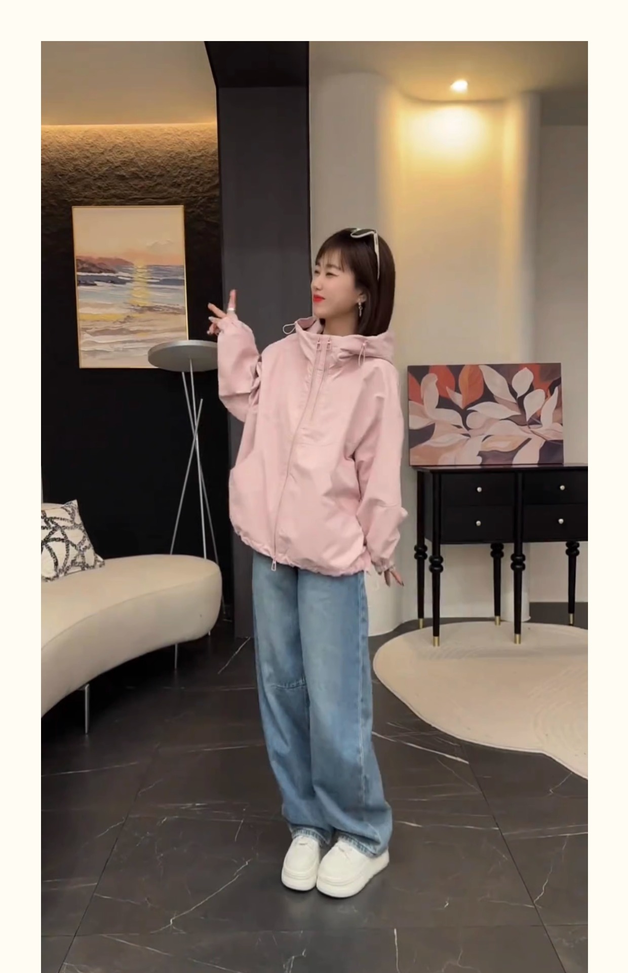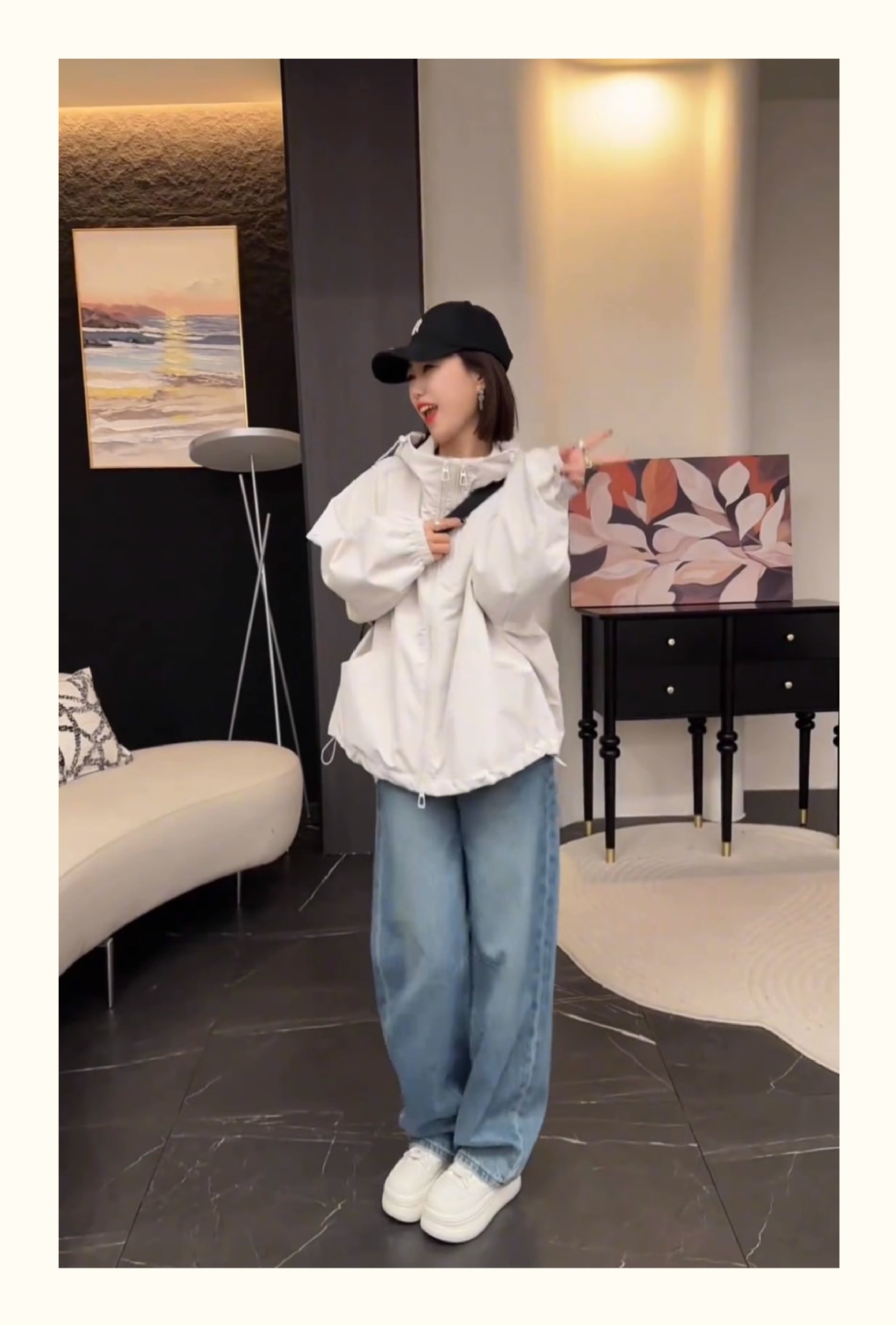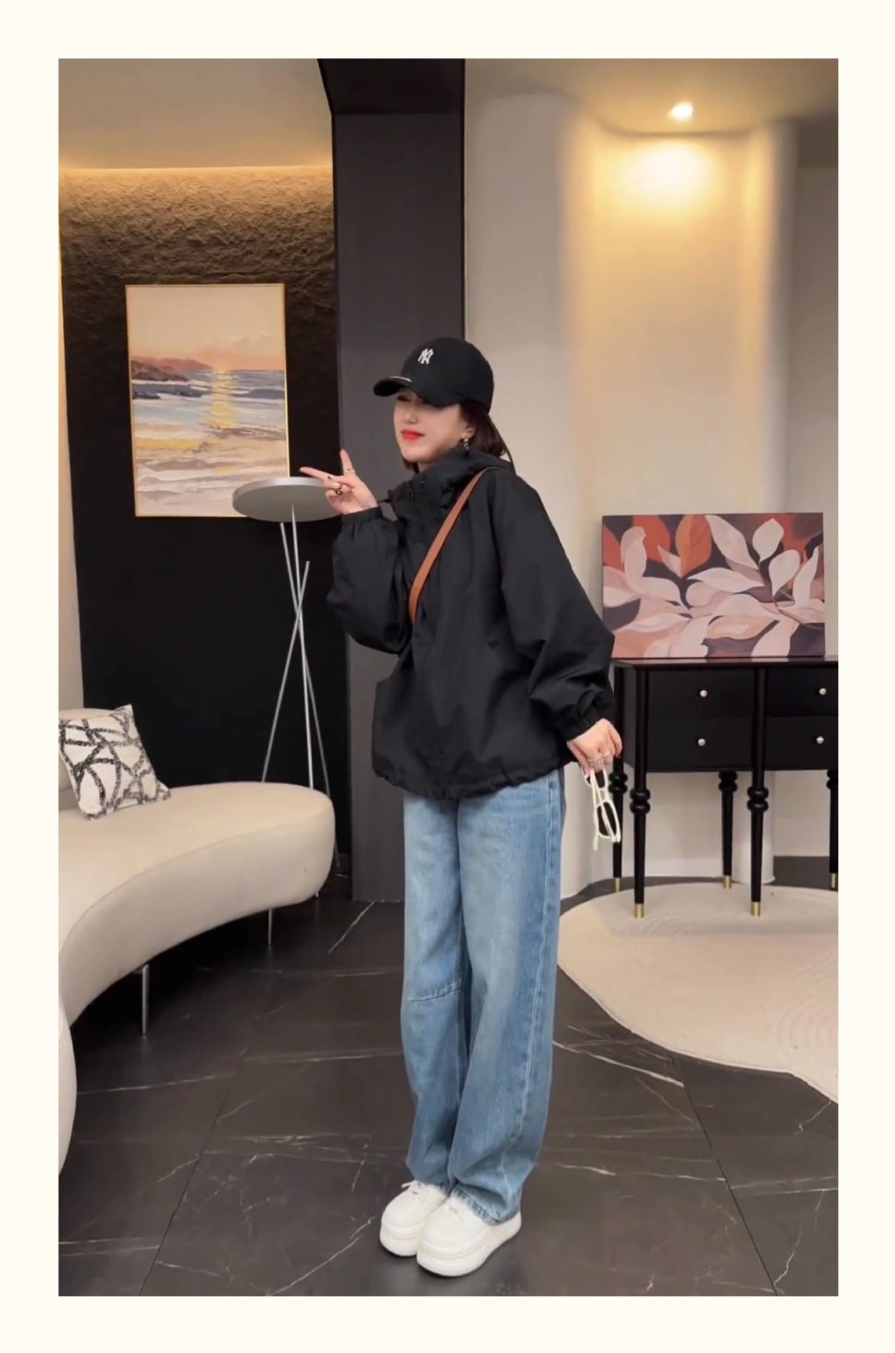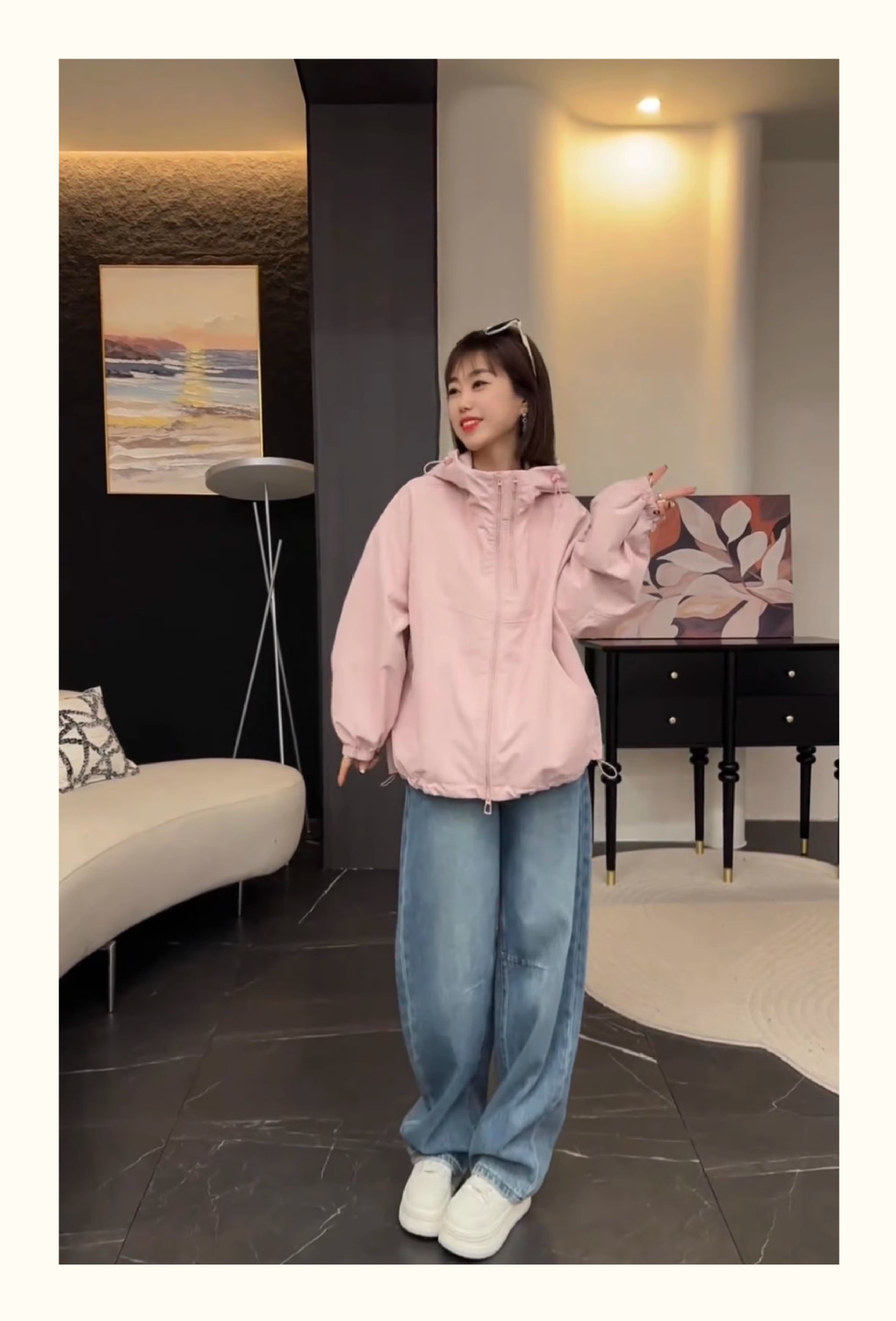 더블 지퍼 후드 쇼트 코트 여자 봄 새로운 도착 작은 루즈 올 매치 슬림 룩 재킷 트렌디 재킷스토어 가기
