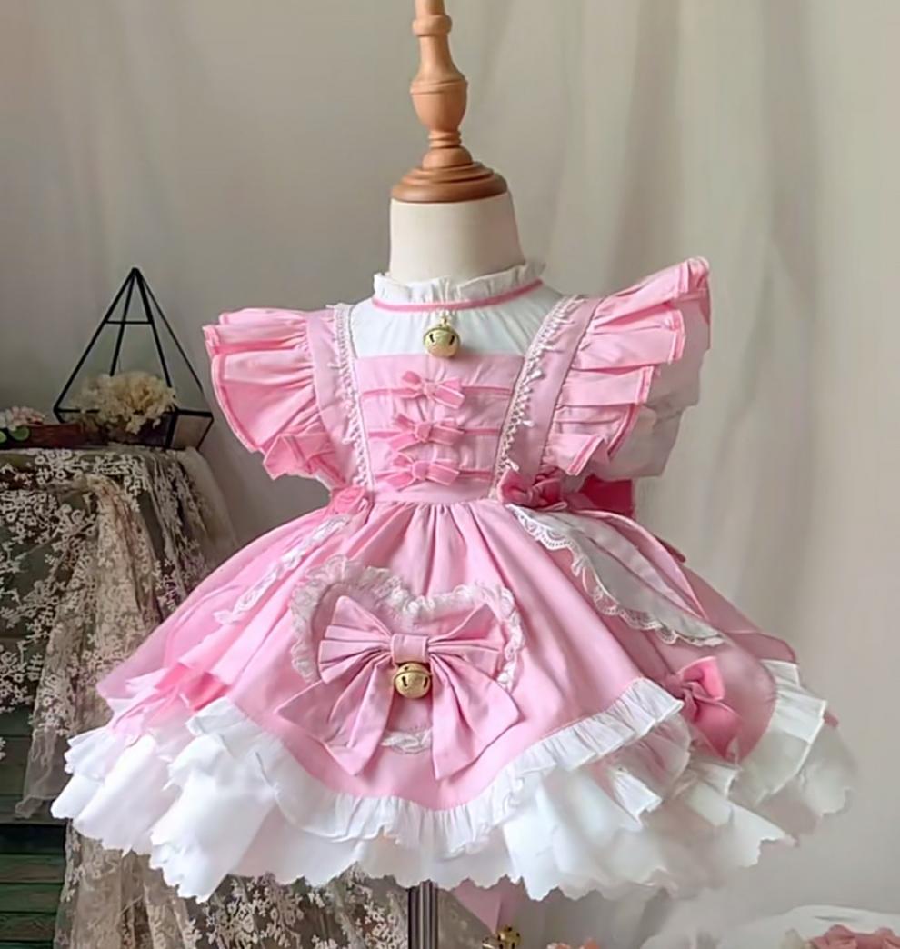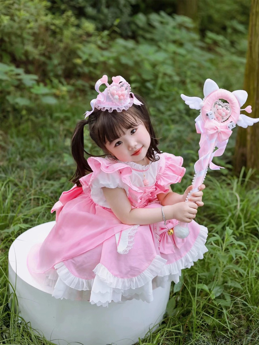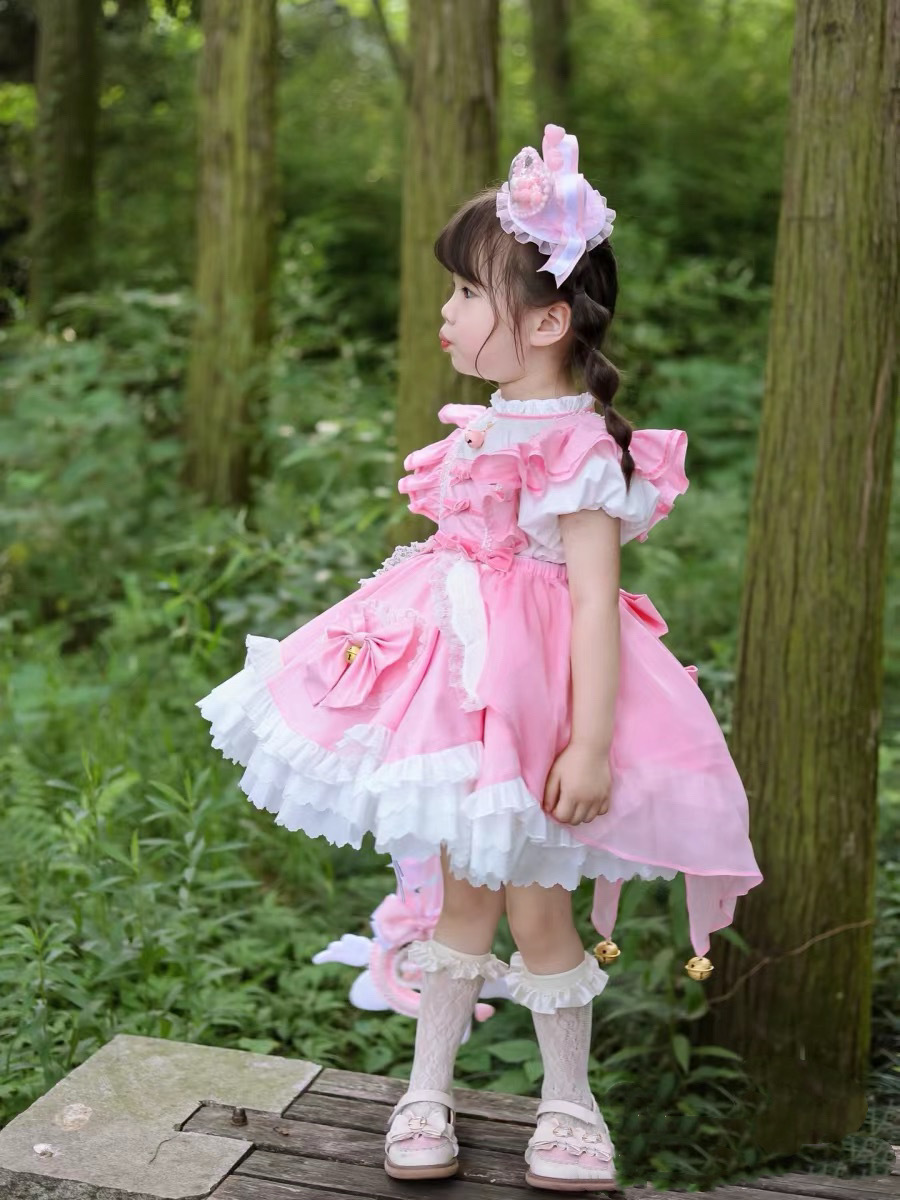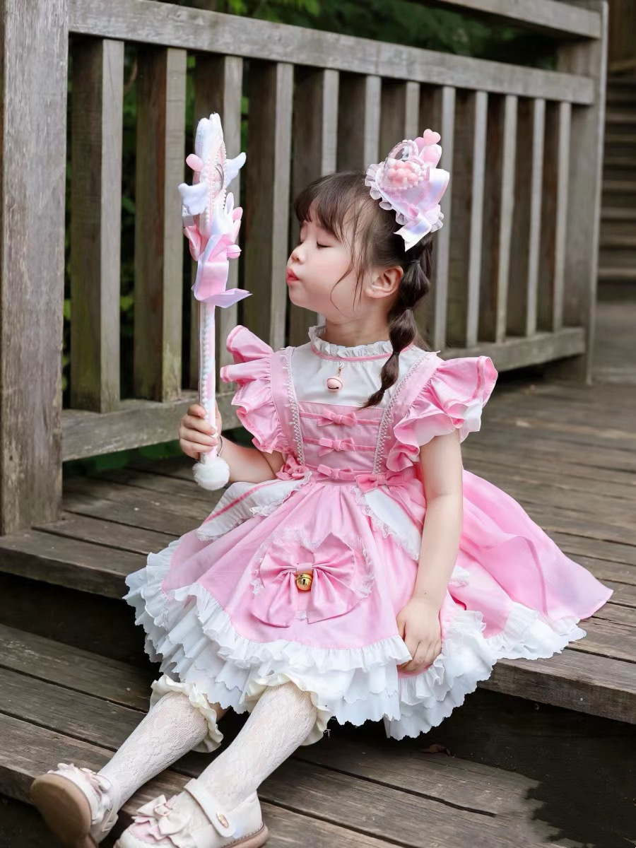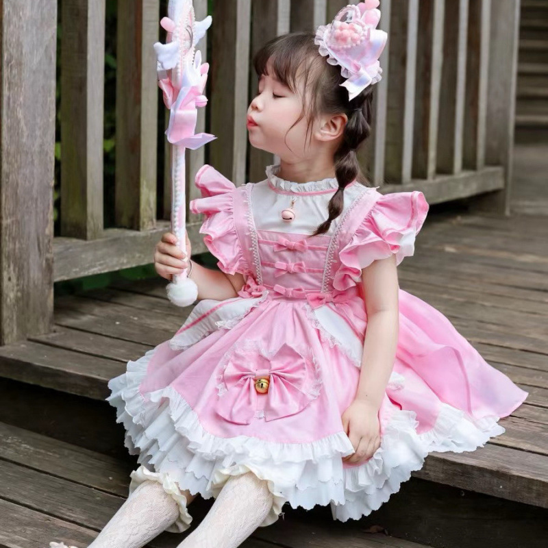 소녀 원피스 로리타 2025 봄과 여름 새로운 귀여운 핑크 소녀 세련된 로리타 공주 원피스