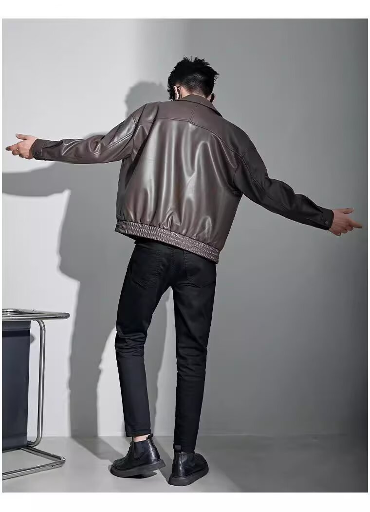 가을과 겨울 새로운 빛 성숙한 바람 ruffian 잘 생긴 옷깃 가죽 코트 남자의 트렌디 한 캐주얼 느슨한 올 매치 PU 가죽 재킷스토어 가기