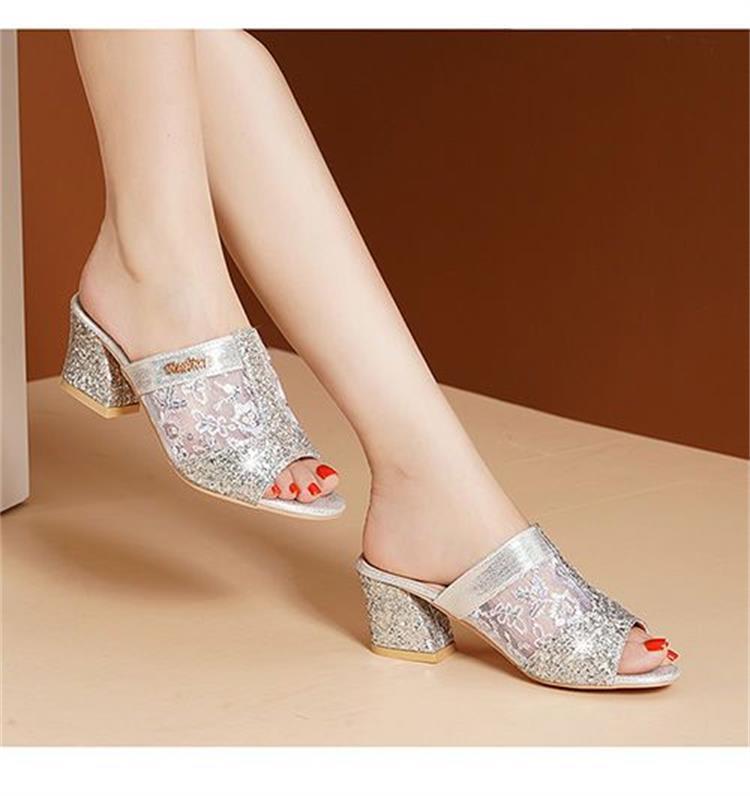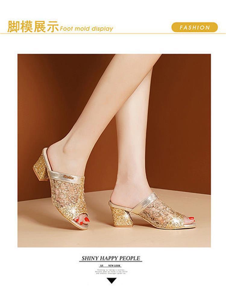 2025 새로운 한국식 다재다능한 샌들 여성용 청키 힐 메쉬 샌들과 슬리퍼 편안한 통기성 봄과 여름 생선 입 샌들스토어 가기