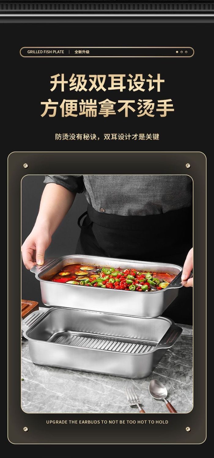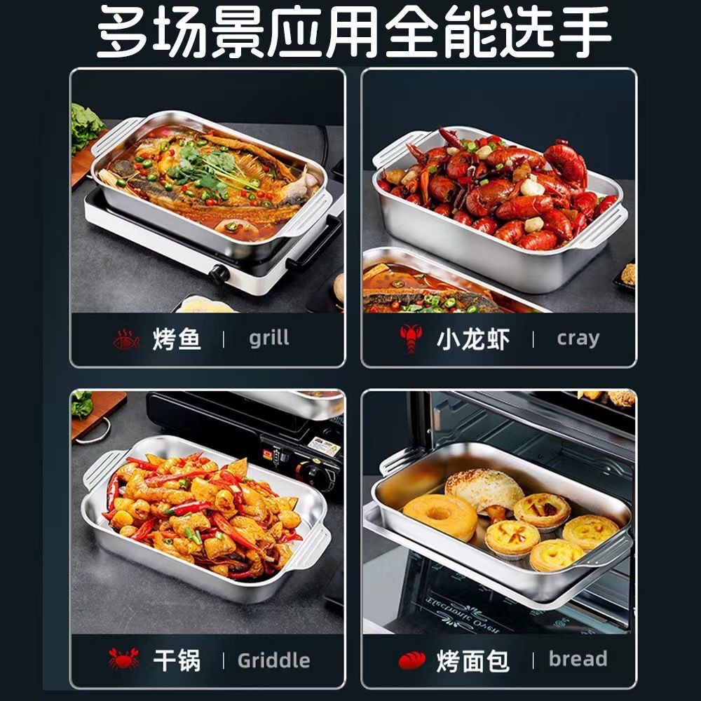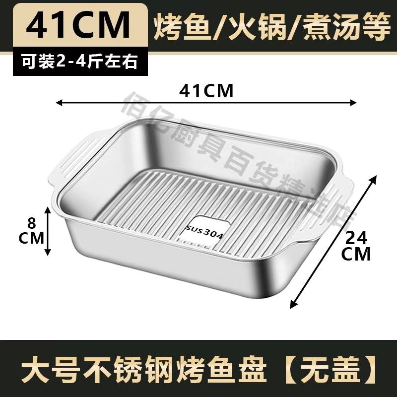 스테인레스 스틸 생선 구이 플레이트 직사각형 가정용 딥 플레이트 상업용 트레이 구이 플레이트 유도 쿠커 생선 구이 스토브 비 스틱 플레이트스토어 가기
